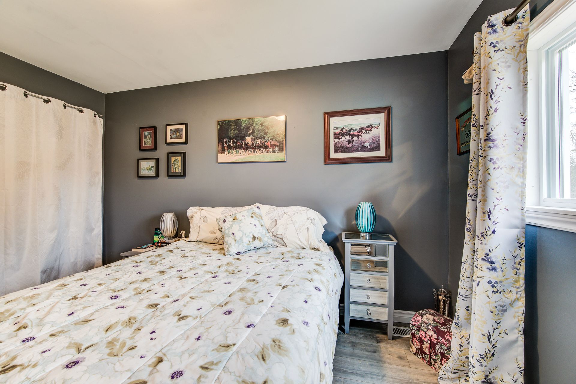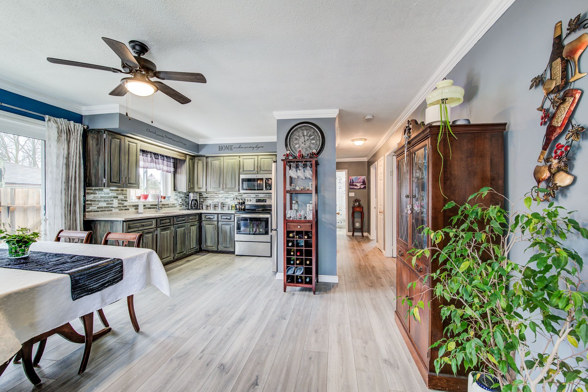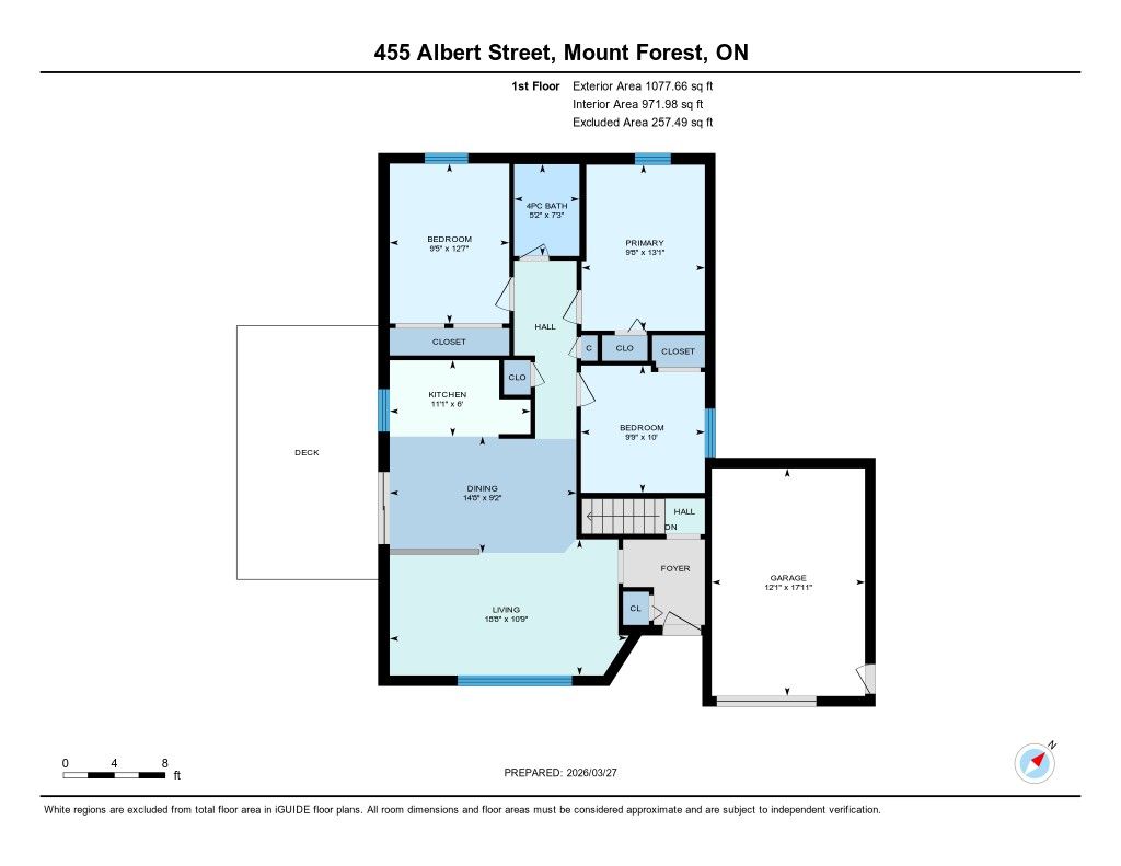 Welcome to this beautifully updated red brick bungalow, ideally located on a nice street in the town of mount forest. Enjoy the convenience of being just a short distance to downtown, the edge of town, and nearby greenspace featuring sports fields, a playground, and splash pad. The home offers an excellent open-concept layout, perfect for modern living. The recently renovated kitchen showcases a stylish rustic barn board accent, quartz countertops, and updated appliances, creating a warm country-modern feel. From here, step out to the side deck for cooking on the natural gas bbq or access the fully fenced backyard, perfect for entertaining, kids, or pets. The main floor features three bedrooms and a 4-piece bathroom. The third bedroom offers added flexibility with laundry hookups conveniently located in the closet for optional main floor laundry. Downstairs, the spacious l-shaped recreation room is designed for entertaining and family enjoyment. Whether it's movie nights, a games area, or space for kids to play, this space is right. A 2-piece bathroom adds convenience, while the rear of the basement includes a dedicated laundry room and a large storage area for seasonal items and more. Outside, the generous yard includes two storage sheds and plenty of space to relax and enjoy the summer months. Updates include: roof, kitchen appliances, and basement bathroom flooring (2021); kitchen (2023); main floor flooring (2024); majority of windows (2024-2025); patio door (2025); eastern fence (2025); microwave (2025).