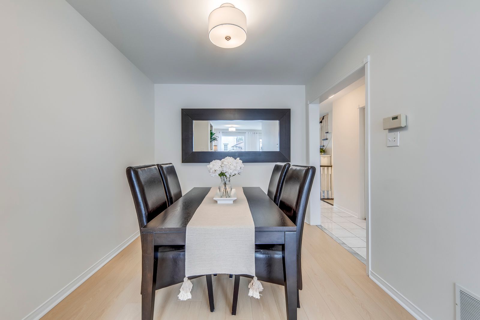 Sunny and inviting 2-story townhome with finished basement in a quiet, desirable location within the highland park community; offering maintenance free living with a flexible work-from-home layout. Beautiful 3 bdrm, 2+1 bath living space with a fresh paint job throughout entire home using sherwin williams paints; and new luxury wide plank laminate flooring throughout main level and basement. Large eat-in kitchen with new stainless-steel appliances, invites you to a light flooded living room and dining room open concept living space looking at a private, beautifully landscaped backyard. Cozy gas fireplace in living room. Small office nook and bay window in master bedroom, with a walk in master closet. Under stairs storage, exercise area and cold room/ pantry in basement. Recently updated front door with matching colour storm doors and doorbell camera; and garage door with opener. Updated windows and roof (50-year shingle warranty), including private owned water heater. Includes parking for 2 cars, with direct access to 1 car garage. A short 15-minute commute totoronto; with easy access to all major highways and public transit. Nestled in a quiet family friendly walkable community close to schools, parks, shopping i. E. Square one and local shops, mckechnie community centre. Enjoy the best of mississauga in this lovely neighborhood!