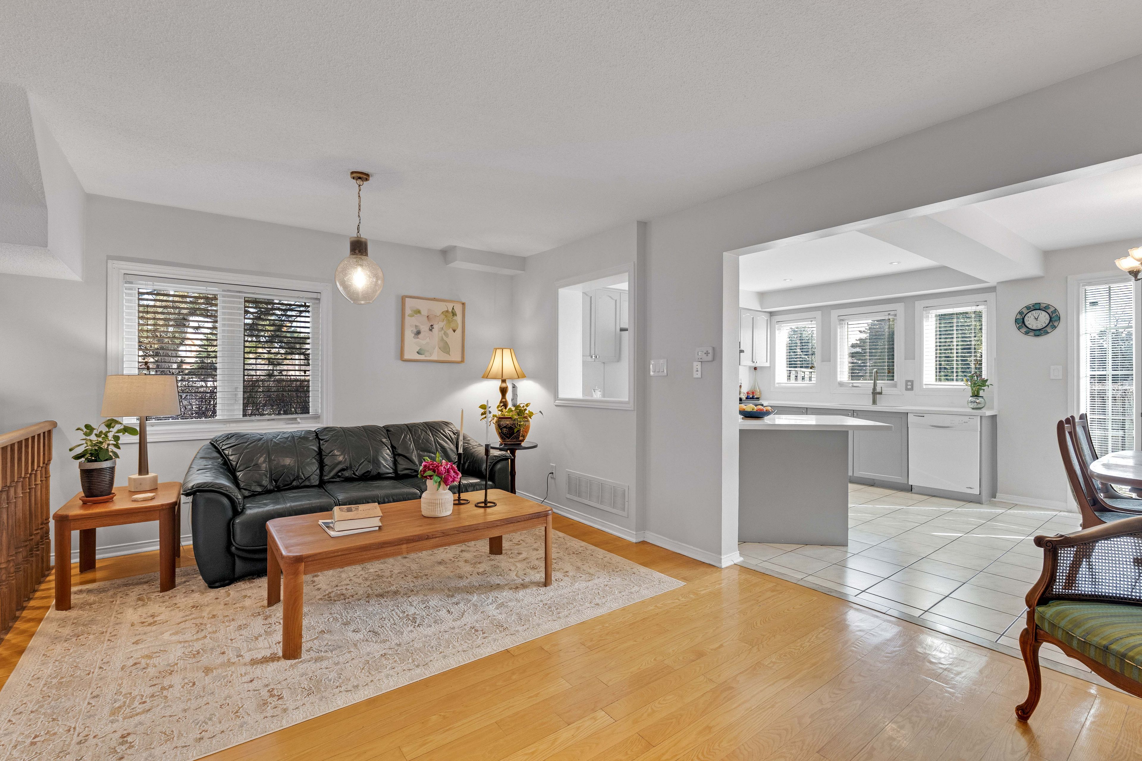Welcome to this lovely 3-bedroom, 3+1-bathroom end-unit townhouse in the highly desirable highland park community. With a larger backyard than most units and added privacy, this home offers the perfect combination of comfort, functionality, and value. Step inside to a bright, open-concept main floor featuring hardwood flooring throughout, including the staircase. The inviting living room is anchored by a cozy gas fireplace, creating the perfect space to relax or entertain. The kitchen has been tastefully refreshed with updated countertops, cabinetry, tile flooring, and a new door with sidelights that fills the space with natural light. A convenient 2-piece powder room, main floor closet, and direct access to the attached 1-car garage add everyday practicality. Upstairs, you'll find hardwood flooring throughout and three generously sized bedrooms. The primary bedroom features its own 4-piece ensuite, while the main bathroom has been updated with a newer vanity and tile flooring. The finished lower level offers excellent versatility with a 3-piece bathroom, updated laundry area with newer tile flooring, and a separate kitchen space -ideal for extended family or potential in-law suite use. Located in a family-friendly neighbourhood close to schools, parks, transit, major highways, and shopping, this move-in ready home is a fantastic opportunity you won't want to miss.