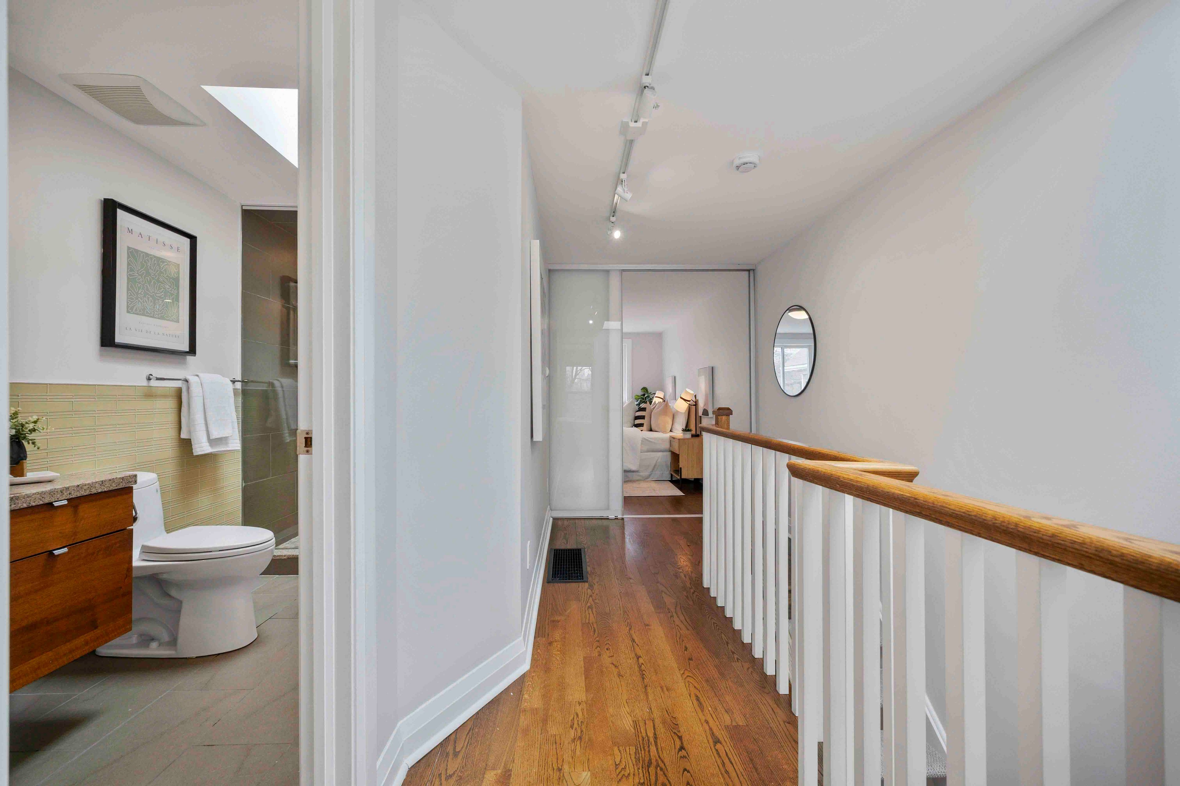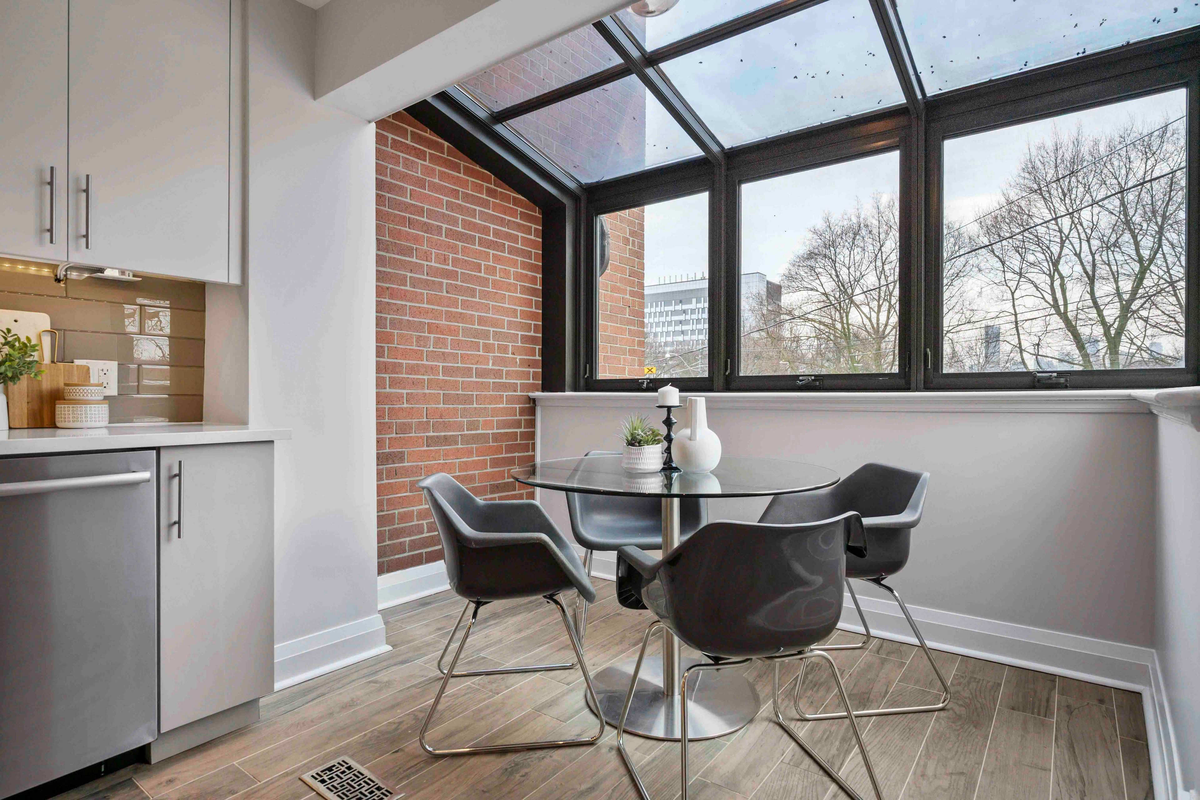 Upgrade your lifestyle in the heart of riverdale with this freehold townhome. Perfect for those looking to transition from condo living to more space and independence, or for downsizers seeking a low-maintenance home without the burden of fees. A thoughtful blend of comfort, style, and ease in one of toronto's most walkable neighbourhoods. Step inside to hardwood floors and a functional living space complete with a wood-burning fireplace and walk-out to a private, easy-care backyard, ideal for relaxing or entertaining. The renovated chef's kitchen features heated floors, a centre island, and an eat-in area overlooking riverdale east park. The spacious primary bedroom includes a second wood-burning fireplace, while the stunning skylit bathroom with double vanity and oversized glass shower creates a spa-like retreat. And wait, there is more........ The ground level adds valuable flexibility with an additional room (approximately 7ft ceiling) ideal as a third bedroom, home office, or creative space, along with direct access to the built-in garage for added everyday convenience. An unbeatable location steps to riverdale park, the rooster café, and transit at your doorstep. This home delivers the perfect balance of lifestyle and convenience. A must see.