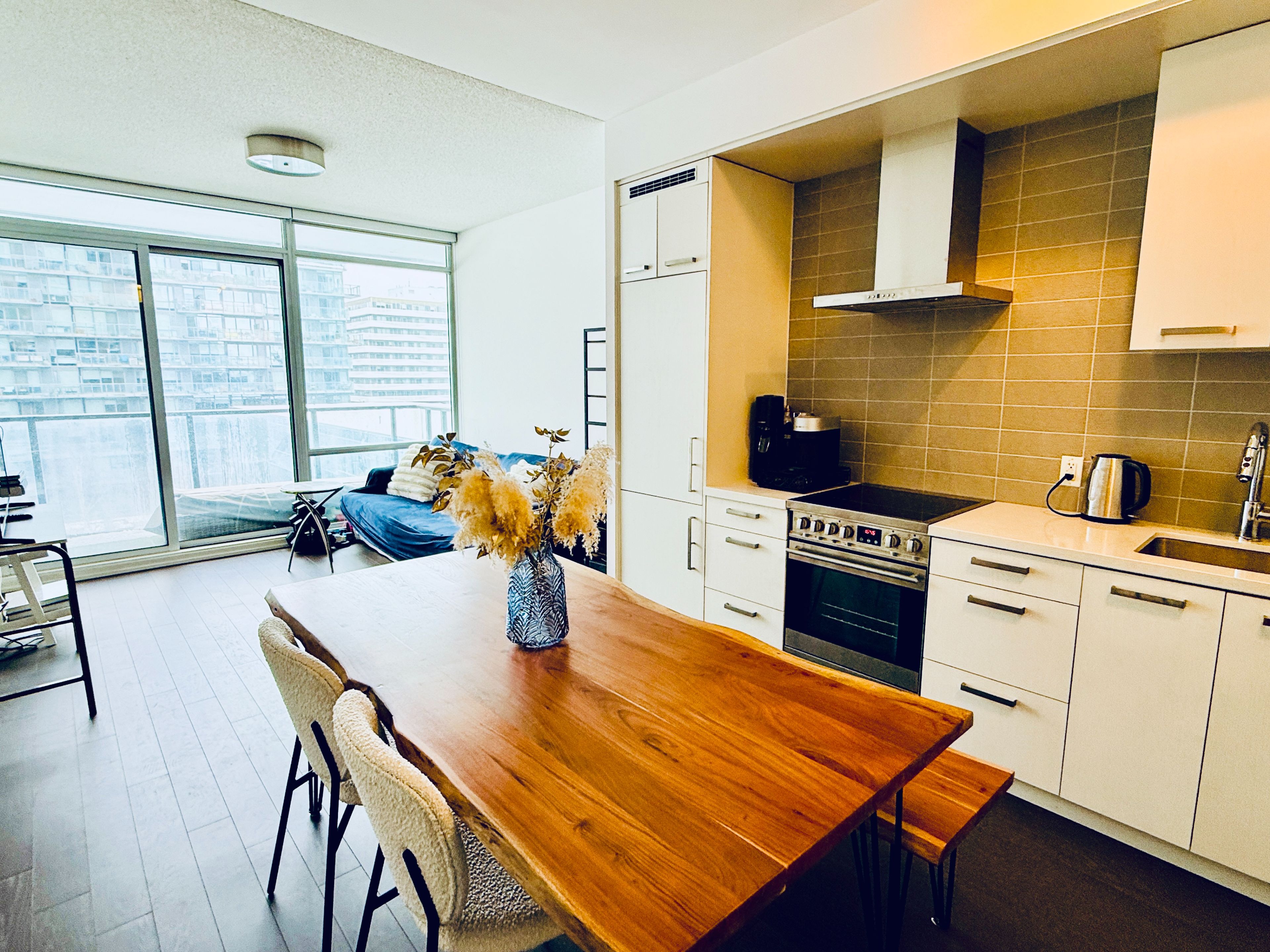 Bright, high-floor 1-bedroom condo in the heart of canary district, offering a rare quiet, unobstructed courtyard view - a unique opportunity to enjoy peaceful, community-oriented living just moments from downtown toronto. This thoughtfully designed suite features a highly functional layout complemented by a generous ~100 sq ft balcony, creating a seamless indoor-outdoor experience and a true private urban retreat - with no direct building in front. Featuring 9 ft ceilings, floor-to-ceiling windows, and a modern kitchen with glass cooktop, sleek range hood, and contemporary appliances. The open-concept layout is filled with natural light and designed for effortless everyday living, complete with ensuite laundry and refined finishes throughout. Maintenance fees include high-speed beanfield internet, with a 60%+ reduction in internet costs beginning november 2026 (see attached fee schedule). Enjoy a full suite of amenities including concierge, gym, media room, game room, party/meeting room, and outdoor bbq area - ideal for both relaxing and entertaining. Steps to distillery district, corktown commons, ymca, st. Lawrence market, waterfront trails, grocery stores, cafes, restaurants & transit/dvp - all within a vibrant, walkable neighbourhood that blends community charm with downtown convenience. A rare opportunity for those seeking quiet living, strong community, and downtown proximity. *click virtual tour for video walk through