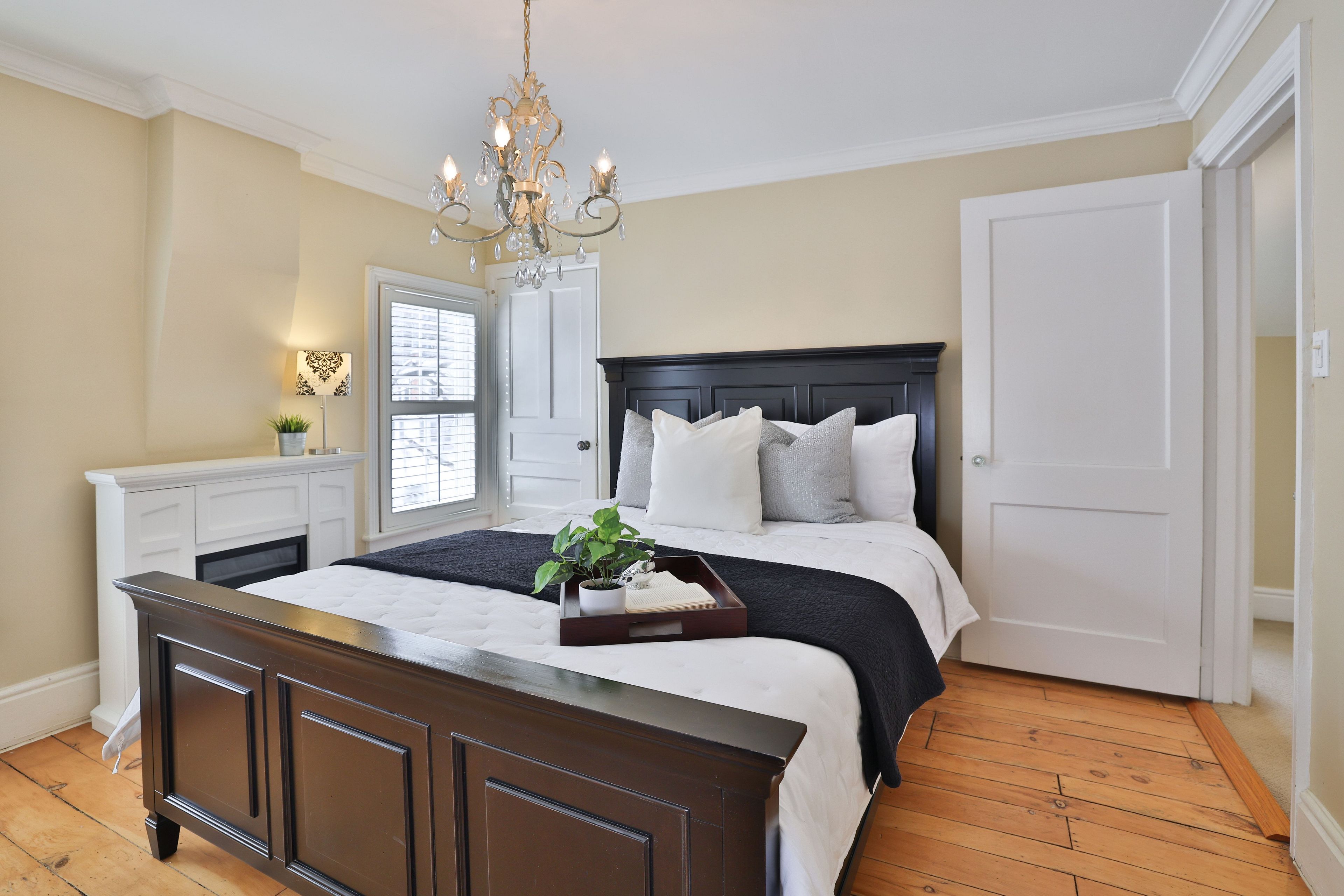 Welcome to a truly historic 1890 character home, set on one of downtown burlington's most admired streets. Part of an iconic group of 4 cottages inspired by the famed "painted ladies," this residence offers a rare opportunity to own a piece of history, protected from future redevelopment, yet flexible for modern living. Directly across from brock park, and steps to the lake, downtown shops, cafés, and cultural attractions, the lifestyle is unmatched. Spend mornings and evenings in the enclosed front porch, perfect for people-watching and soaking in the neighbourhood. Inside, timeless style meets thoughtful upgrades. Original baseboards and mouldings, antique pine floors, and 9ft ceilings create warmth and authenticity, while modern comforts include central air, updated 100-amp electrical service, and a beautiful custom kitchen w/ heated ceramic floors, new cabinetry, ss appliances, and a seating area overlooking the side yard. The living room features a gas fireplace, and flows into a highly functional flex space - ideal as a home office today, and easily converted to a dining room or guest bedroom depending on your lifestyle. A mud room w/ stylish glass block accents adds even more appeal. Upstairs, the primary bedroom is a retreat w/ a fireplace, alongside a luxurious bathroom showcasing victorian-style fixtures, heated floors w/ custom inlays, plus an additional bedroom perfect for family or guests. Out back, enjoy a private, landscaped outdoor oasis with a large deck, bbq gas line, spacious partially fenced yard, and custom shed-delivering a cottage-like feel just steps from the lake. The location shines year-round: daily walks along the waterfront, winter skating nearby, and festivals right down the street, complete with two prime parking spots for hosting. A rare blend of heritage, lifestyle, and modern comfort-ideal for growing families, professionals working from home, or anyone drawn to distinctive character living in the heart of downtown burlington.