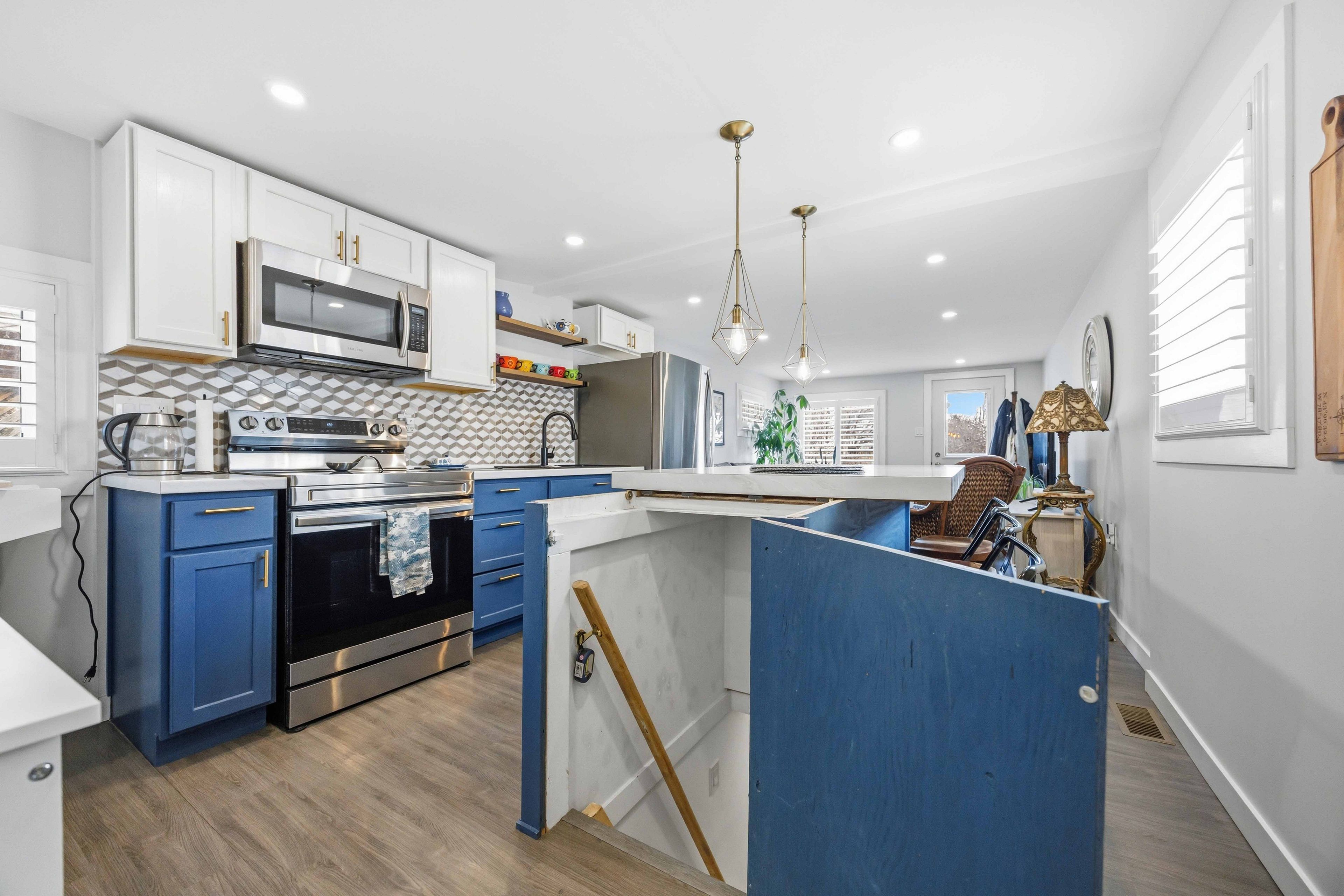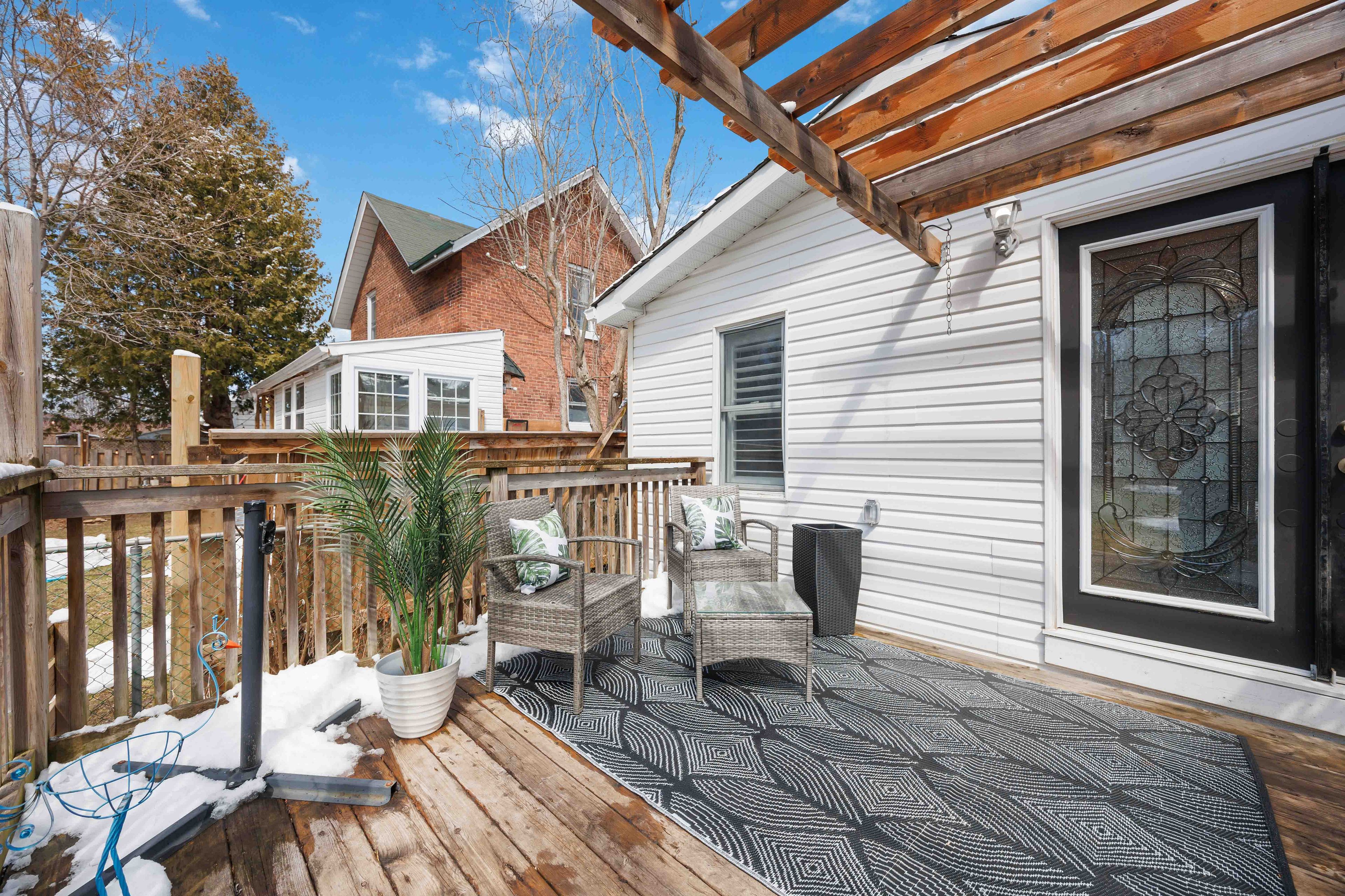 Cute and cozy bungalow situated on a oversized deep lot, perfect for first time buyers or those looking to downsize, to the picture perfect community of cobourg. Close to the vibrant downtown with ample shops and dining options, and just minutes to amazing cobourg beach! Inside you'll find a recently renovated home, with many updates. Featuring a stunning open concept living area, with bright pot lights, updated flooring and california shutters throughout (2022). The gourmet eat in kitchen boasts newer counters, modern stainless appliances with new stove (2024), ceramic backsplash and beautiful cabinetry with accent hardware throughout. Don't miss the secret staircase with hidden access under the large centre island and leading to additional living space below, perfect for a rec room, kids play zone, hobby room or man cave! The thoughtful layout continues with a lovely 3 piece bath and laundry combo (washer/dryer 2025) with barrier free shower and two well appointed bedrooms, including a walkout to the large deck and deep yard with newer garden shed (2023). Additional updates include the furnace in '21, central air '22, owned hwt '21, front deck '25, sump pump '24 and freshly painted throughout in '25.