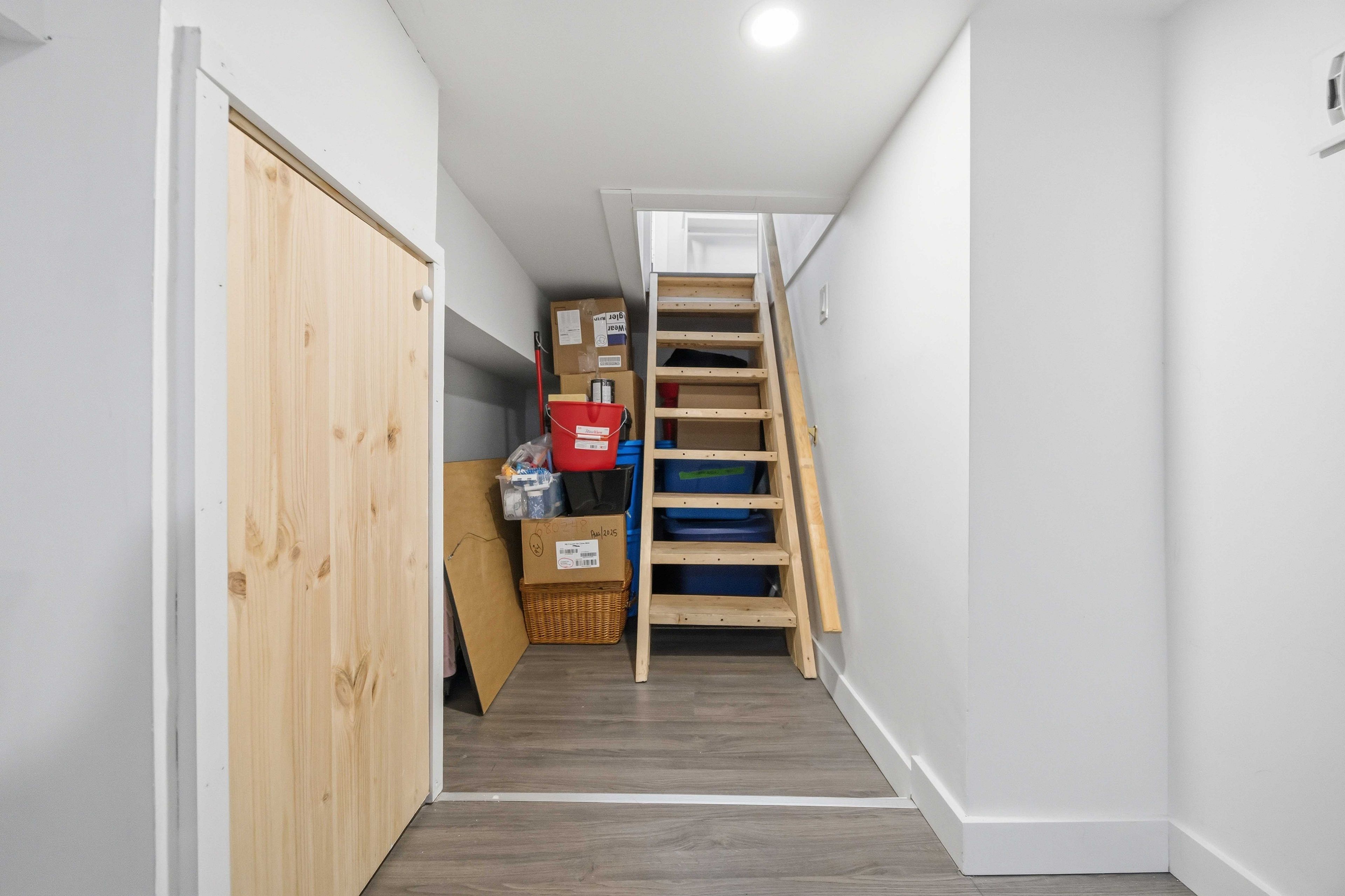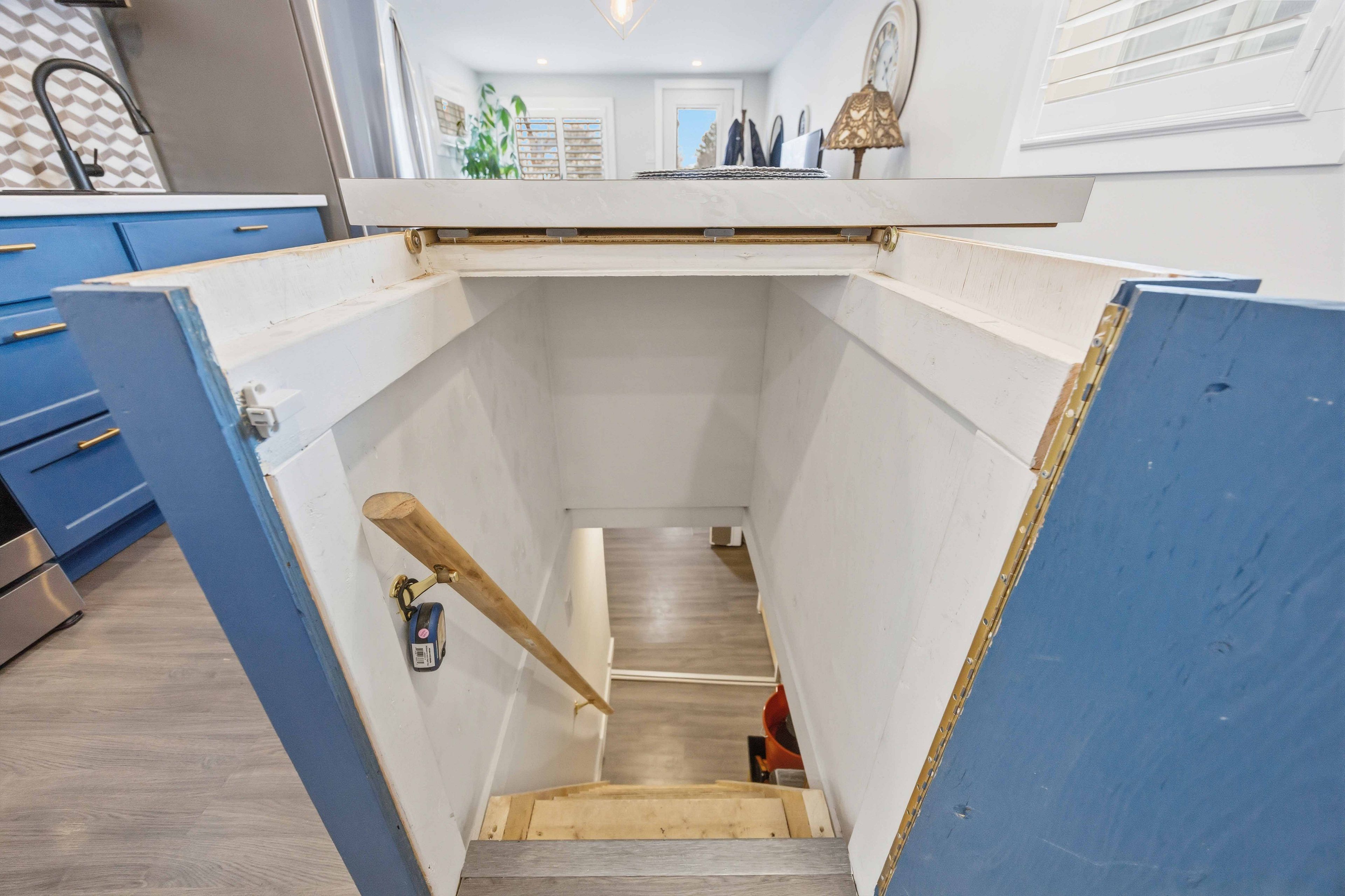 • Unique hidden staircase leading to extra living space for recreation or hobbies.