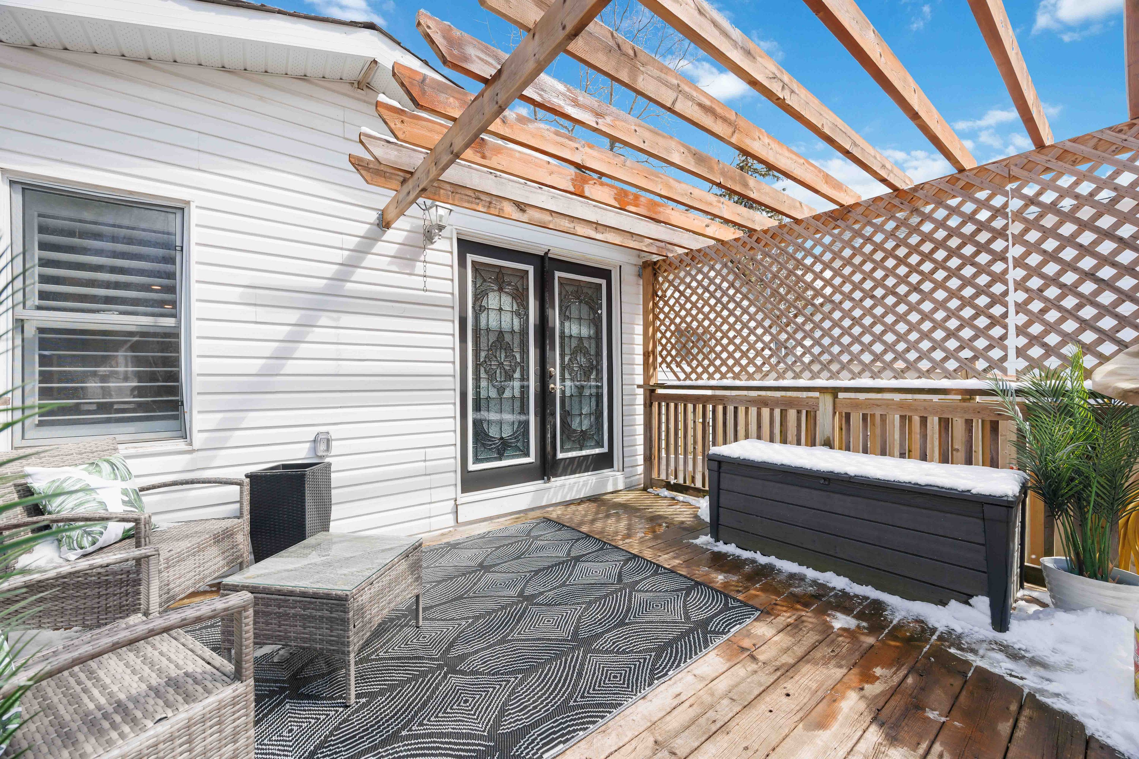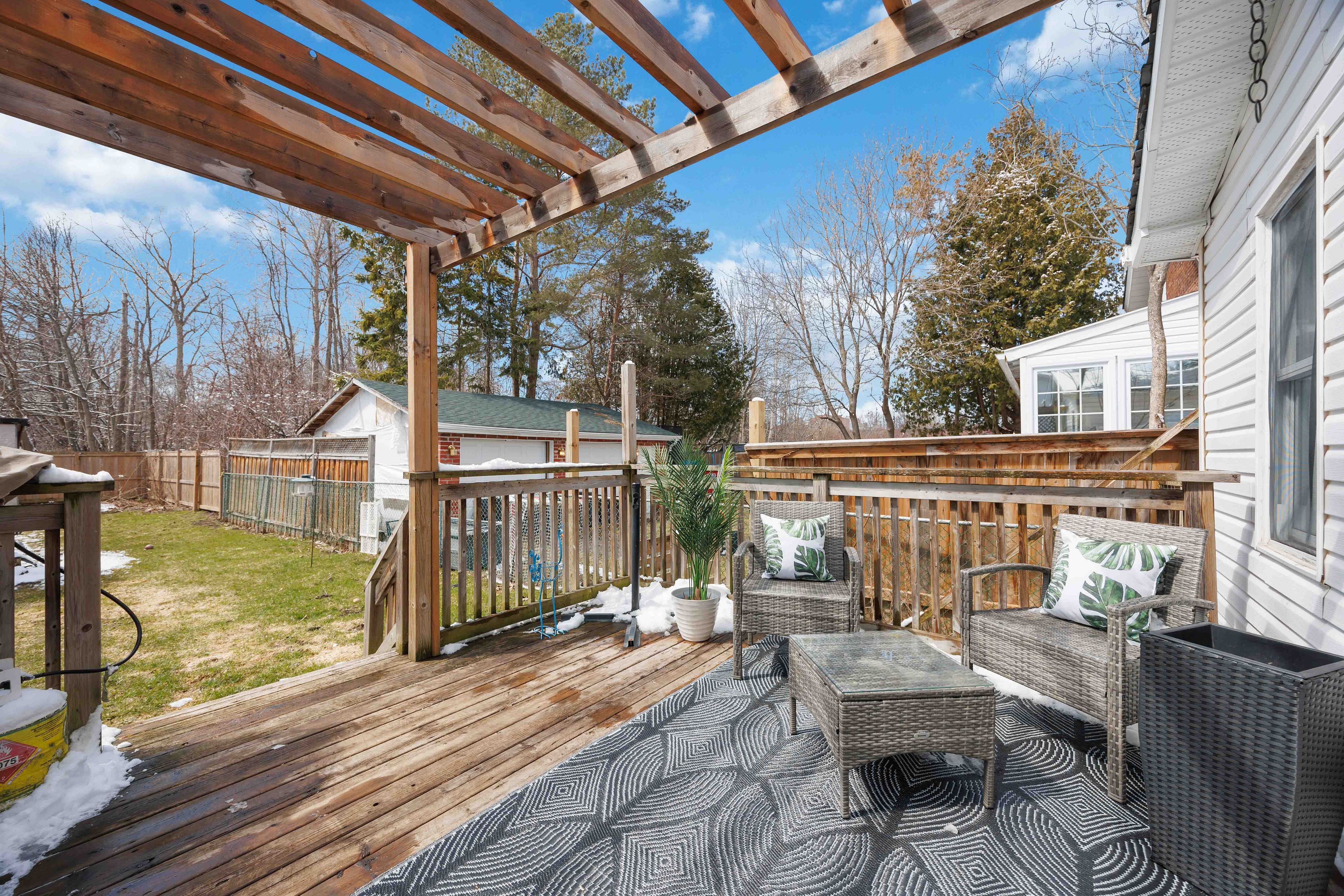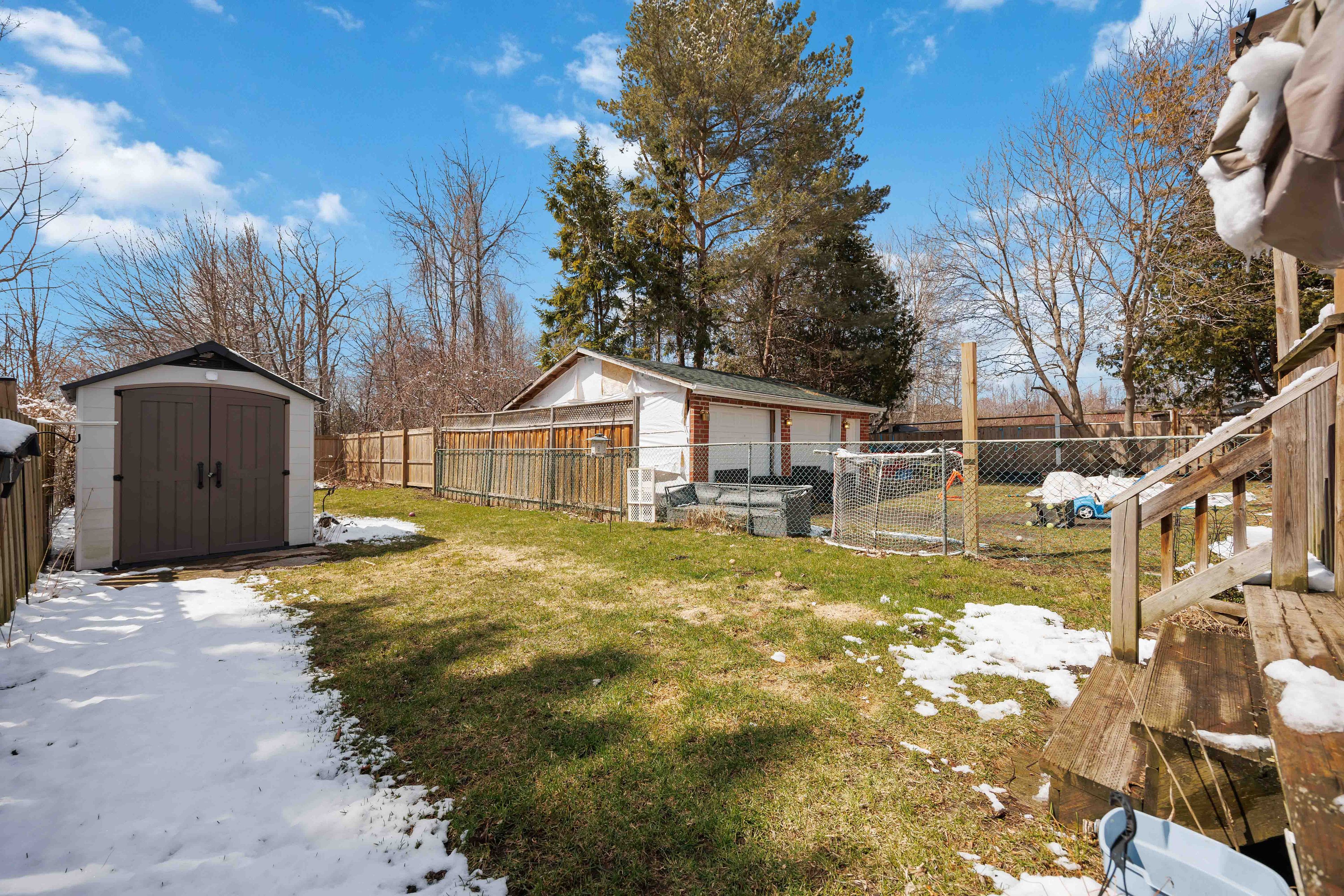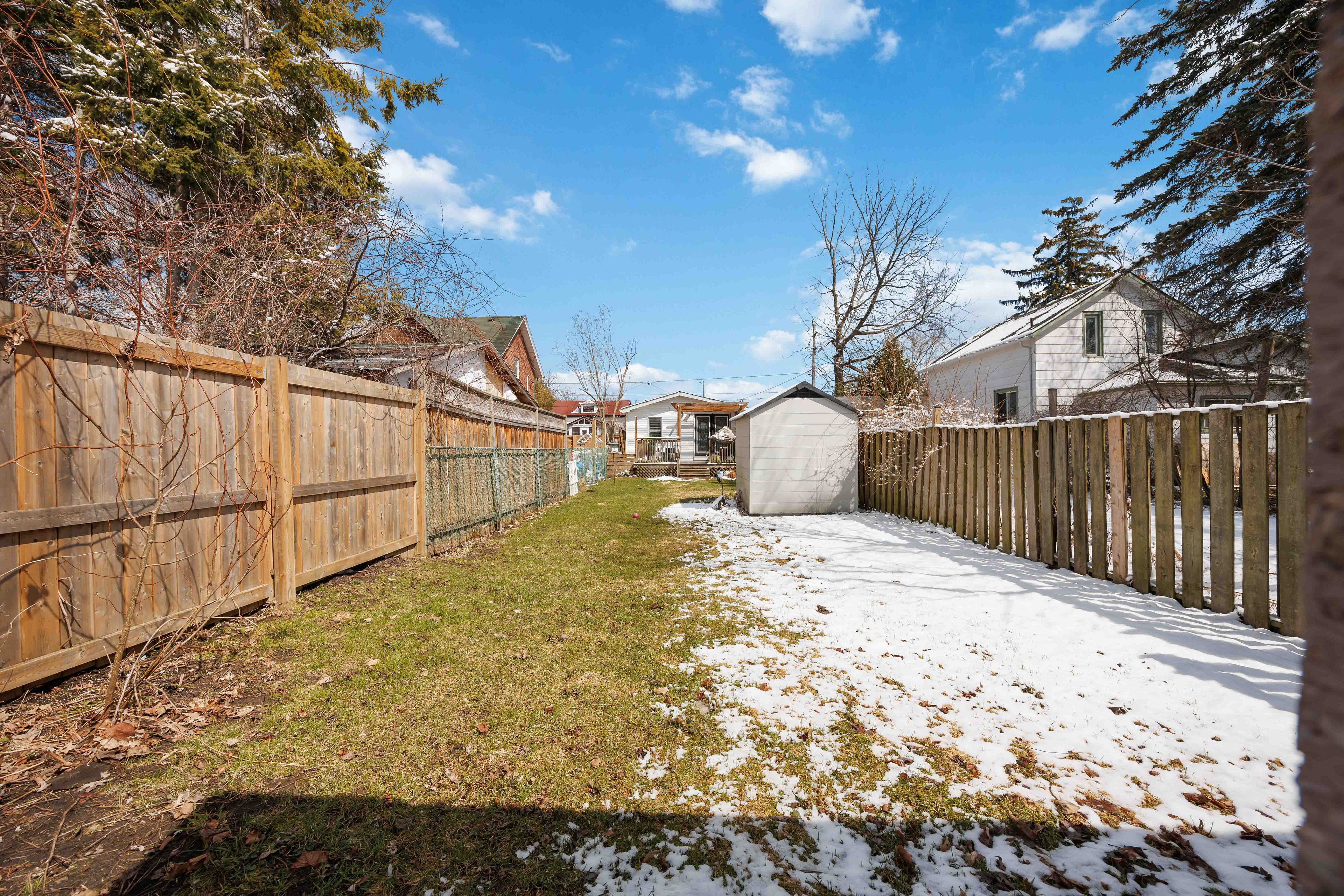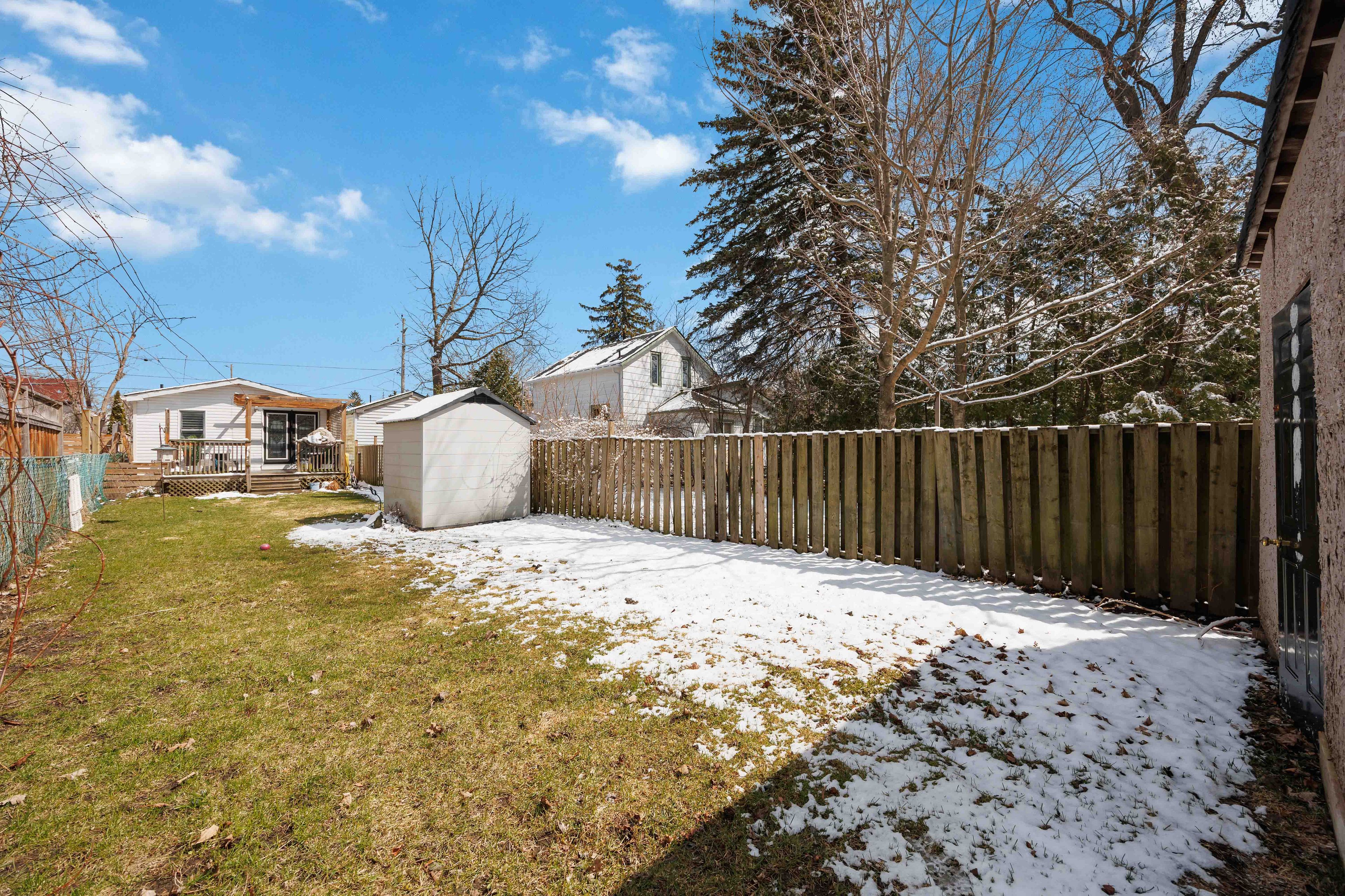 • Large deck and deep yard with a new garden shed for outdoor enjoyment.