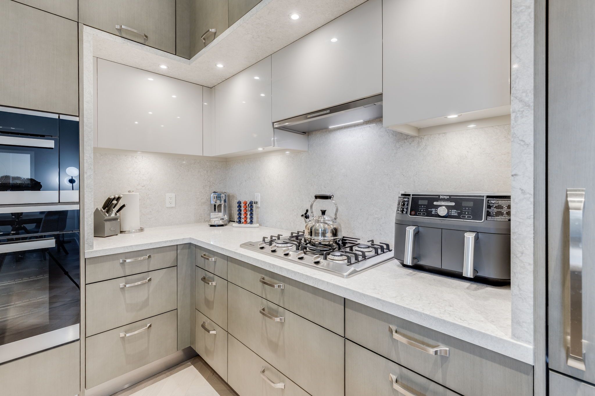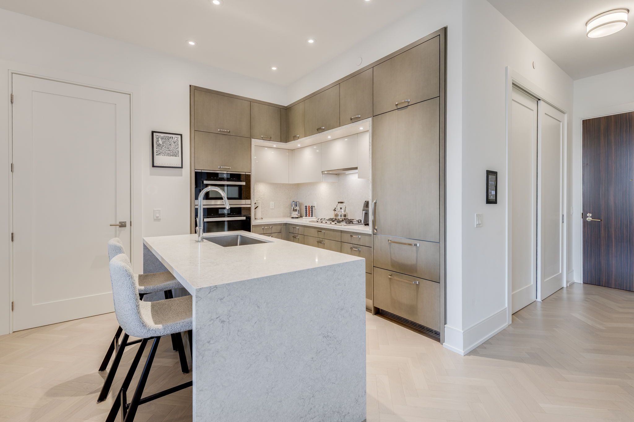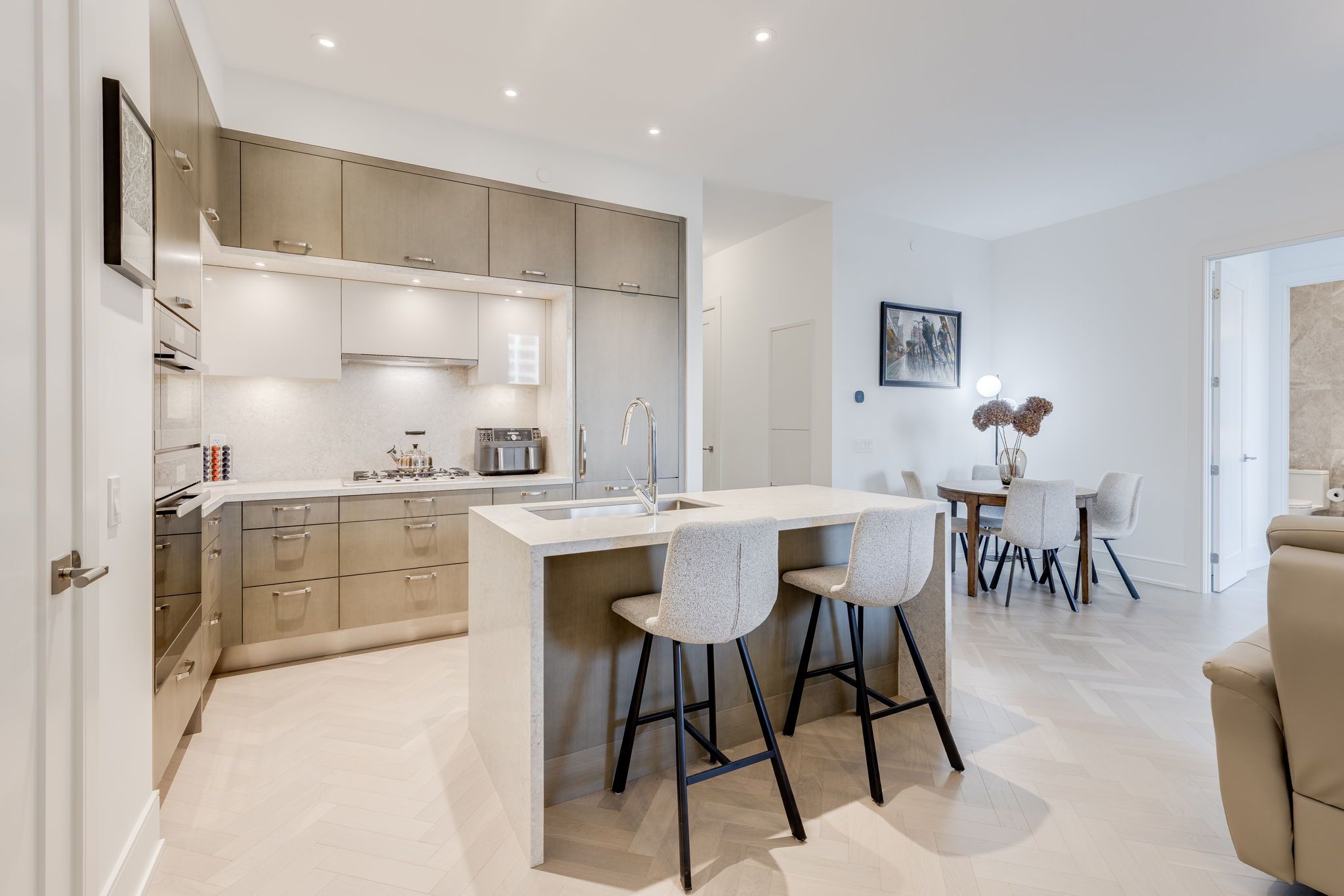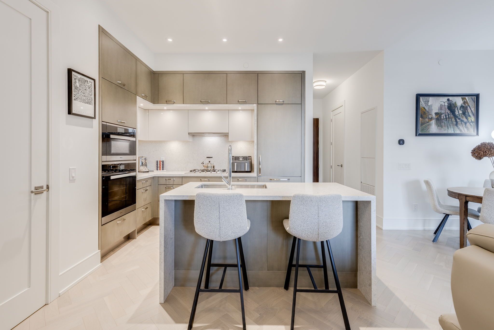 • Gourmet chef's kitchen with upgraded Miele appliances and large breakfast island.