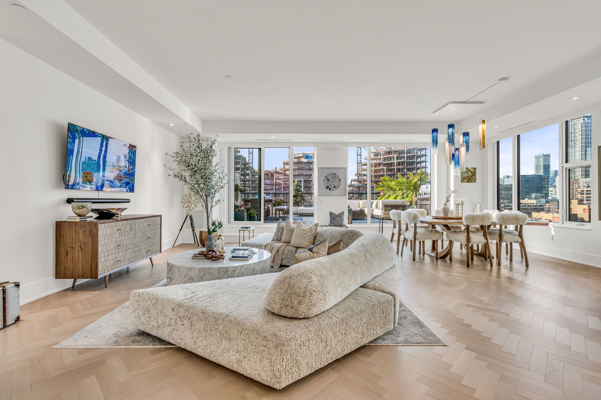 • Elegant open-concept layout with 10-ft ceilings and floor-to-ceiling windows.