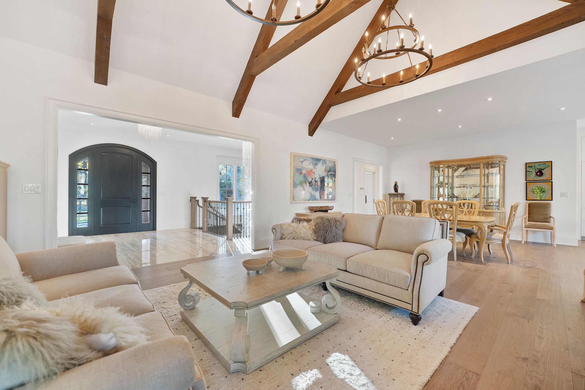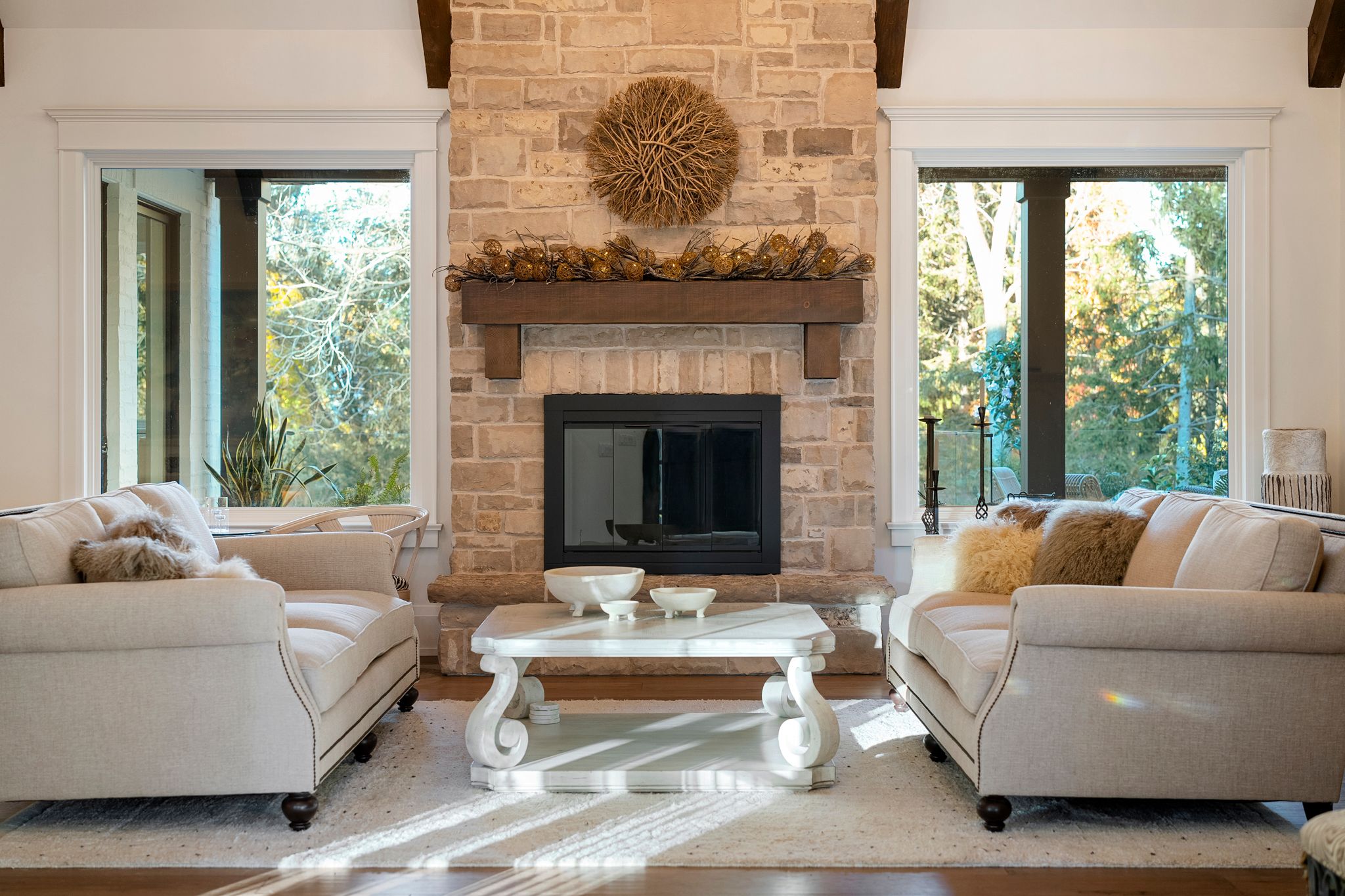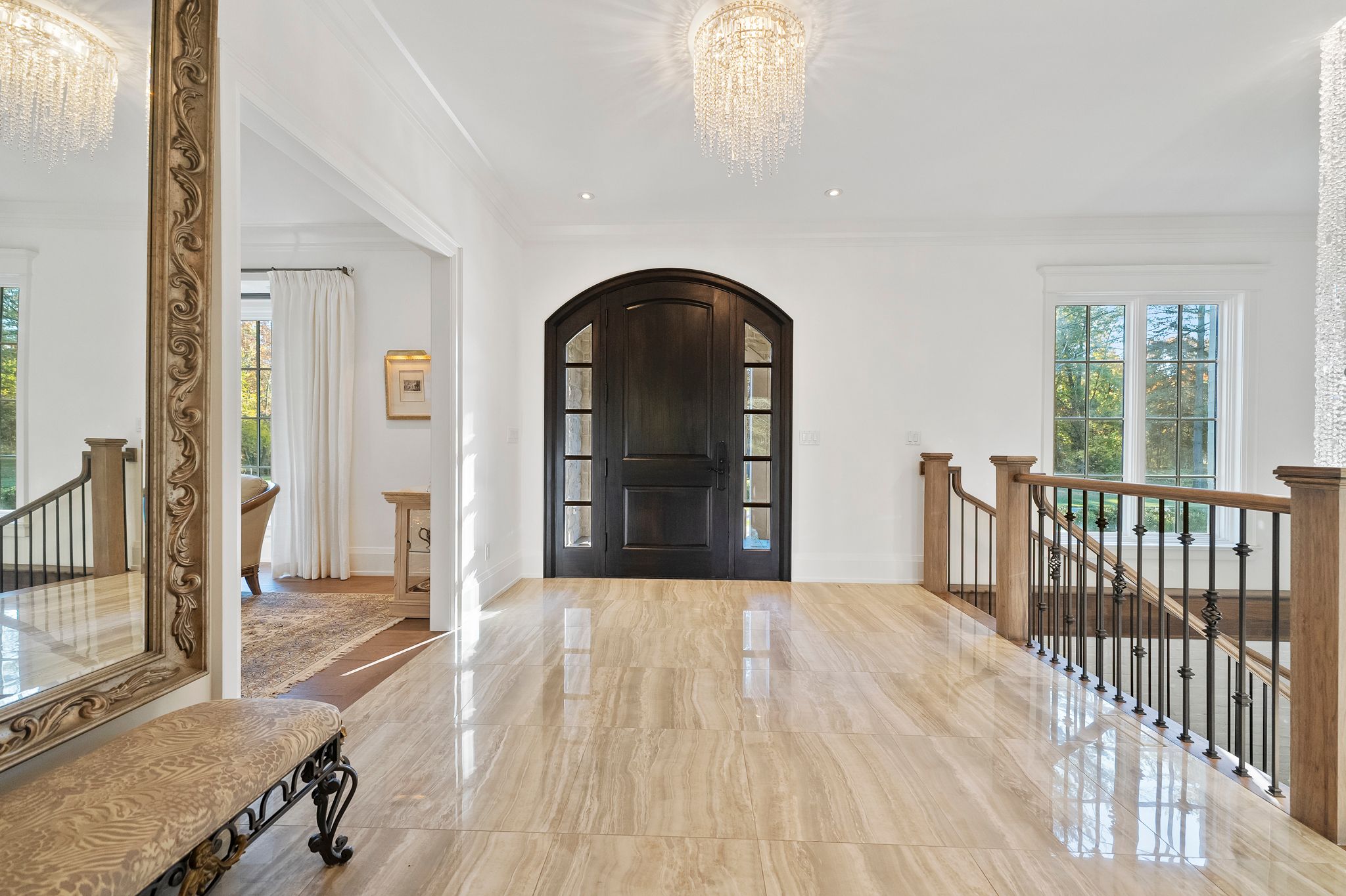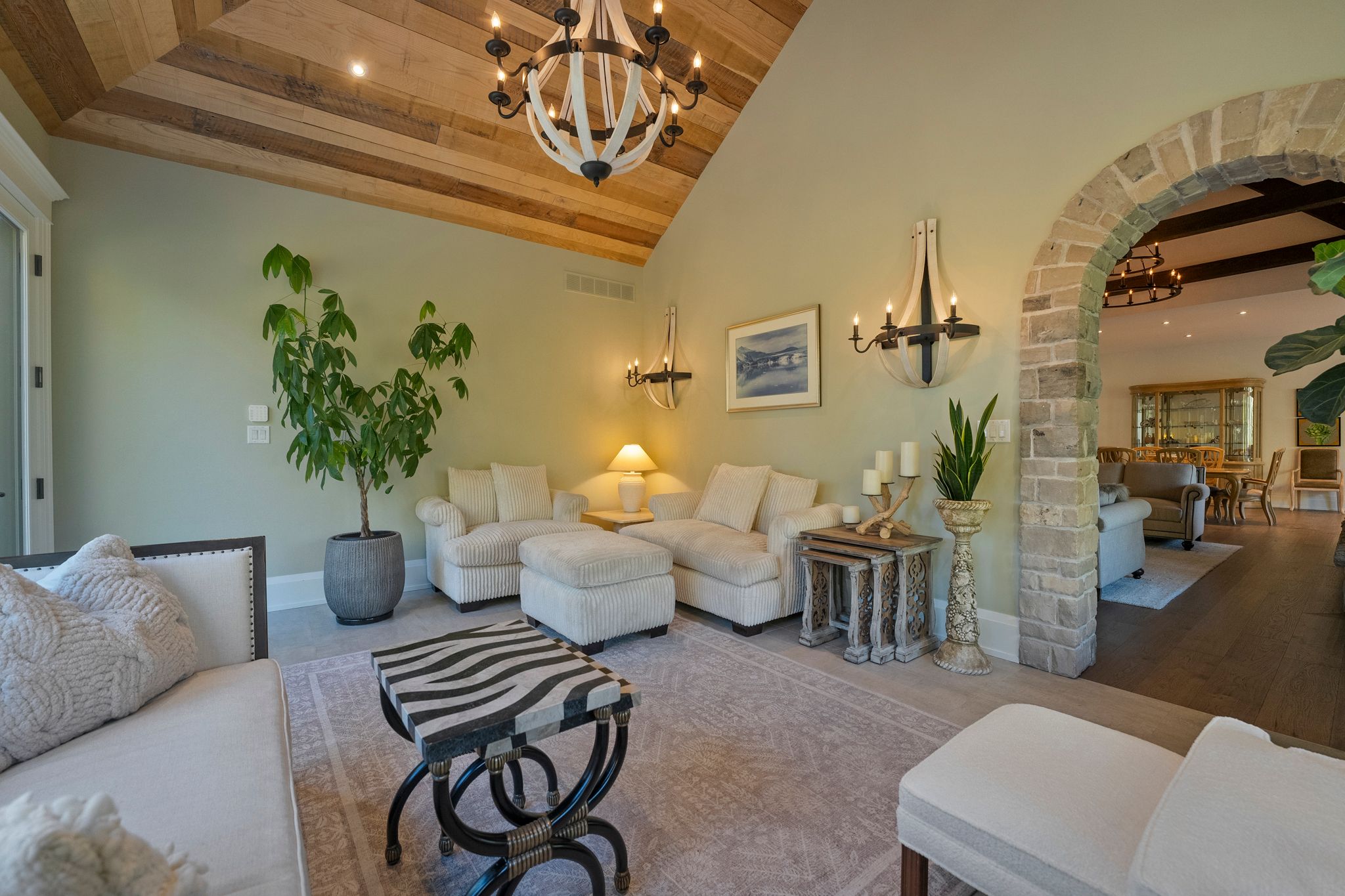 Experience refined living in this exquisite estate nestled in the heart of historic niagara on-the-lake. Set on nearly three acres of lush, wooded grounds, this custom-built home embraces a modern french country aesthetic and offers unparalleled privacy just moments from the lake. Stroll to nearby boutiques, acclaimed restaurants, theatres, and golf courses, and enjoy the vibrant lifestyle that makes this community so sought-after. Step through an impressive stone entryway into a grand foyer illuminated by sparkling crystal chandeliers, immediately setting a tone of sophistication. The formal living room invites cozy gatherings around a beautiful cast stone gas fireplace, while the expansive great room captivates with vaulted ceilings, exposed beams, and abundant natural light streaming through oversized windows. A charming sunroom offers a peaceful sanctuary for morning coffee, and the upper deck complete with a gas fireplace creates a perfect backdrop for intimate evenings under the stars. The gourmet kitchen is designed to inspire culinary creativity, featuring granite countertops, premium appliances including a sub-zero refrigerator and wolf induction cooktop, and a generous walk-in pantry. The main-level primary suite provides a serene retreat with spacious walk-in closets and a spa-inspired ensuite adorned with luxurious finishes. The lower level reveals an entertainers paradise with a family lounge, direct access to a pool deck, sauna, hot tub, and a temperature-controlled wine cellar. Four additional ensuite bedrooms ensure comfort and privacy for family and guests alike. Impeccably landscaped gardens surround the estate, offering a stunning outdoor setting ideal for entertaining or quiet relaxation. This extraordinary home seamlessly blends timeless elegance with modern comforts, making it truly one of a kind in niagara-on-the-lake
