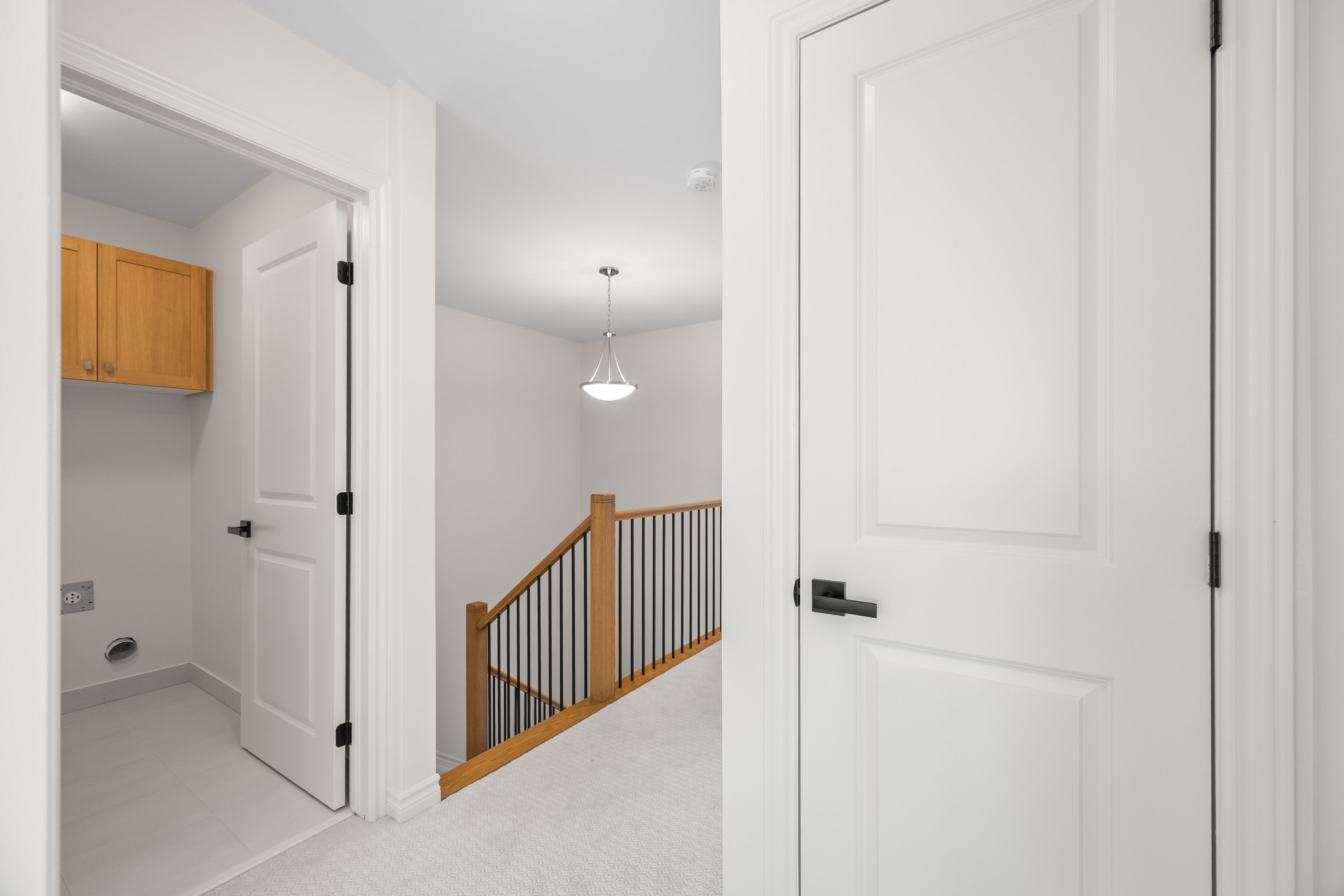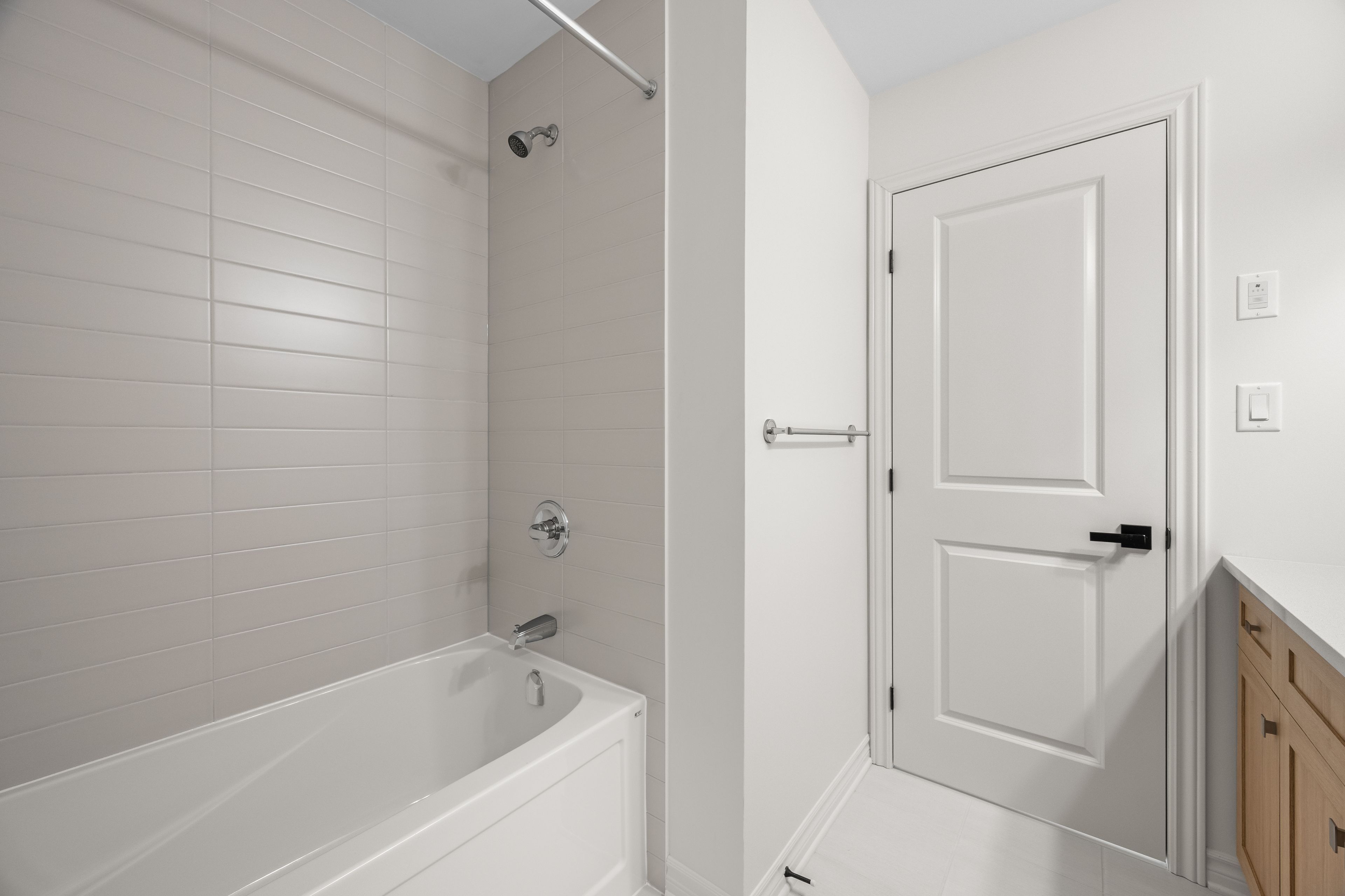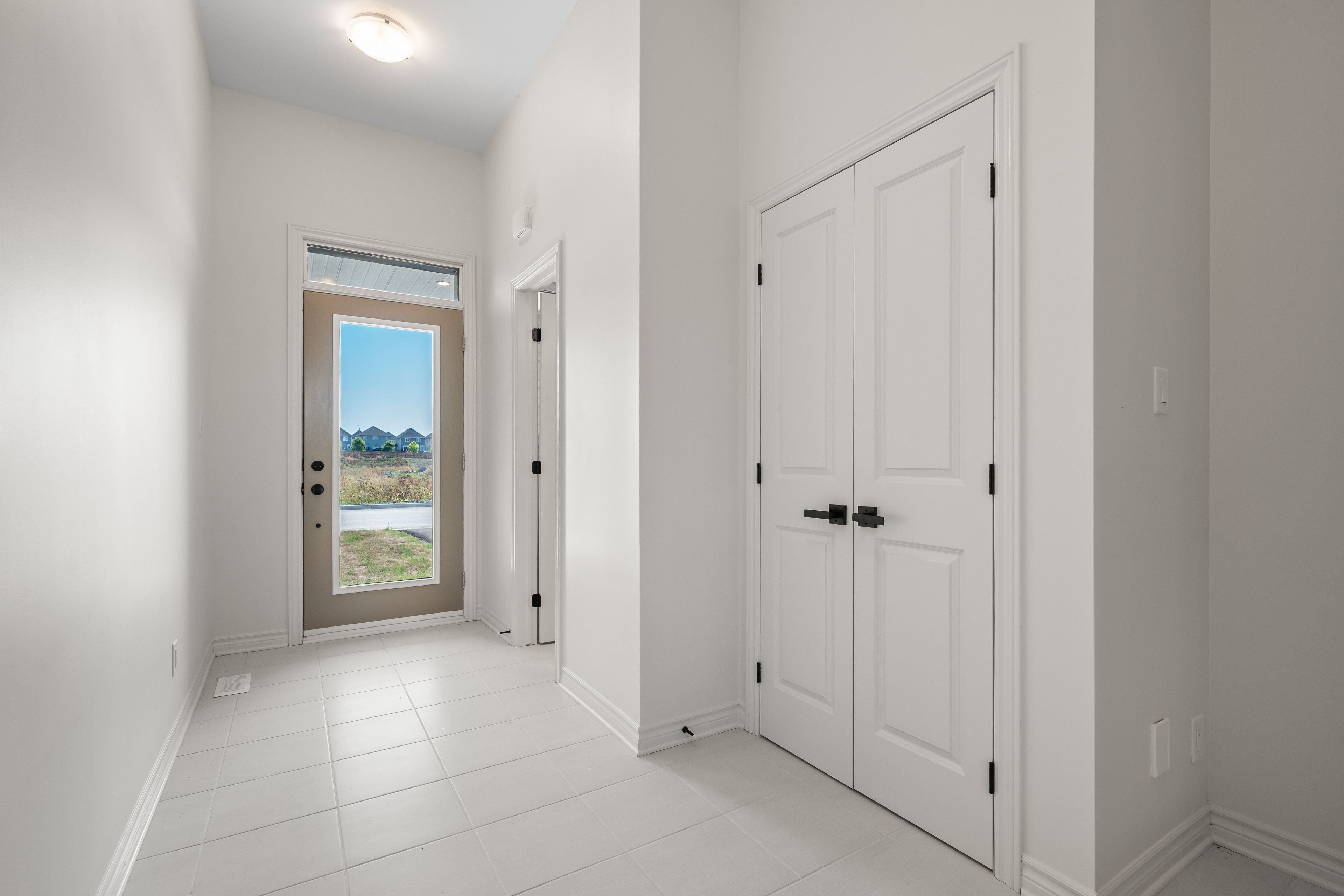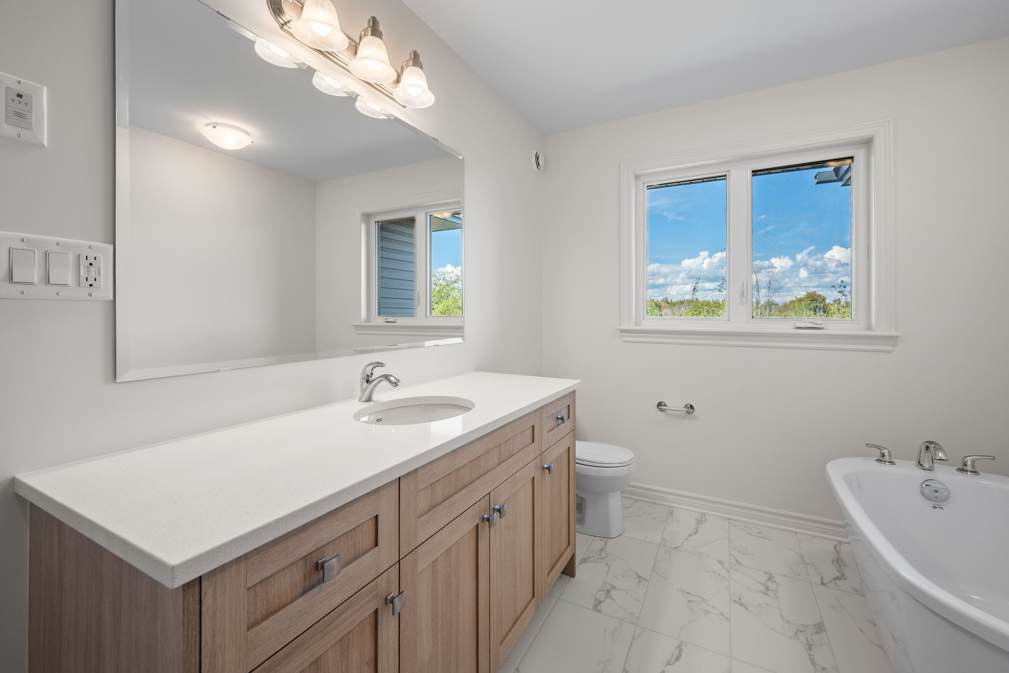 The abbey offers 1,855 sq ft of stylish living in kingstons west-end woodhaven community. The main floor showcases maple hardwood, a modern kitchen with quartz counters, white shaker cabinetry, an upgraded sink, and a spacious walk-in pantry. A cozy gas fireplace anchors the living area. Upstairs, the primary suite includes a luxurious 4-piece ensuite with a freestanding tub and a walk-in tile-and-glass shower. The home also features a finished walkout basement with a rough-in for a future bathroom, giving you plenty of extra living space and flexibility. Energy star certified for efficiency, this home is close to the invista centre, cataraqui centre, a new elementary school, parks, and a planned 14-acre community park.