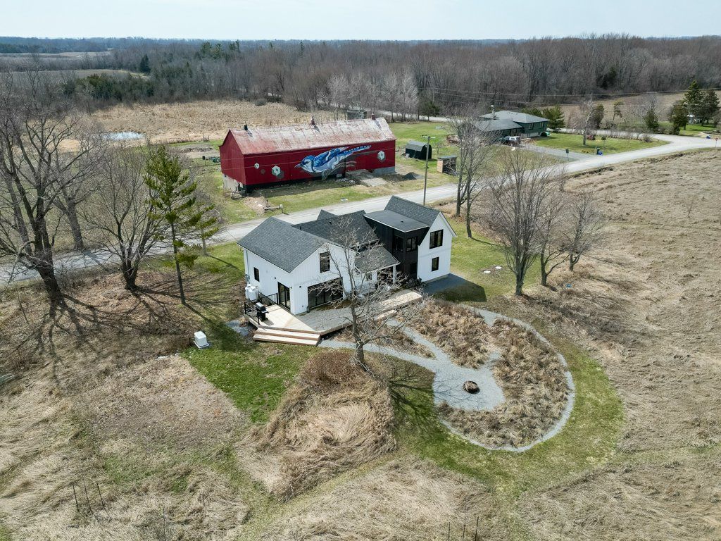 A modern farmhouse in the heart of hillier, 456 cold creek road offers refined county living with thoughtful design at every turn. Backing onto rolling pasture and neighbouring vineyards, this home blends open-concept comfort with elevated finishes and a seamless indoor-outdoor flow. Renovated from the ground up by beloved local builder retreat homes, every detail has been carefully considered. Original hand-hewn beams anchor the kitchen ceiling, adding warmth and character to the bright, light-filled interior. Incredibly designed quartz countertops, custom cabinetry, and oversized patio doors create a swoon worthy kitchen and dining space. Tastefully tiled baths, and curated lighting create a cohesive and elevated aesthetic throughout. The main floor is designed for gathering. A welcoming entrance opens to an expansive living space where a striking stone fireplace sets the tone for cozy evenings, while a dramatic glass wine enclosure offers a nod to the county's celebrated wine culture. The kitchen flows effortlessly into the dining area with direct access to the oversized back deck-perfect for entertaining or quiet mornings overlooking the fields beyond. A full bath on the main level adds functionality and flexibility. Upstairs, three spacious bedrooms and two beautifully finished bathrooms provide comfort for family and guests alike. The primary suite features soaring ceilings and a spa-like ensuite with a soaker tub overlooking neighbouring vineyards. Outdoors, the lifestyle continues. A covered front porch captures glowing sunrises, while the newly built back deck and fire pit frame spectacular sunsets. Native perennial gardens and an ornamental orchard designed by wild by design, with over 500 plants, create layered seasonal beauty throughout the year. Just minutes from hillier's wineries, wellington's shops and dining, and the county's beautiful beaches-this is modern county living at its finest: stylish, functional, and deeply connected to its surroundings.