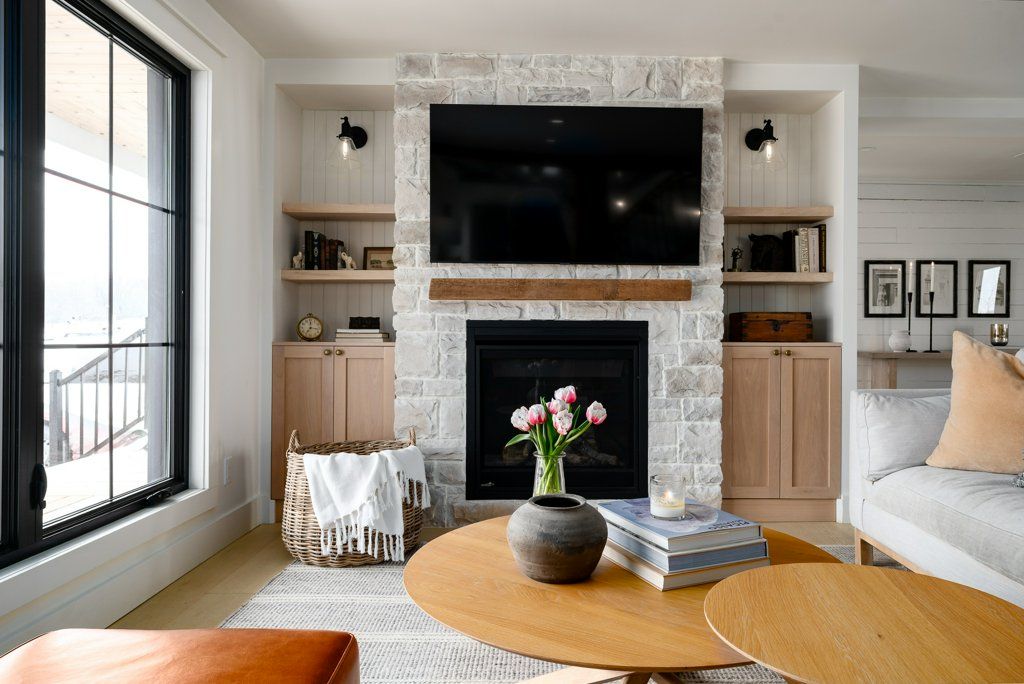 • Expansive living area with a striking stone fireplace for cozy evenings.
