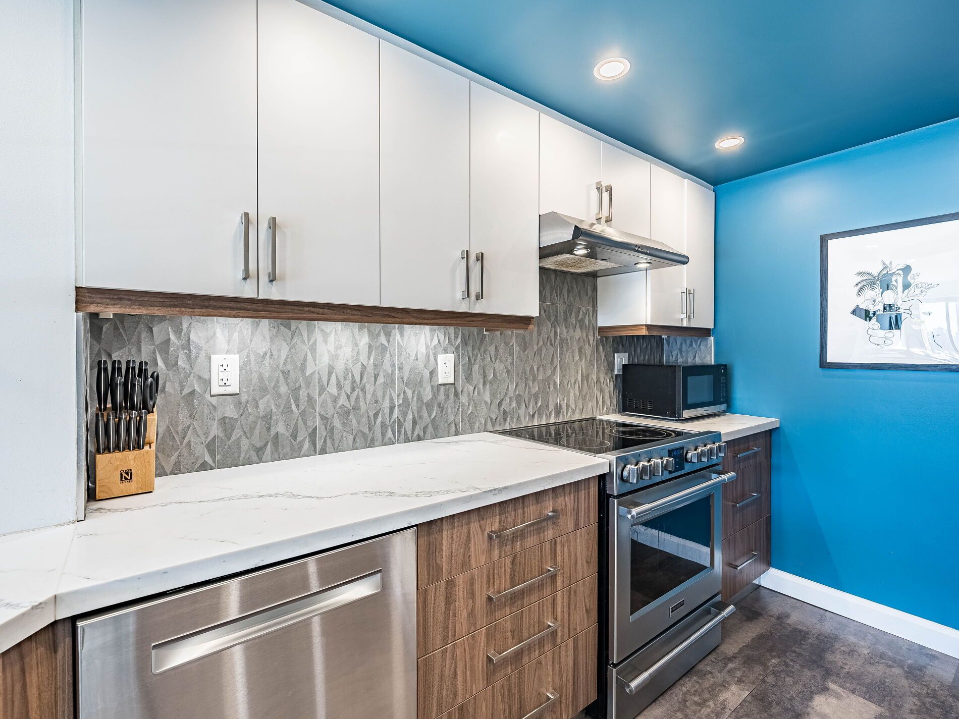 • Upgraded kitchen with stainless steel appliances and stone countertops.