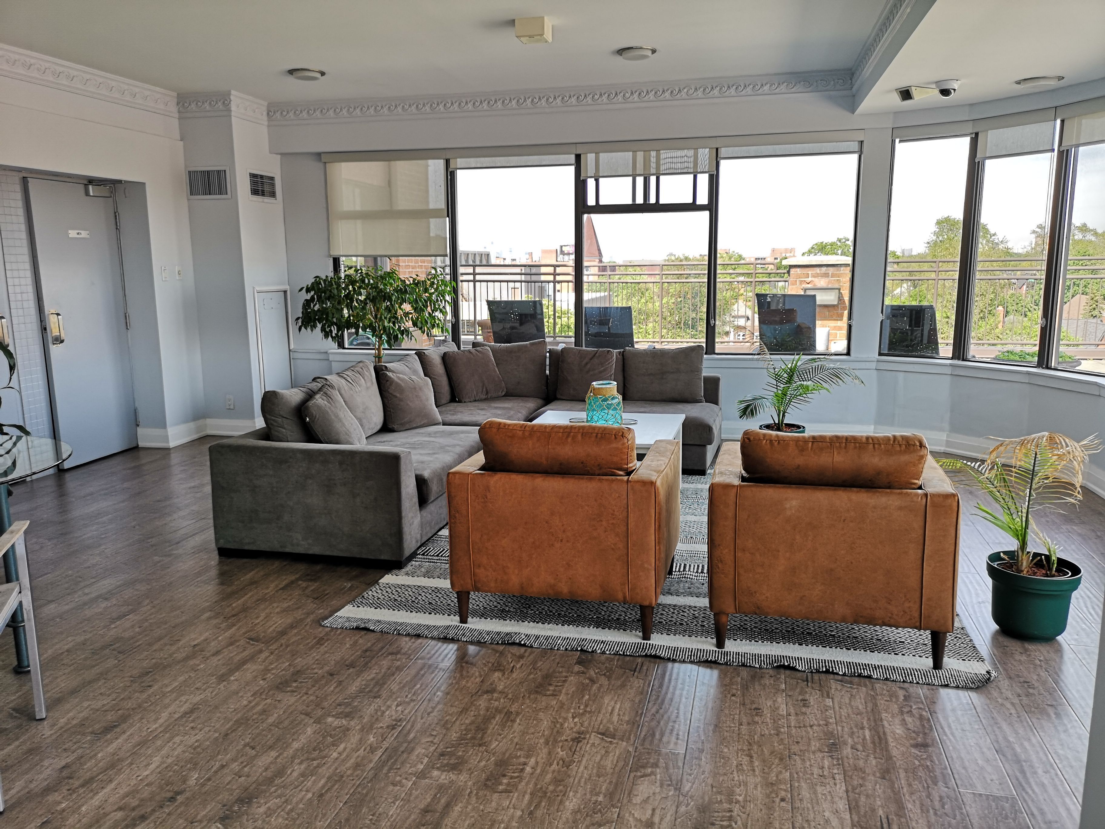 • Premium amenities including gym, rooftop patio, and recreation room.