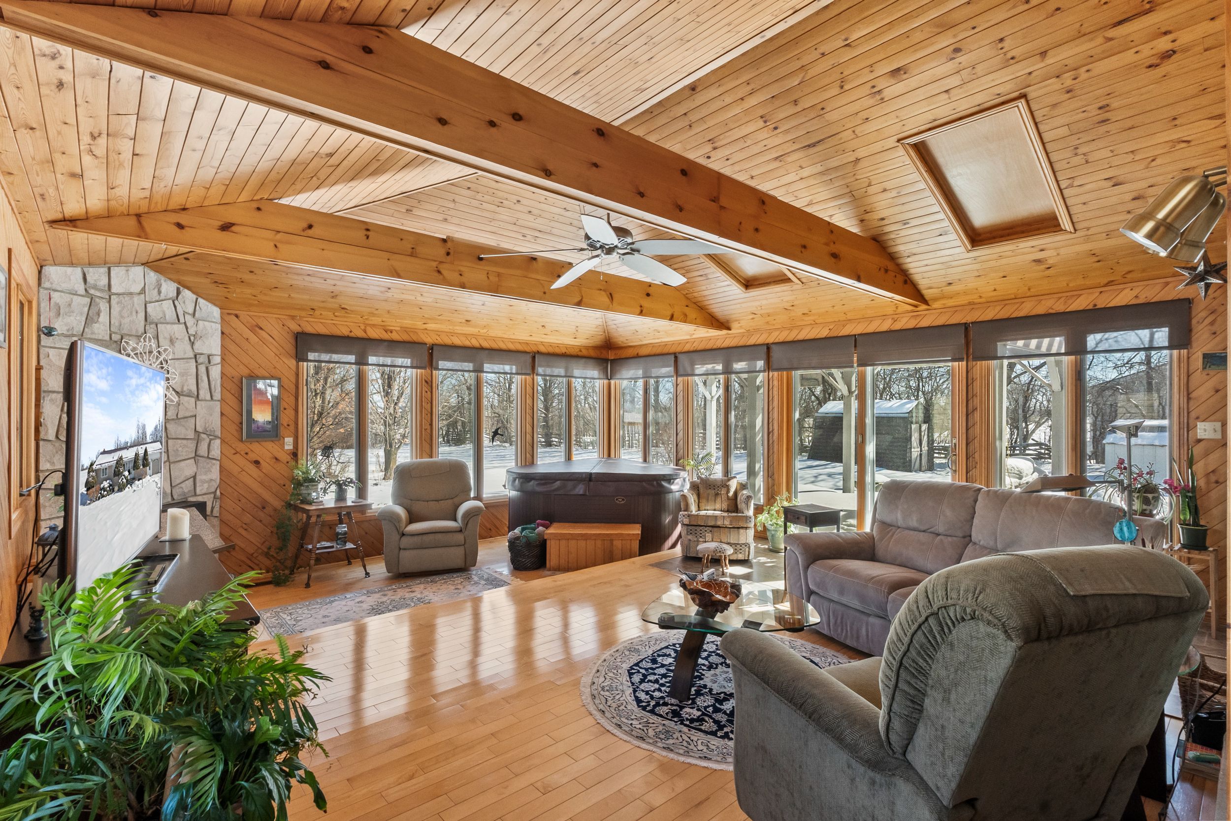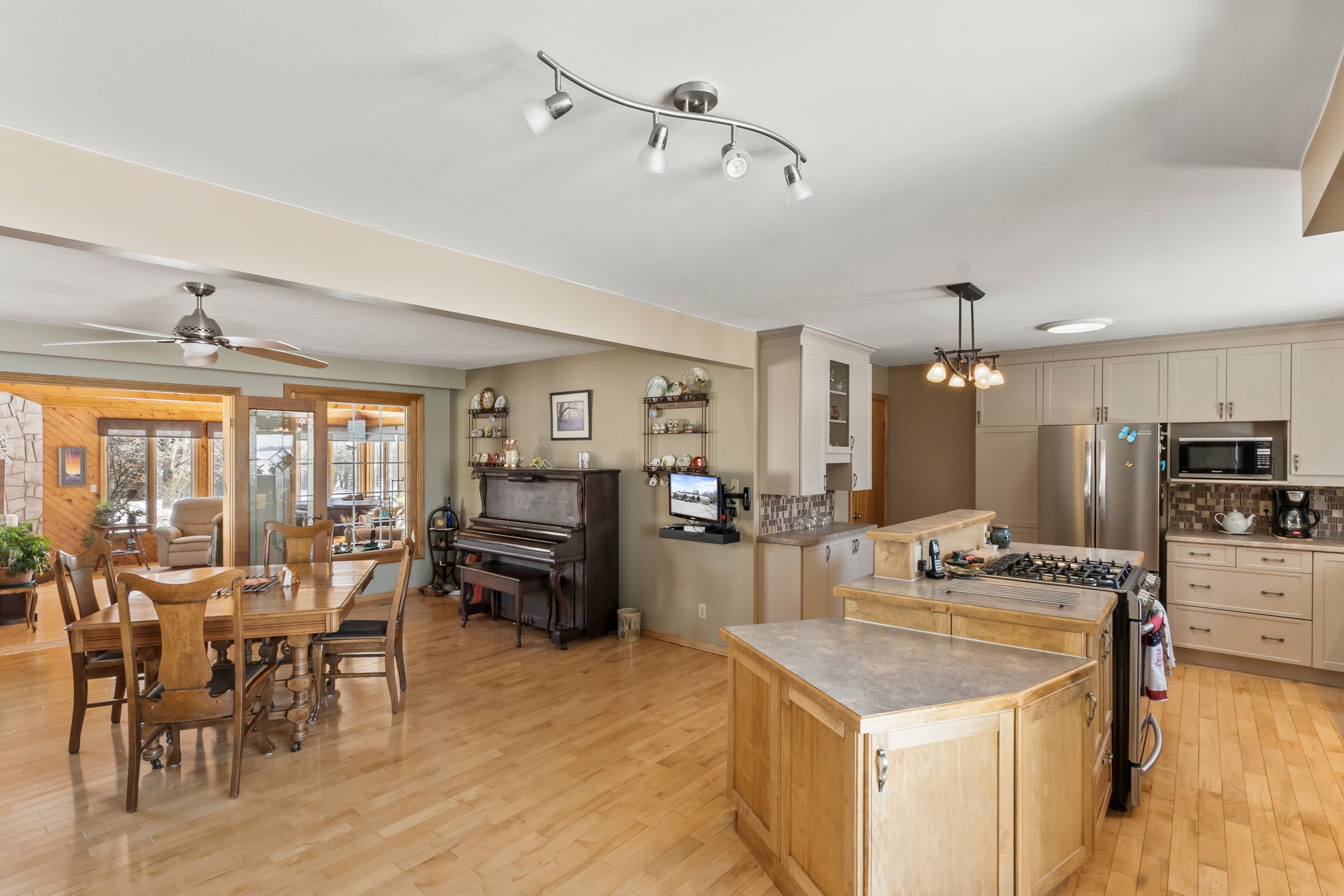 This is a must see home! Nestled on a beautifully 1. 118-acre lot, this spacious and thoughtfully expanded home offers exceptional versatility with 4 bedrooms and 2 kitchens, making it ideal for multi-generational living or extended family arrangements. Originally built in 1975, the home has been carefully enhanced over the years with a bright family room addition in 1988 and a fully self-contained main-level in-law suite added in 2006. The in-law suite was constructed with its own full basement, featuring high ceilings and large windows, providing an abundance of storage and future finishing potential. The finished lower-level rec room is a warm and inviting space highlighted by a charming wood-burning fireplace - perfect for cozy evenings. The main kitchen is filled with natural light thanks to two solar tubes that bring sunshine directly into the heart of the home. Designed for comfort and independence, the property includes separate propane (rented) water heaters, separate furnaces, separate air conditioning units, and even separate septic systems, offering flexibility and convenience for multi-family living. Outdoor living is just as impressive, with durable composite decks accessible from both the main home and the in-law suite - ideal for relaxing or entertaining while enjoying the expansive lot. A rare opportunity to own a well-maintained home with space, privacy, and incredible multi-generational potential.