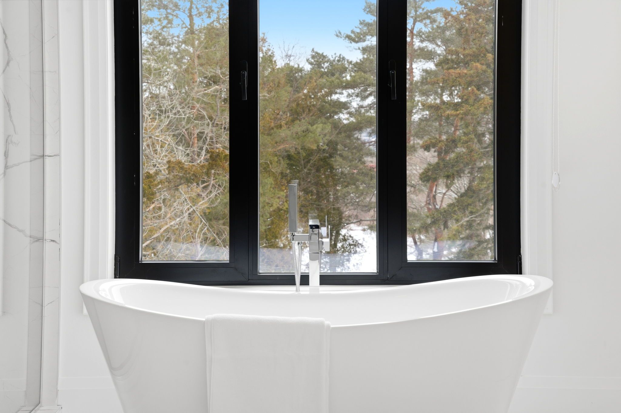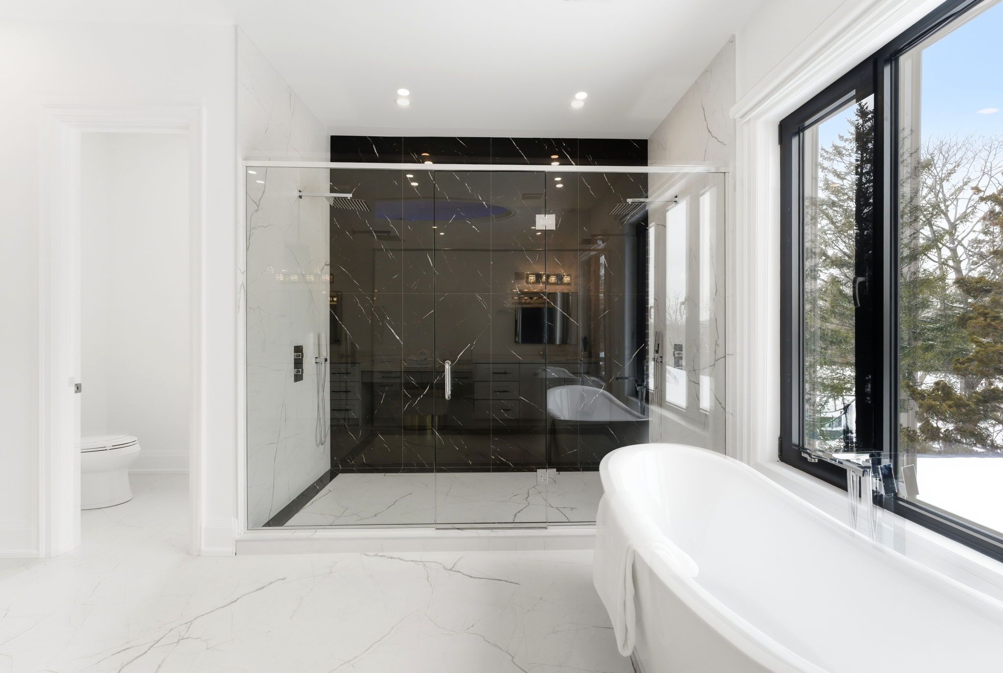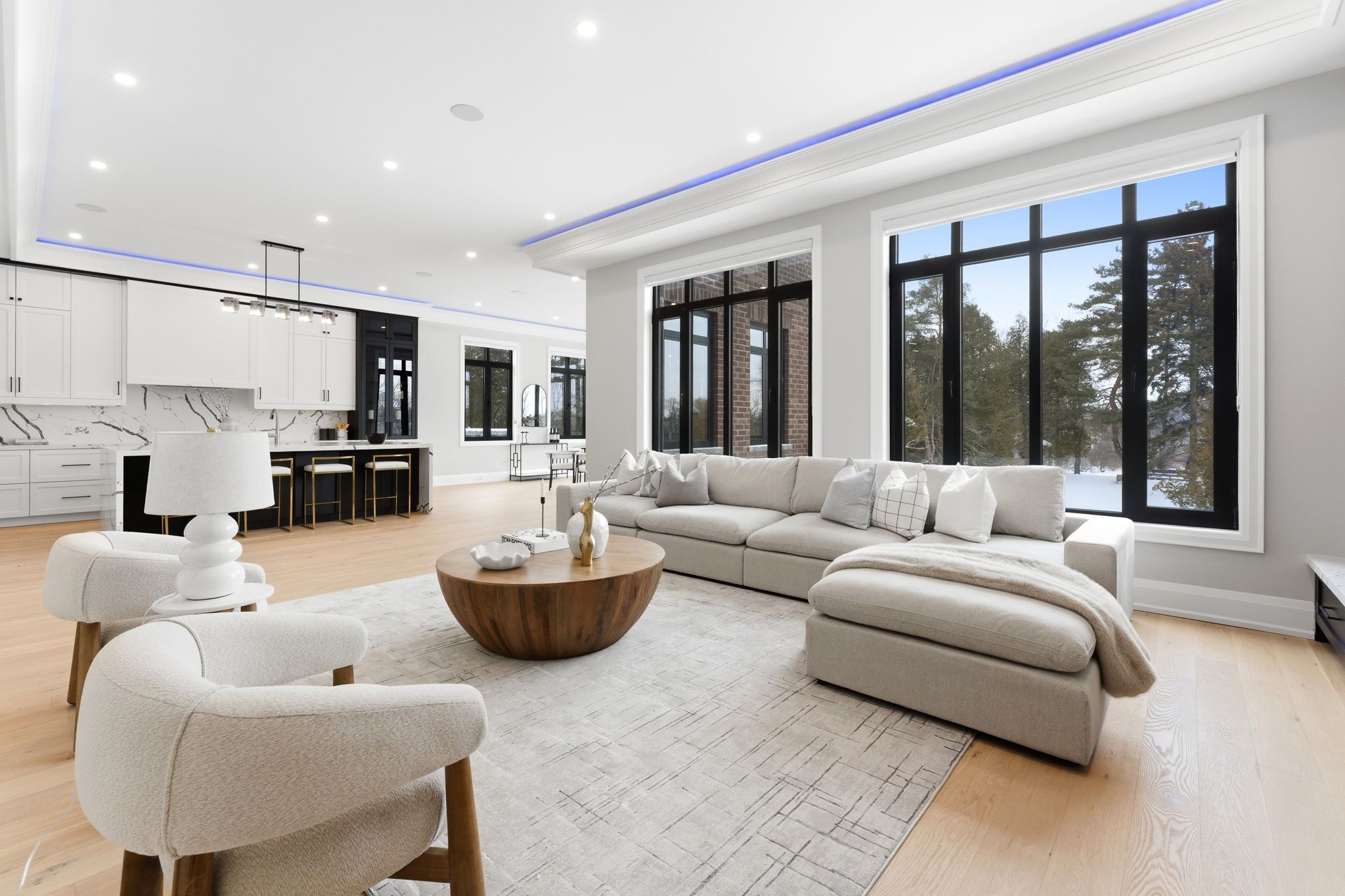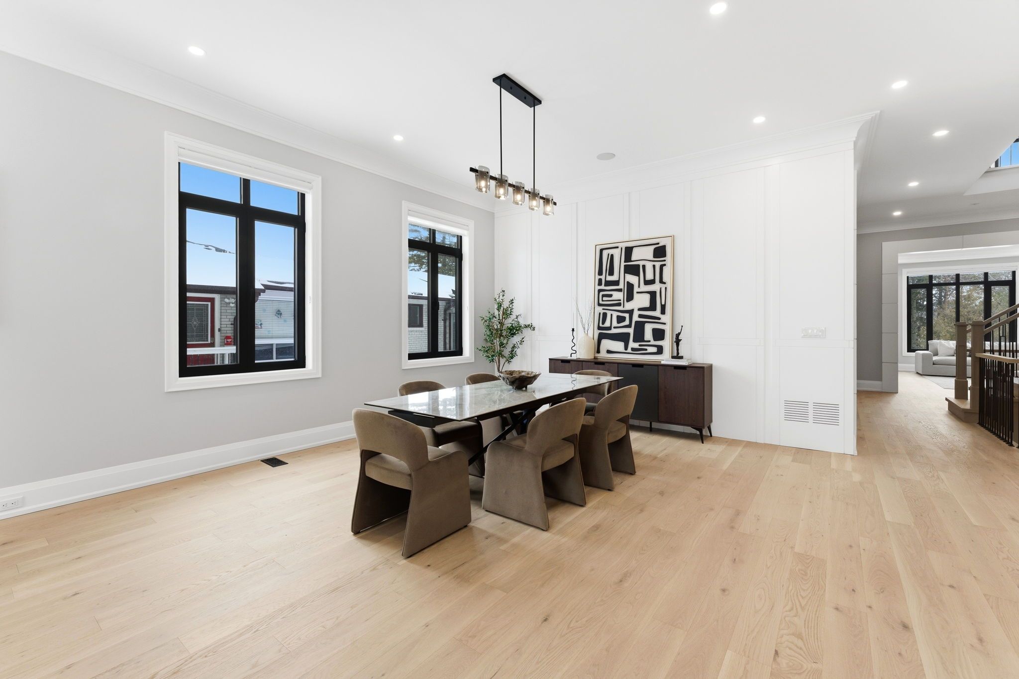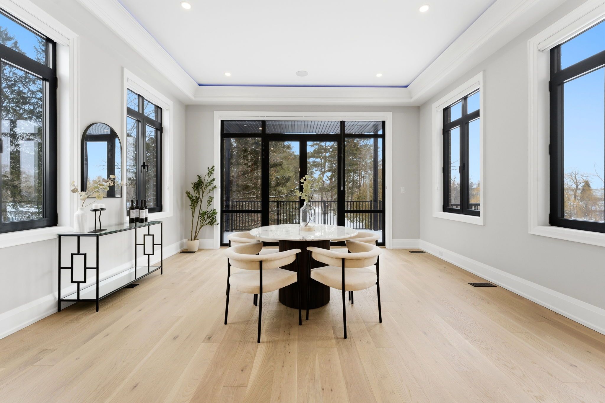 Located in the highly sought-after rosebank area of pickering, 456 toynevale rd presents a rare opportunity on an exceptional 50 x 606 ft (. 699 acre) lot. This impressive 5+1 bedroom, 8bathroom home offers approximately 5,700 sq. Ft of living space above grade in addition to a fully finished walkout basement. The property includes a tandem three-car garage and elevatorproviding access between levels. Hardwood flooring and pot lighting run throughout the mainand upper floors, while oversized windows bring in abundant natural light. The main level isthoughtfully laid out with separate living and dining areas, a private office, and a spaciousfamily room anchored by a fireplace feature wall with built-in shelving. The modern kitchenfeatures built-in appliances, led accents, a butler's pantry, and an open flow to thebreakfast area with walkout to the deck. The primary bedroom includes a generous walk-incloset with organizers and a spa-inspired 6-piece ensuite. Each additional bedroom offers itsown walk-in closet and ensuite bath. The walkout basement expands the living space withmultiple access points to the yard, porcelain and vinyl flooring, rough-in for heated floors, an additional bedroom, playroom, and two 3-piece bathrooms. The deep backyard features aninterlocked patio and ample green space with endless potential for future outdoor enhancements.