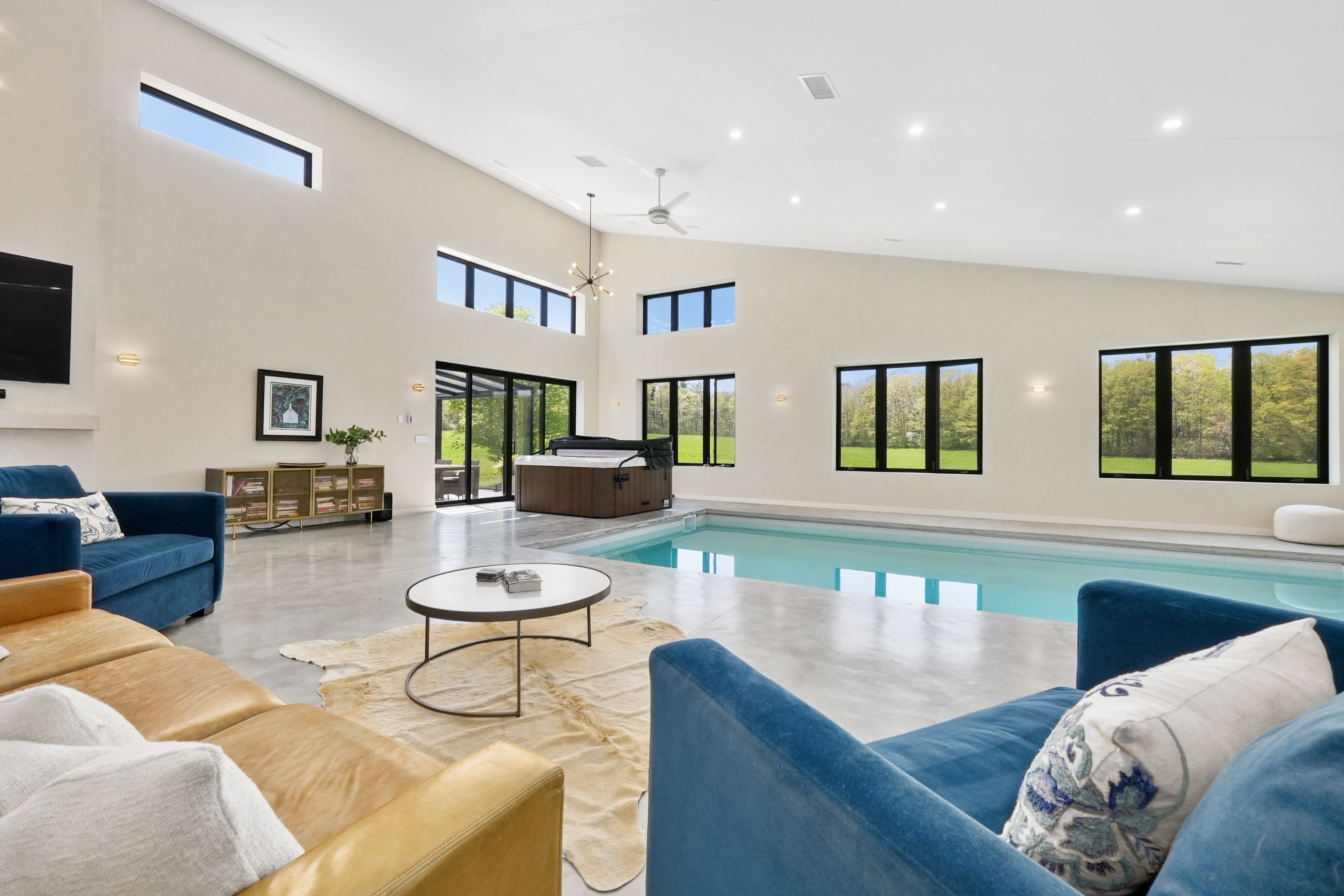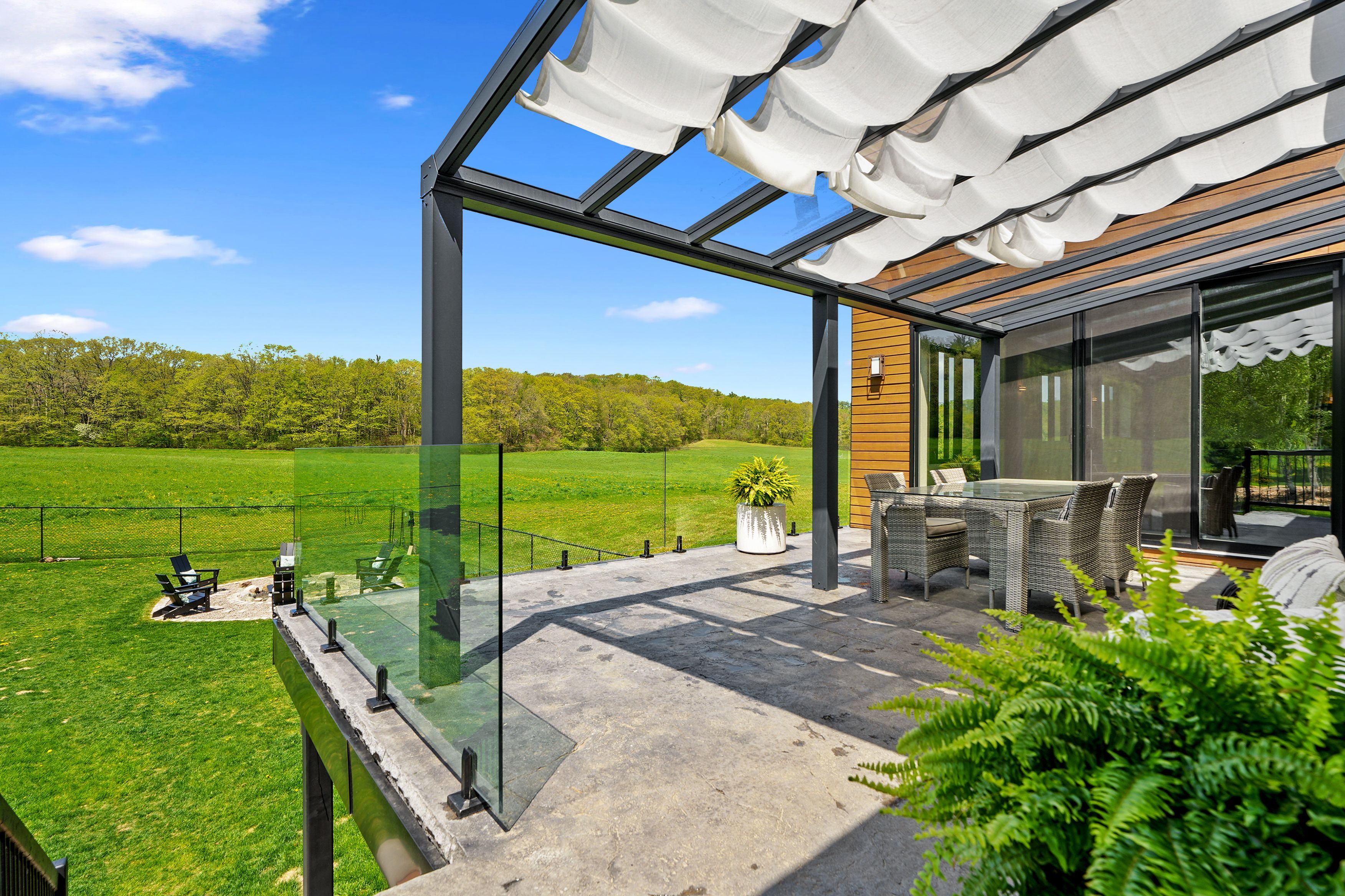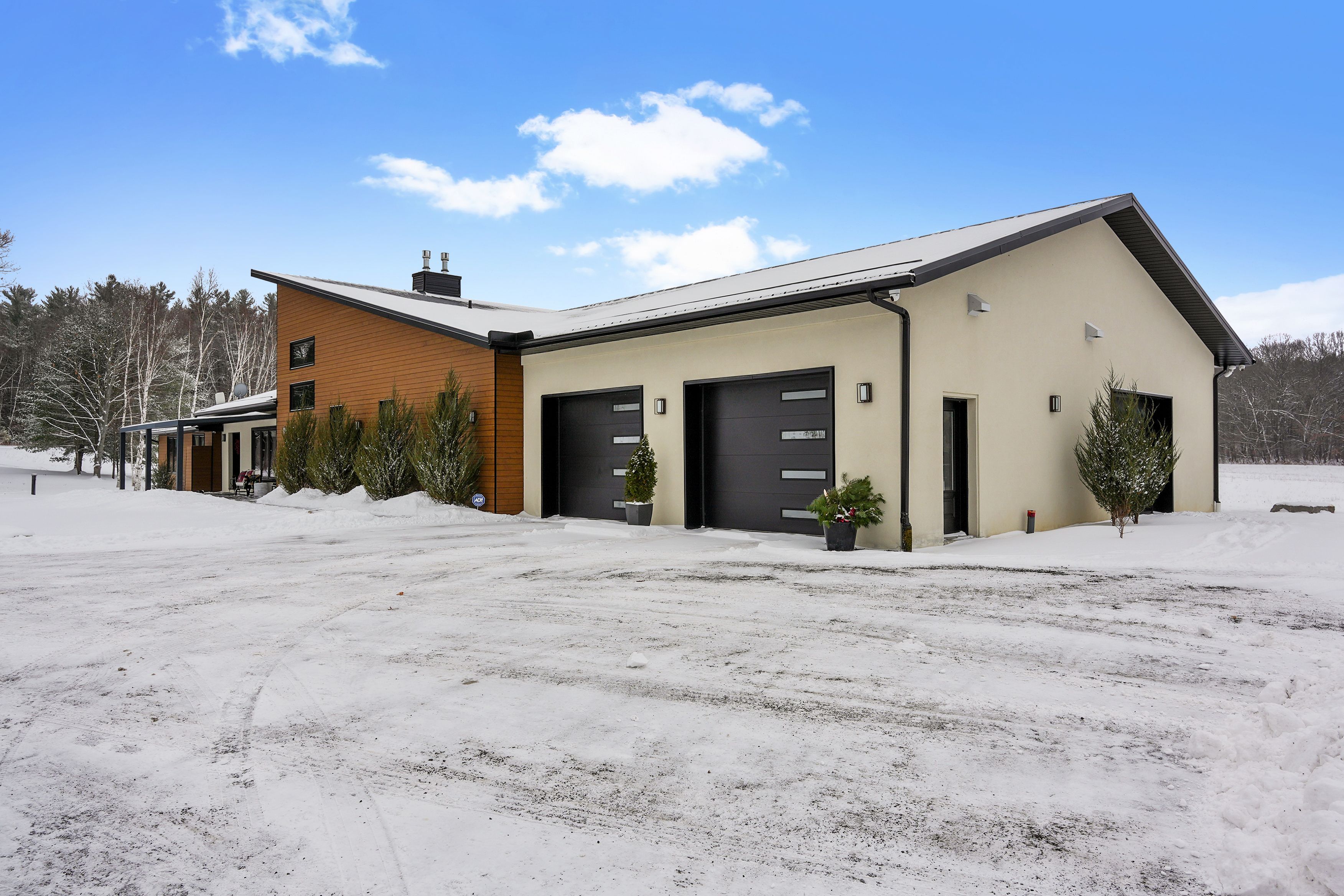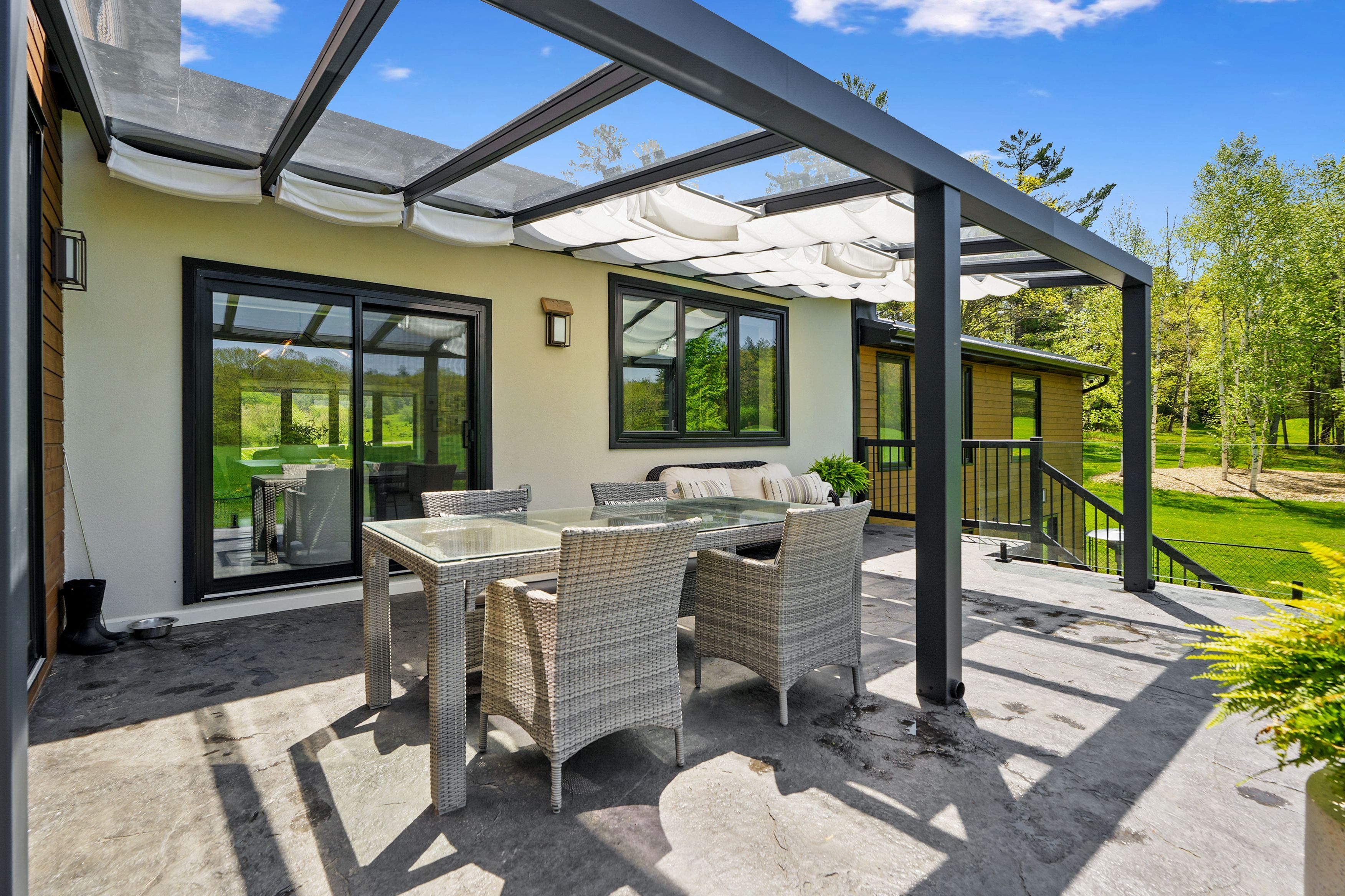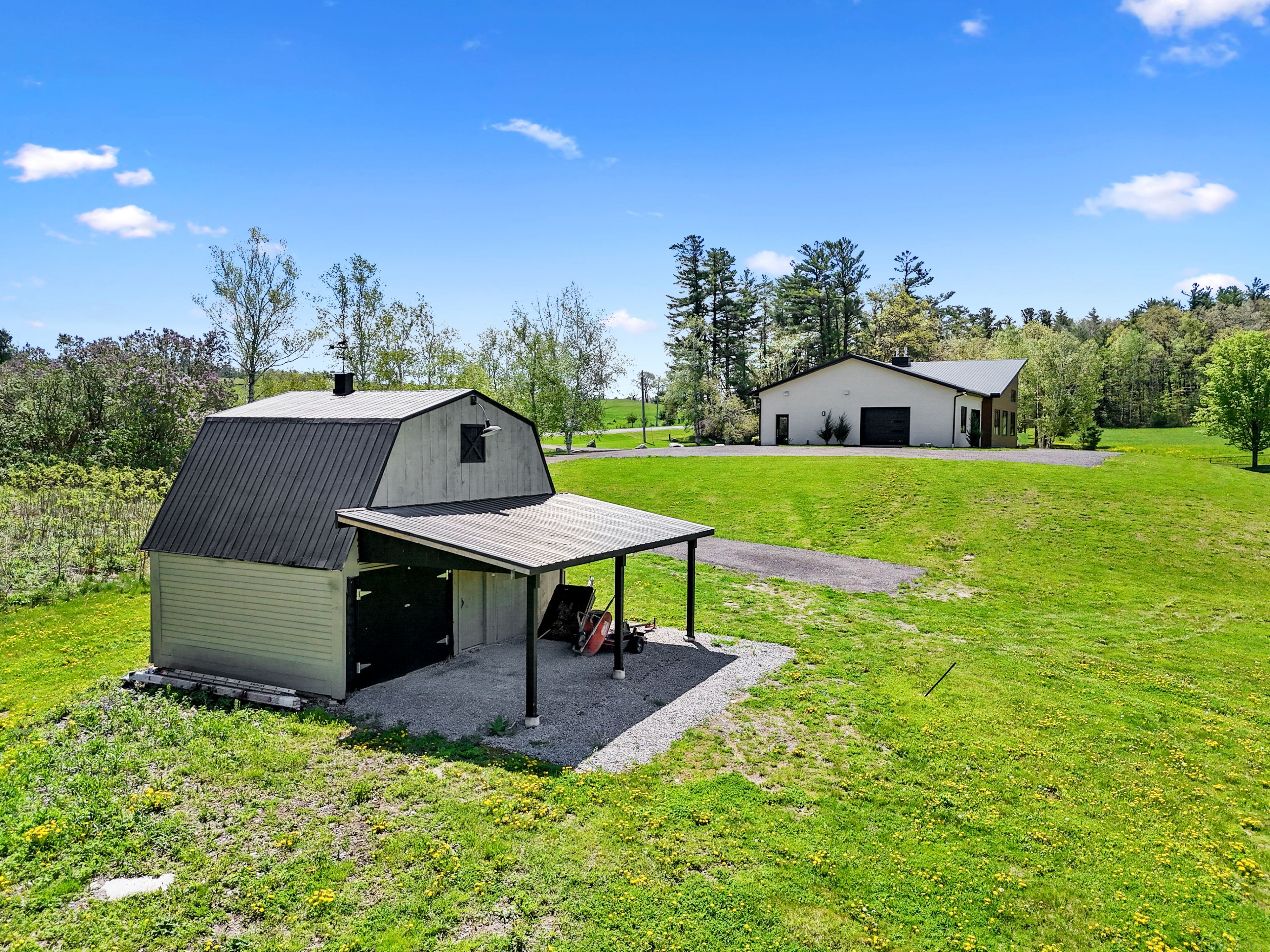 Set on a sprawling 23-acre estate, this striking modern residence exemplifies the perfect balance between contemporary elegance and rural serenity. Every detail has been thoughtfully curated, blending sleek architectural design with high-performance construction, including efficient icf walls and radiant heated concrete flooring. Step into a grand, open-concept living area defined by cathedral ceilings and a dramatic wall of windows. A double-sided napoleon propane fireplace anchors the space, connecting the living room to a sophisticated dining area adorned with modern lighting and walkout to the second-level deck ideal for outdoor entertaining. Sunlight pours into the kitchen through oversized windows and skylights, offering breathtaking views of the rolling countryside beyond and showcasing top-tier jenn-air appliances, striking dekton countertops and a waterfall island with a breakfast bar. Resort-style living awaits in the private attached oasis. A 14x24 heated indoor saltwater pool, soaring 20-foot ceilings, expansive windows, a hot tub, and space for a lounge or home gym create an oasis-like experience, ideal for year-round relaxation and entertaining. The primary suite is a tranquil retreat featuring a walk-in closet and spa-inspired ensuite with dual vanity, freestanding soaker tub, and glass shower enclosure with steam shower. An additional bedroom and two bathrooms round out the level. The finished lower level adds flexible living space, including a sprawling bedroom suite with sitting area, semi-ensuite bath, and walkout to a covered patio. A massive recreation room with a walk-in closet offers potential for a future fourth bedroom. Enjoy a lower covered patio area, fenced yard, and firepit area, perfect for summer nights under the stars. Additional highlights include a radiant heated 4-car garage and a 16x24 barn for versatile use. This one-of-a-kind property is the pinnacle of modern rural luxury. Just under 15 minutes to cobourg and highway 401.