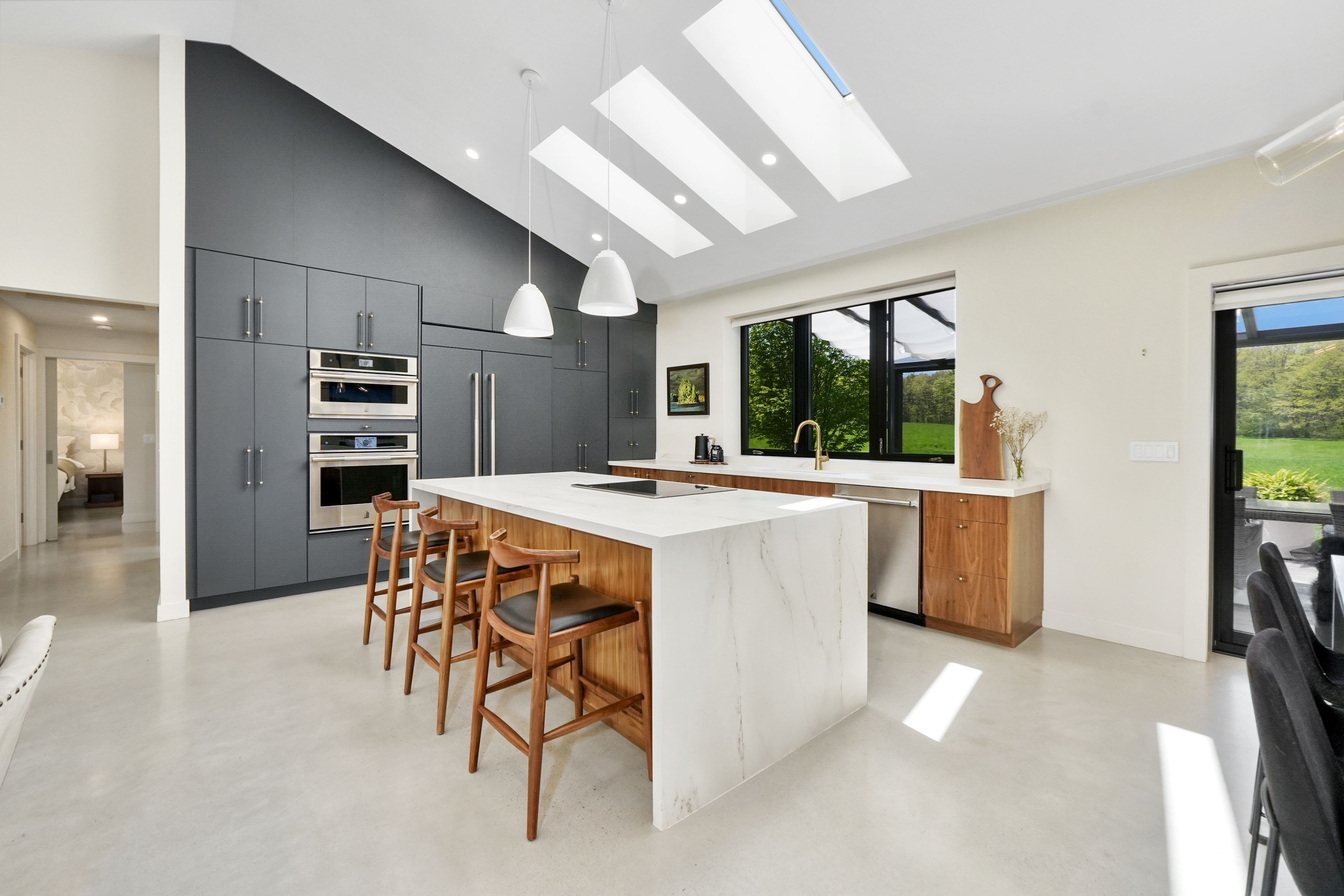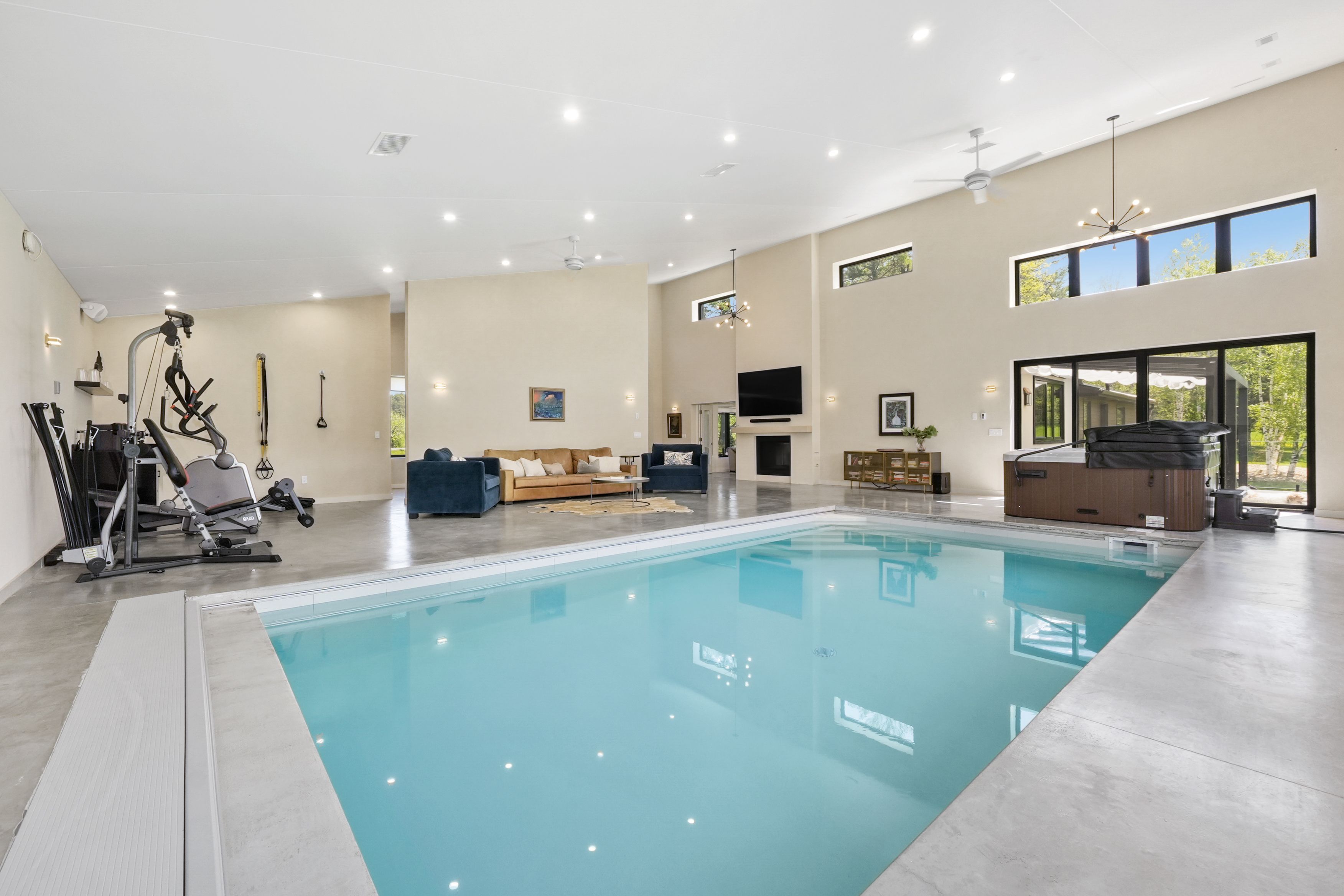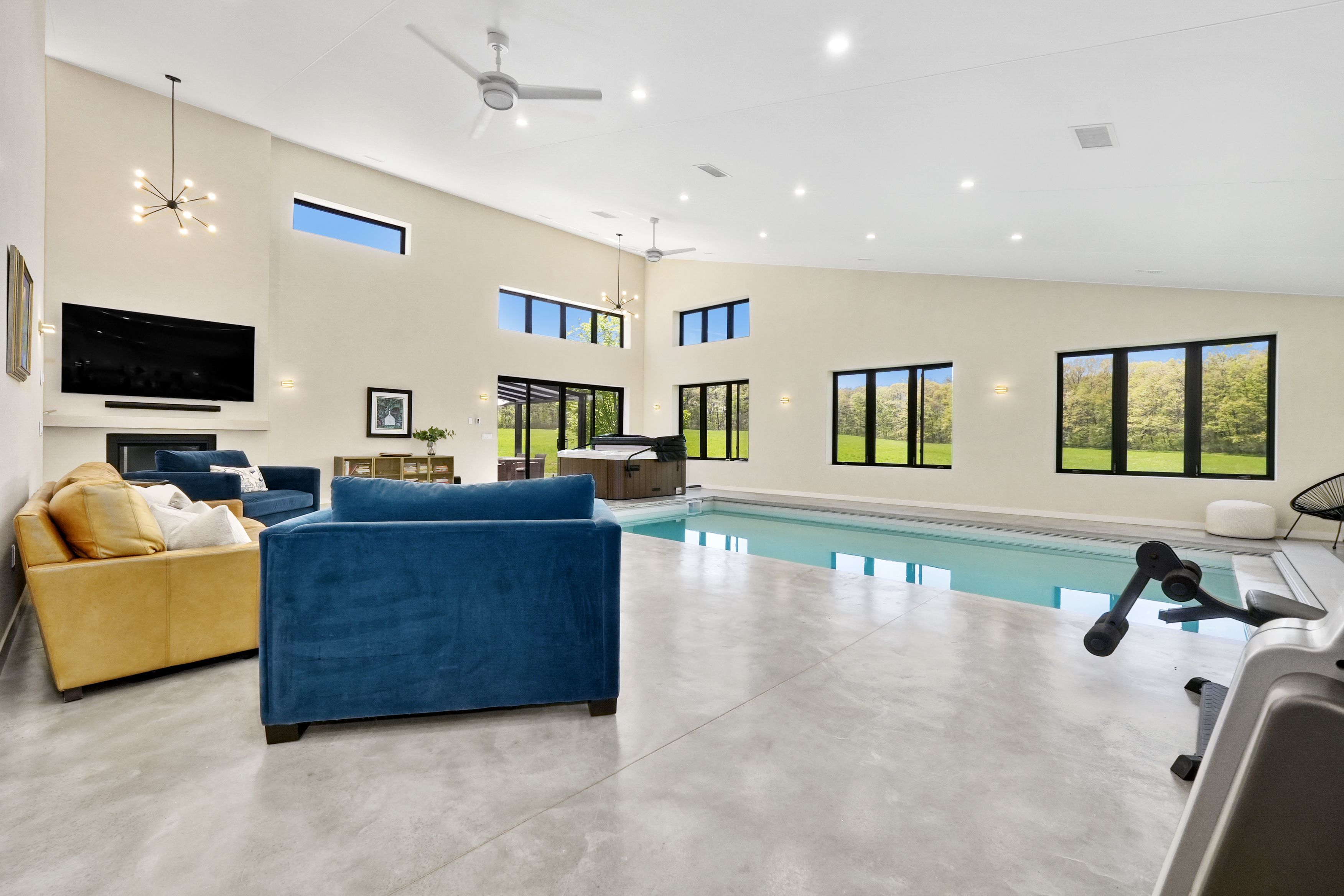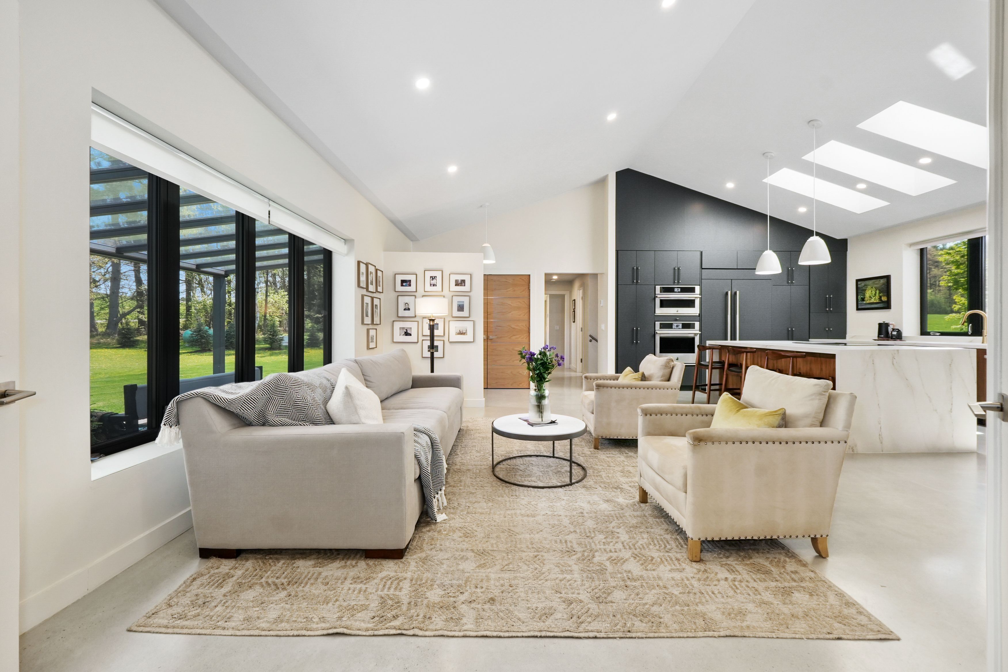 Set on a sprawling 23-acre estate, this striking modern residence exemplifies the perfect balance between contemporary elegance and rural serenity. Every detail has been thoughtfully curated, blending sleek architectural design with high-performance construction, including efficient icf walls and radiant heated concrete flooring. Step into a grand, open-concept living area defined by cathedral ceilings and a dramatic wall of windows. A double-sided napoleon propane fireplace anchors the space, connecting the living room to a sophisticated dining area adorned with modern lighting and walkout to the second-level deck ideal for outdoor entertaining. Sunlight pours into the kitchen through oversized windows and skylights, offering breathtaking views of the rolling countryside beyond and showcasing top-tier jenn-air appliances, striking dekton countertops and a waterfall island with a breakfast bar. Resort-style living awaits in the private attached oasis. A 14x24 heated indoor saltwater pool, soaring 20-foot ceilings, expansive windows, a hot tub, and space for a lounge or home gym create an oasis-like experience, ideal for year-round relaxation and entertaining. The primary suite is a tranquil retreat featuring a walk-in closet and spa-inspired ensuite with dual vanity, freestanding soaker tub, and glass shower enclosure with steam shower. An additional bedroom and two bathrooms round out the level. The finished lower level adds flexible living space, including a sprawling bedroom suite with sitting area, semi-ensuite bath, and walkout to a covered patio. A massive recreation room with a walk-in closet offers potential for a future fourth bedroom. Enjoy a lower covered patio area, fenced yard, and firepit area, perfect for summer nights under the stars. Additional highlights include a radiant heated 4-car garage and a 16x24 barn for versatile use. This one-of-a-kind property is the pinnacle of modern rural luxury. Just under 15 minutes to cobourg and highway 401.