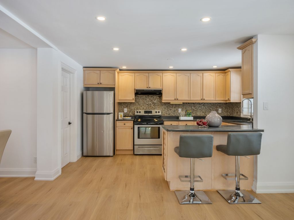 • Updated kitchen with custom backsplash and spacious living/dining areas.