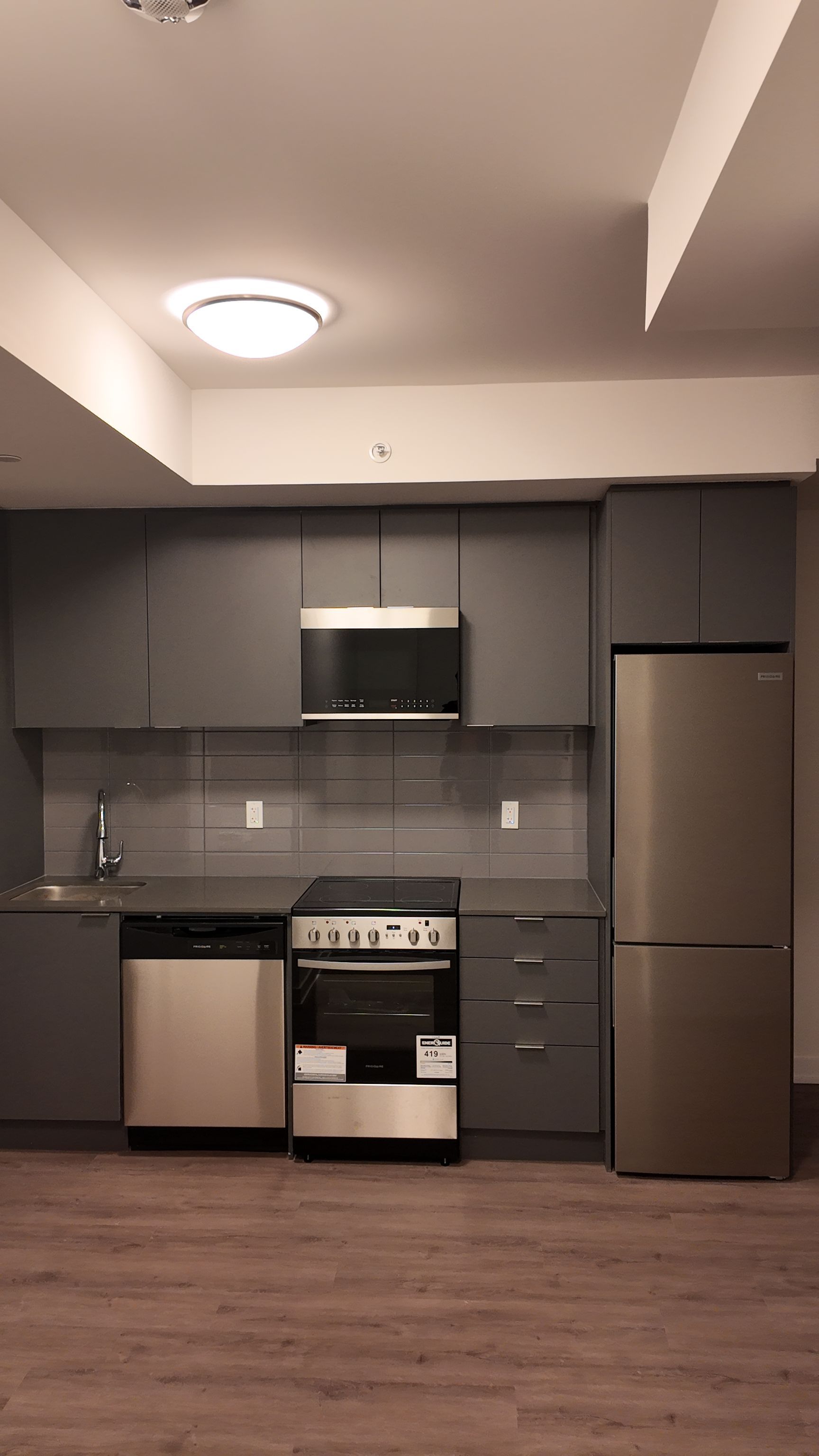 Bright and modern 1 bedroom + den suite featuring a smart, functional layout with open-concept living and dining area. The spacious primary bedroom offers comfort and privacy, while the separate den provides a perfect space for a home office or study. Contemporary kitchen with quality finishes flows seamlessly into the main living area, creating an ideal space for everyday living and entertaining. Enjoy a private terrace/balcony extending the living space outdoors. Conveniently located close to public transit, major highways, shopping, parks, and everyday amenities.