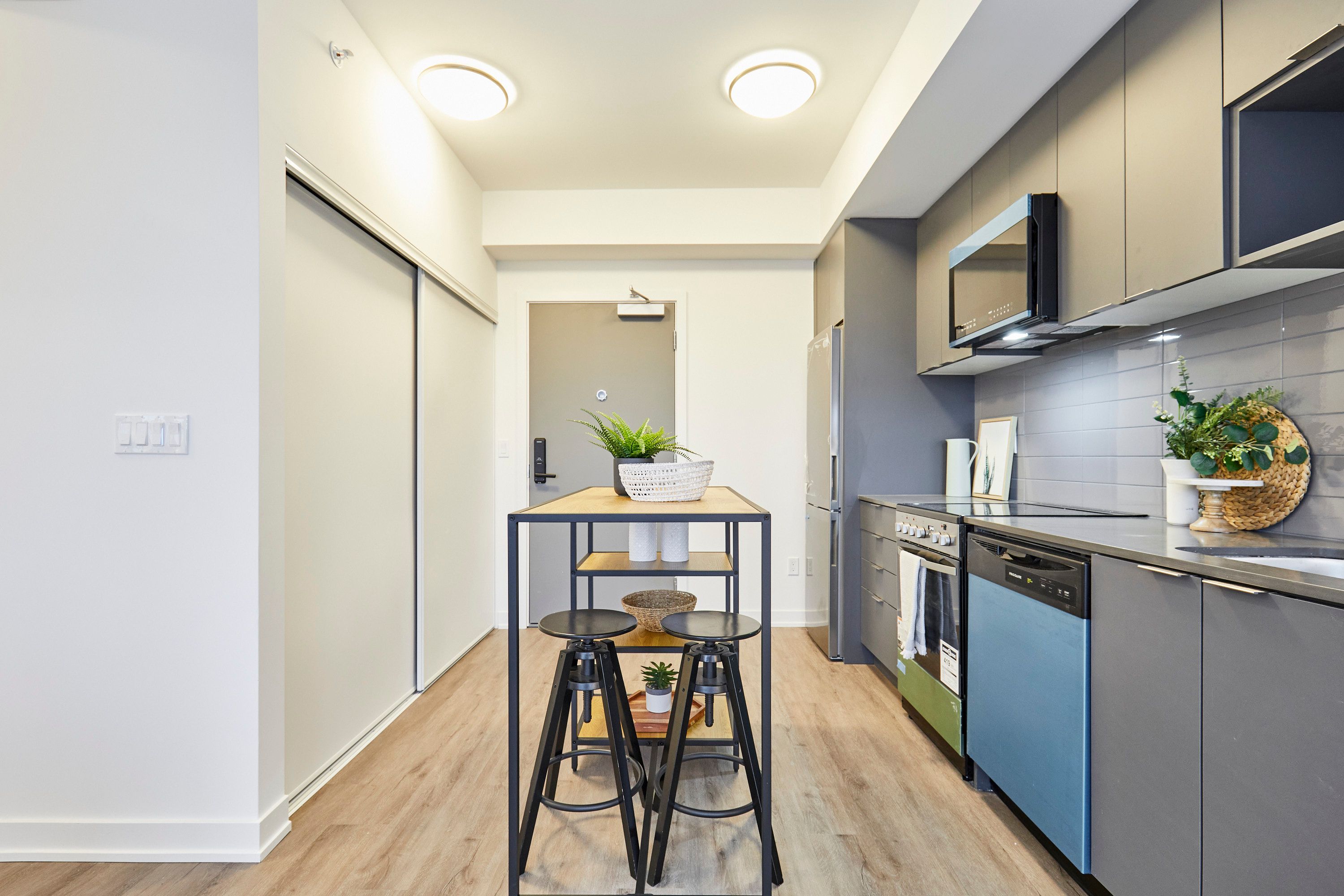 Brand-new 1+den with lake views at east pointe condos. Experience modern condo living at nature's doorstep in the growing west hill community. This south-facing suite offers stunning, unobstructed lake views from both the living area and the primary bedroom-bringing natural beauty into everyday living. The thoughtfully designed layout features 9-foot ceilings, contemporary finishes, and abundant natural light, along with a private terrace walkout from the main living area. The modern kitchen is equipped with quartz countertops, stainless steel appliances, a slide-in range, ceramic tile backsplash, and soft-close cabinetry, combining style with everyday functionality. The primary bedroom also enjoys its own walkout to the terrace, while the separate den provides an ideal work-from-home space. East pointe is smart-home ready through the mutual home connect app, allowing residents to control temperature, receive alerts, book amenities, and stay updated on building news directly from their phone. Residents also enjoy access to premium amenities including a fitness centre, co-working lounge, party room, landscaped outdoor social spaces with bbq areas, and a pet wash station. Located minutes from u of t scarborough, parks and trails, transit, the go station, and major highways, this location offers excellent connectivity while being surrounded by green space and the lake. A truly stylish and connected opportunity in one of scarborough's fastest-growing communities.