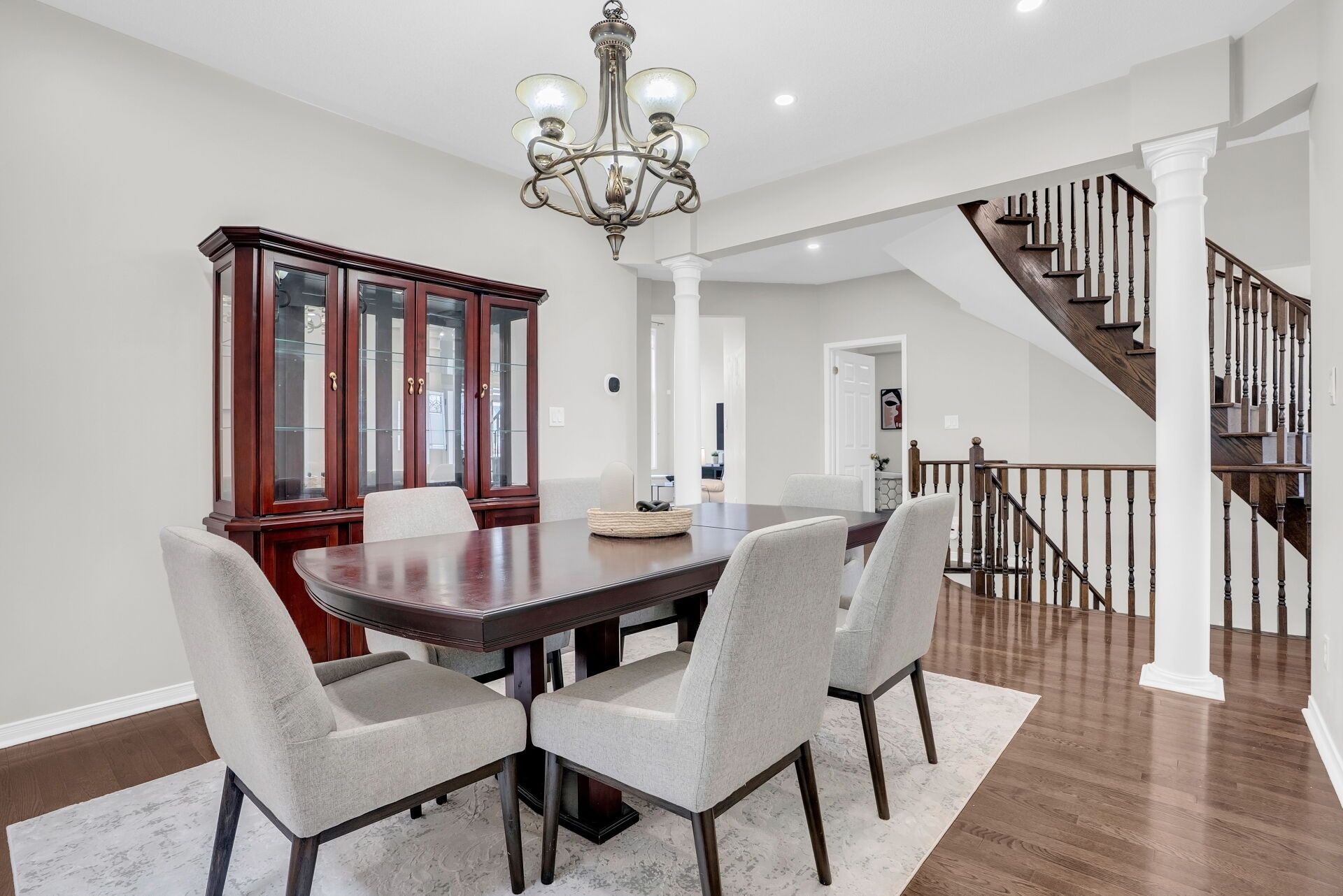Absolutely stunning detached home on a premium 45 x 106 ft lot in the highly desirable east credit community, offering 4+2 bedrooms, 4. 5 bathrooms & a professionally finished basement, this home provides exceptional space and functionality for modern family living. Impressive curb appeal with stamped concrete and exterior pot lights enhances the front, side, and backyard, along with a well-maintained yard and driveway parking for 3+ vehicles. The inviting entrance opens to a spacious layout with fresh paint, pot lights throughout & hardwood flooring on the main level and upper hallway. Formal living and dining rooms provide elegant entertaining space, while the open-to-above family room features oversized windows and abundant natural light. The open-concept kitchen includes quartz countertops, a stylish backsplash, breakfast bar, ample cabinetry, and stainless steel appliances. The breakfast area offers a walkout to a large fenced backyard with a bbq gas line, ideal for entertaining. Main floor laundry for convivence. A spiral hardwood staircase leads to 4 generously sized bedrooms. The primary suite features walk-in his and her closets and a spa-like 5-piece ensuite. The second bedroom includes a private 4-piece ensuite, while the remaining bedrooms share another full bath. The finished basement offers a 2-bedroom apartment with kitchen, 4-piece bath, recreation space, and pot lights, ideal for extended family or rental potential. Additional features include 200 amp panel, zebra blinds throughout, hikvision 4k security system, alarm, smart doorbell, ubiquiti wifi, water softener, reverse osmosis system, humidifier, and bidets. Located near heartland town centre and square one shopping centre, with easy access to top schools, parks, transit, and highways 403 & 401. A rare opportunity to own an exceptional home in one of mississauga's most desirable neighbourhoods.