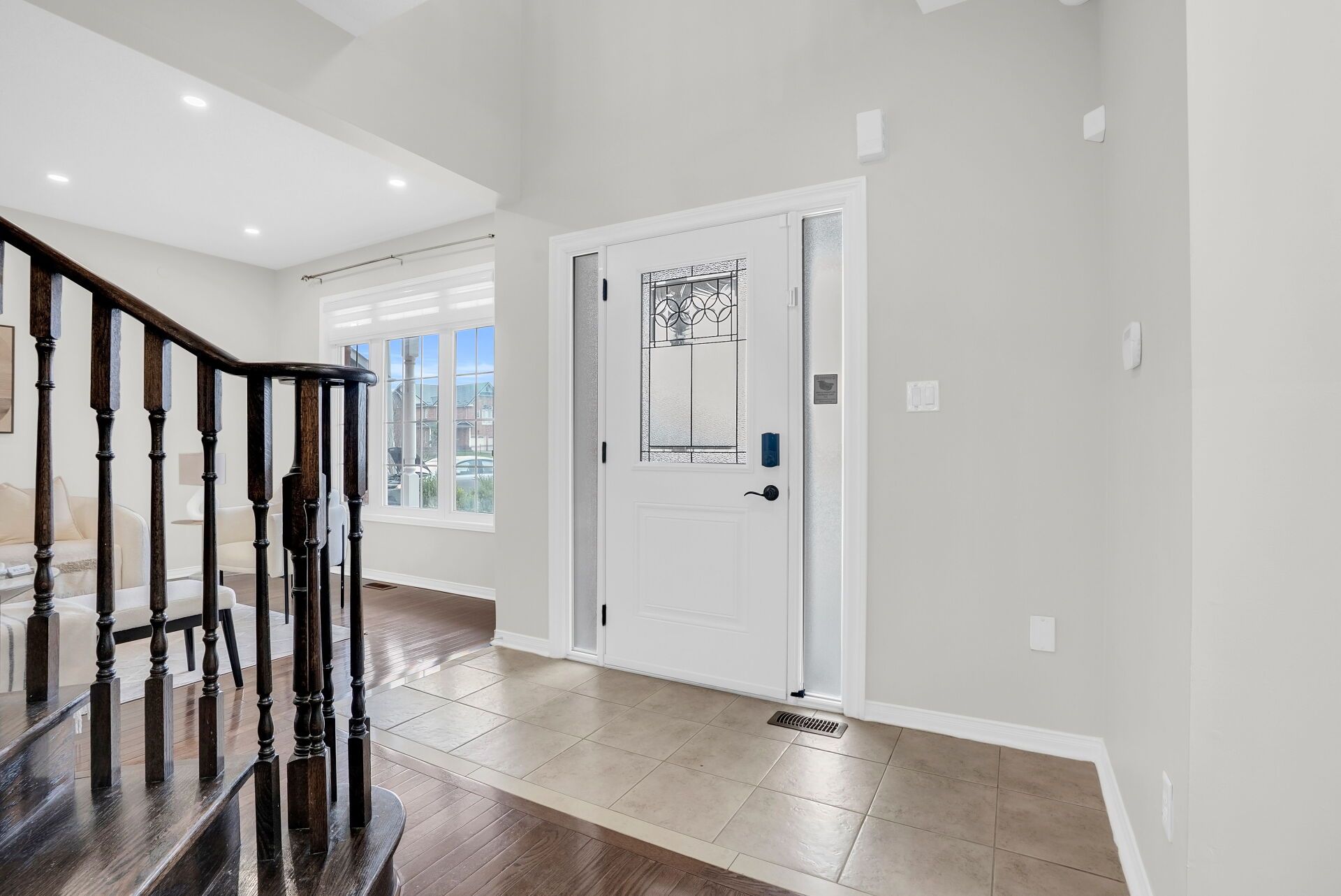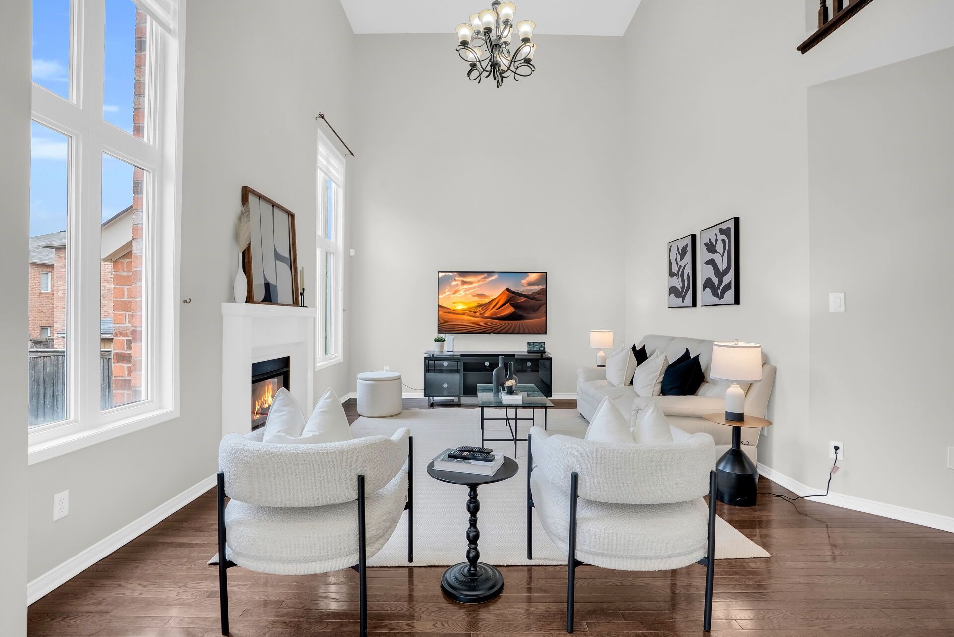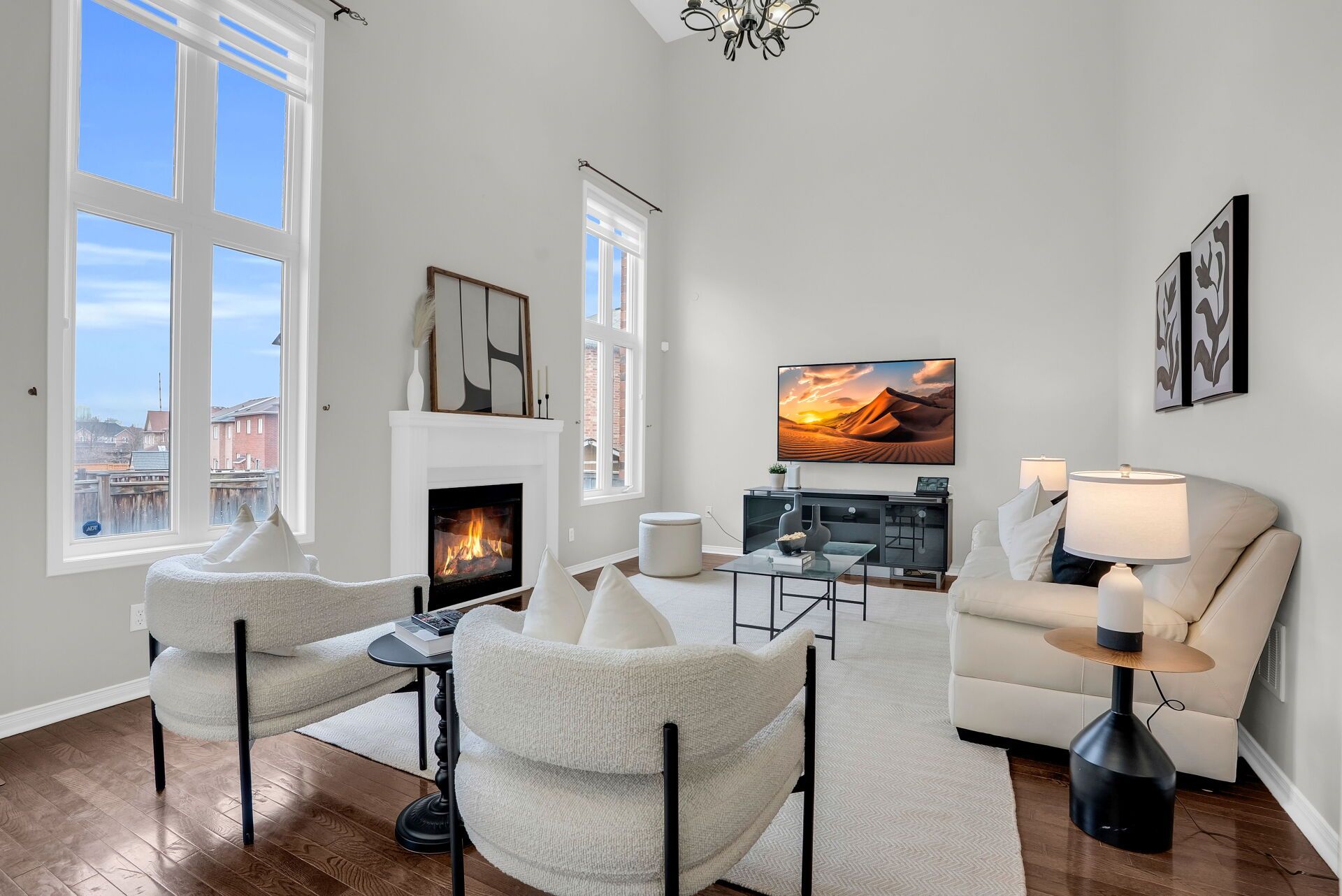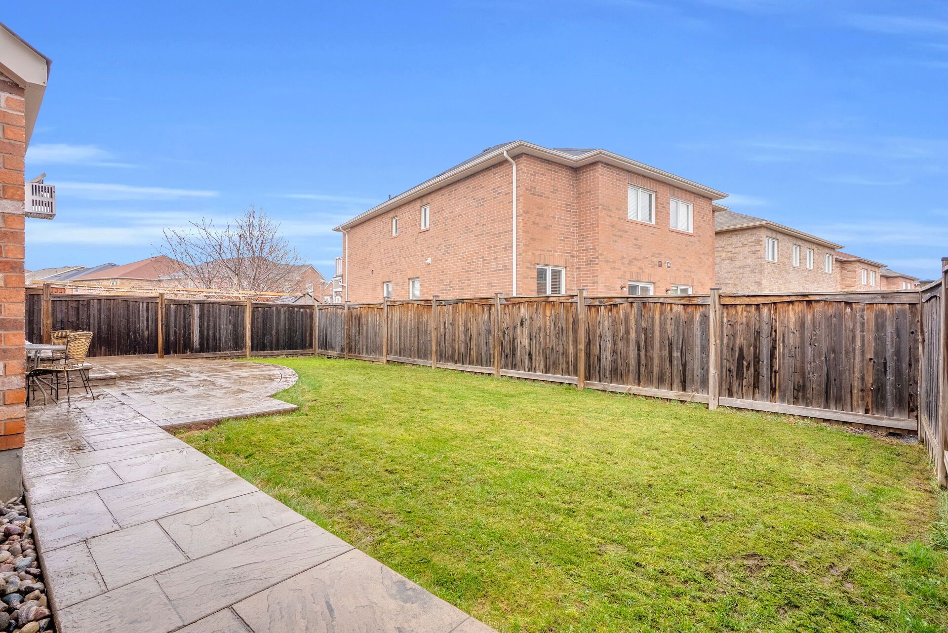 • Open-concept kitchen with modern finishes and a walkout to a large backyard.