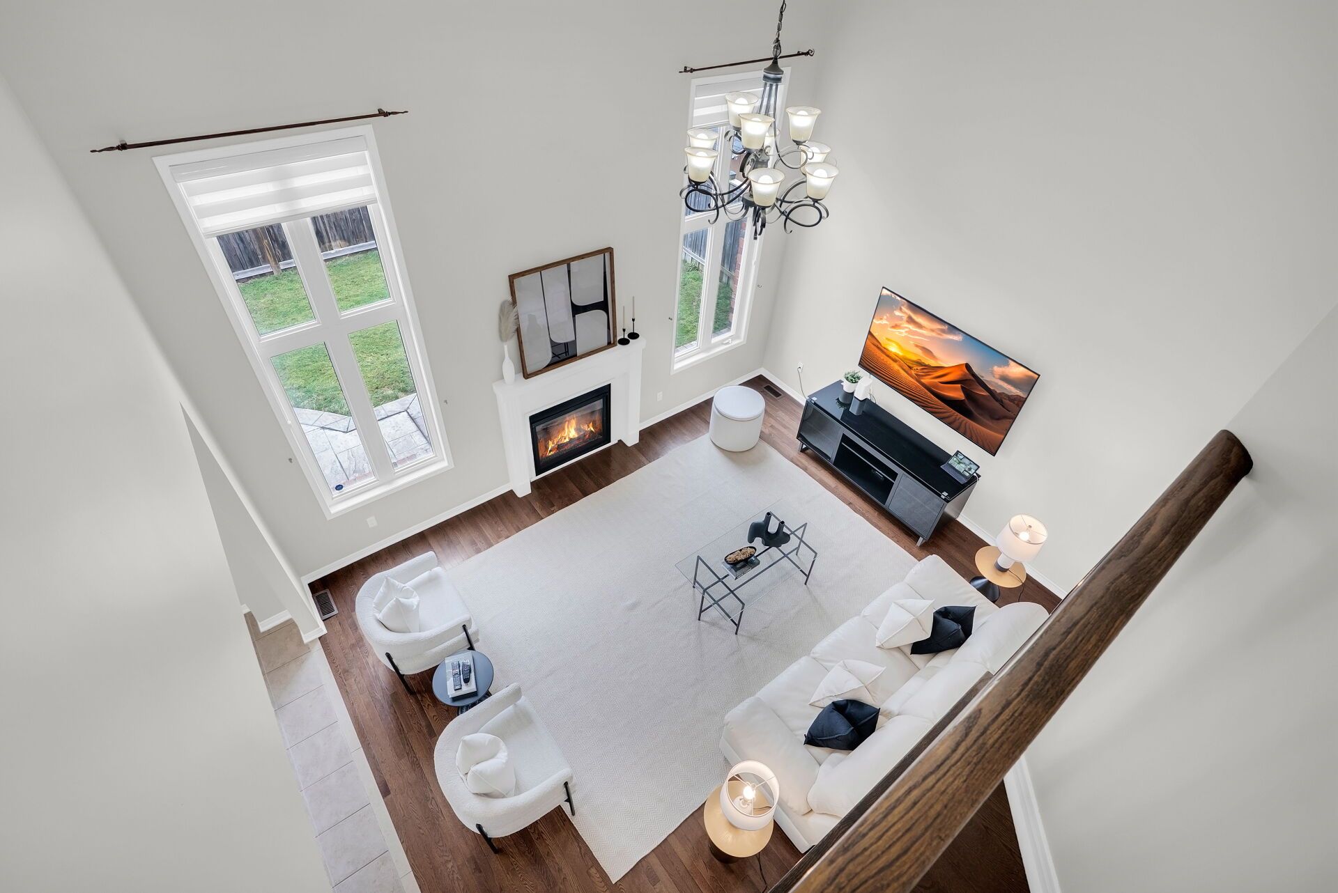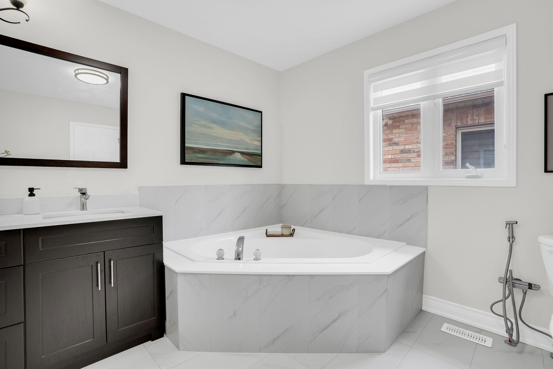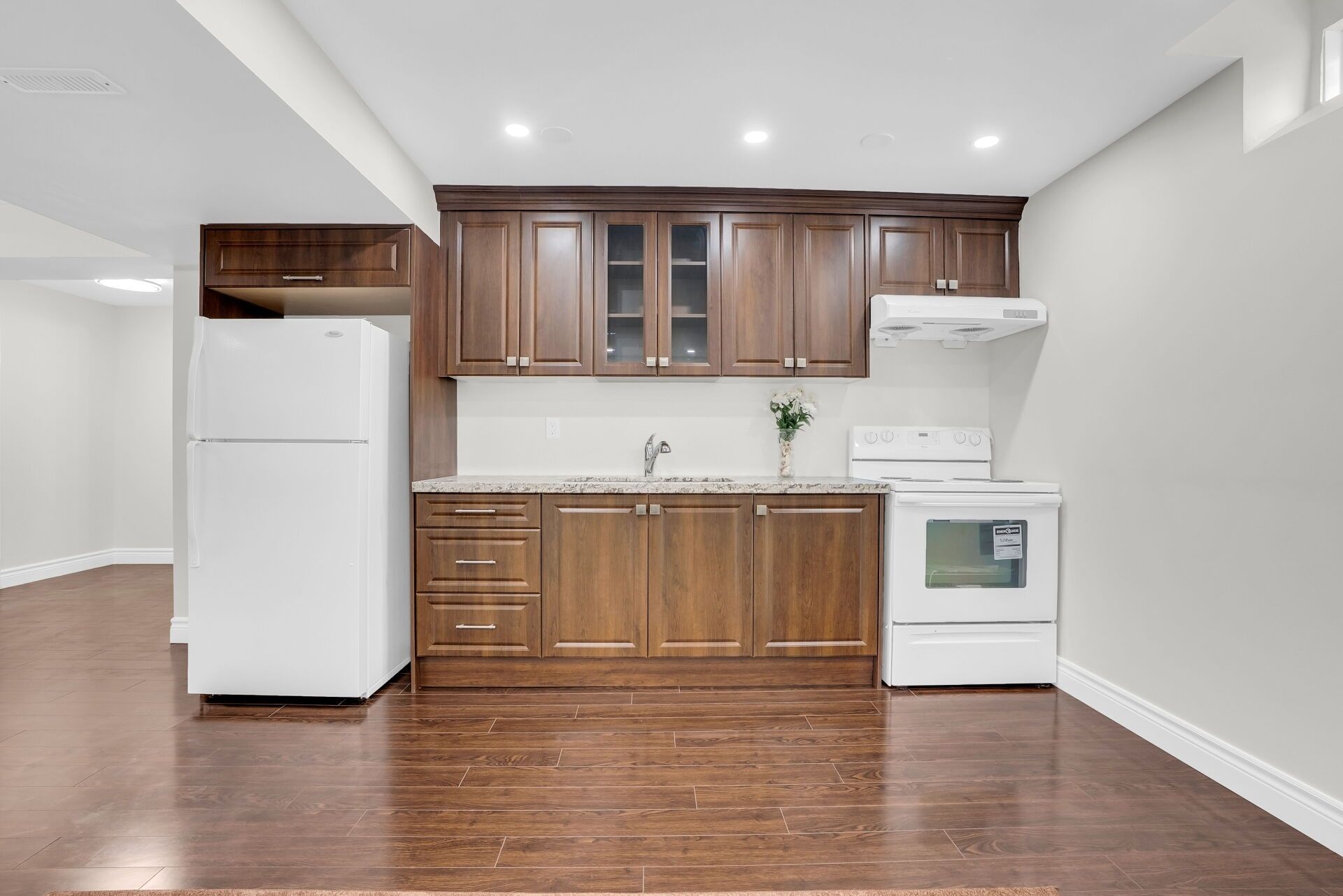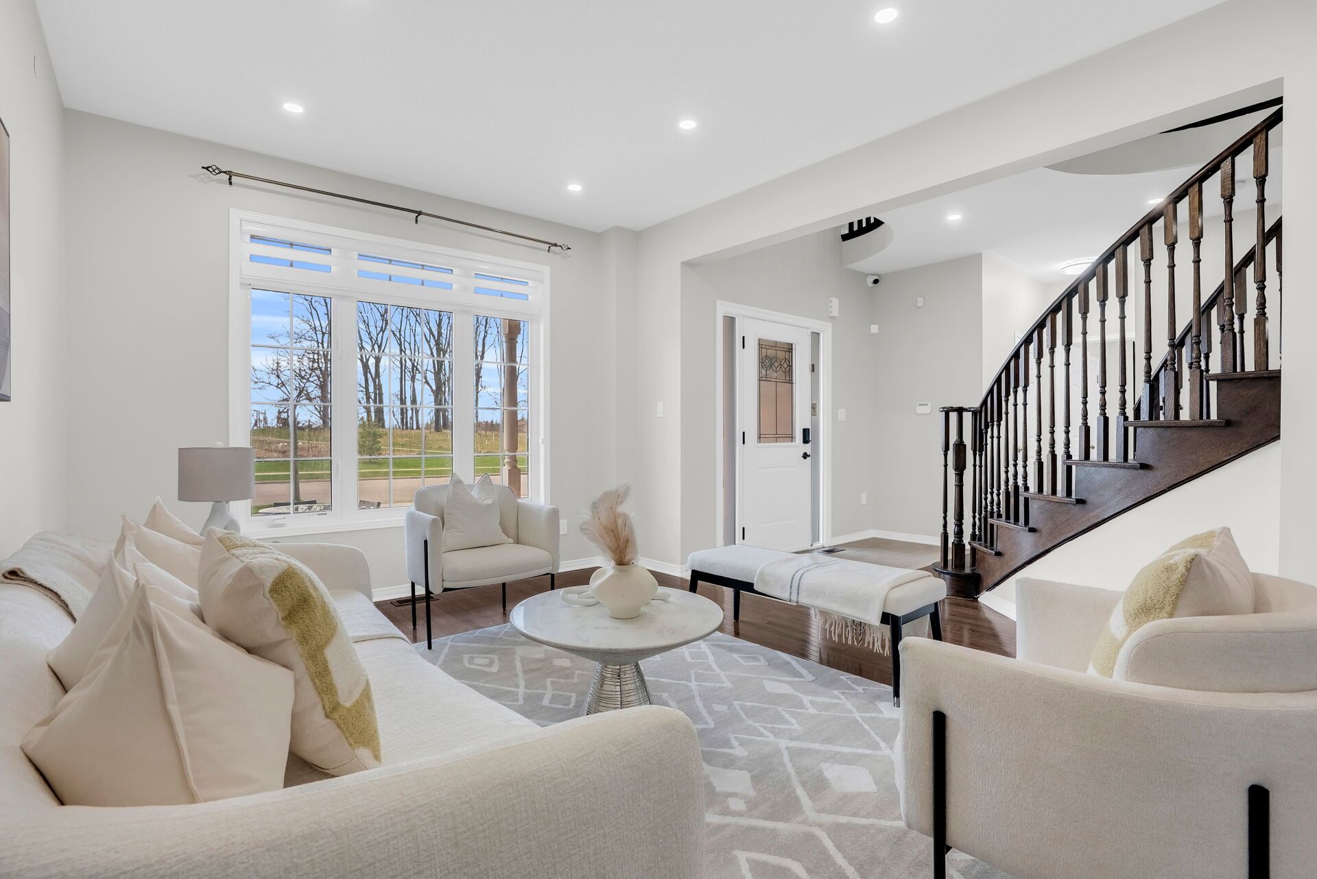 • Open-concept kitchen with modern finishes and a walkout to a large backyard.