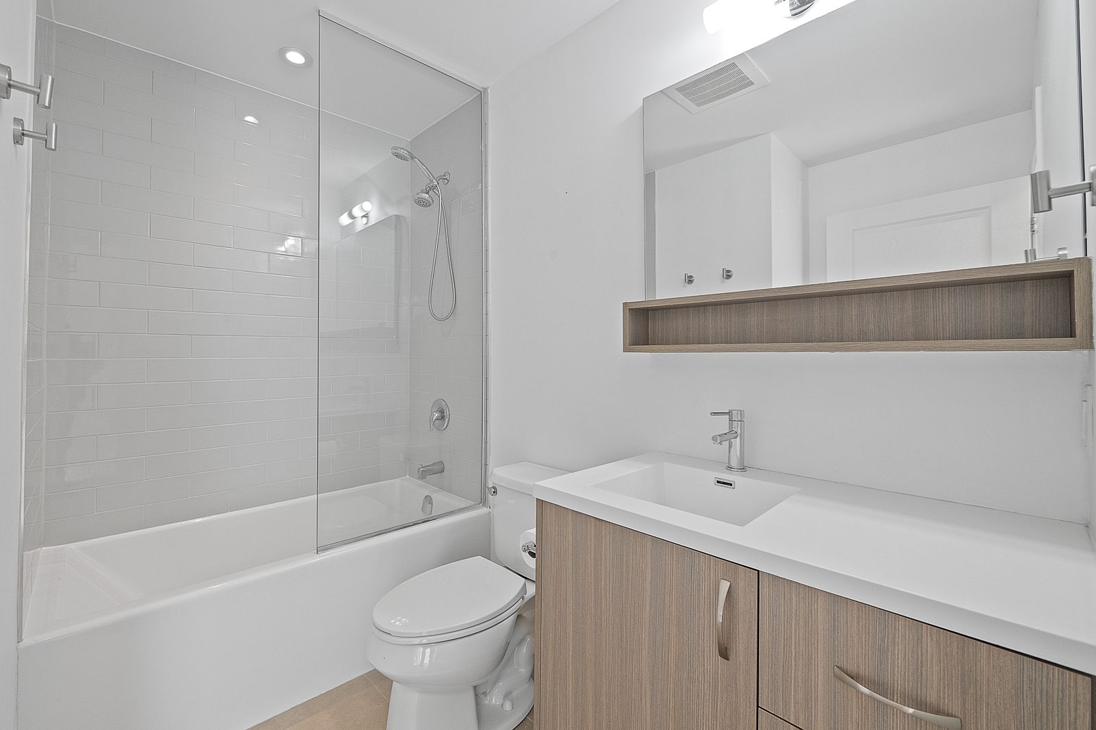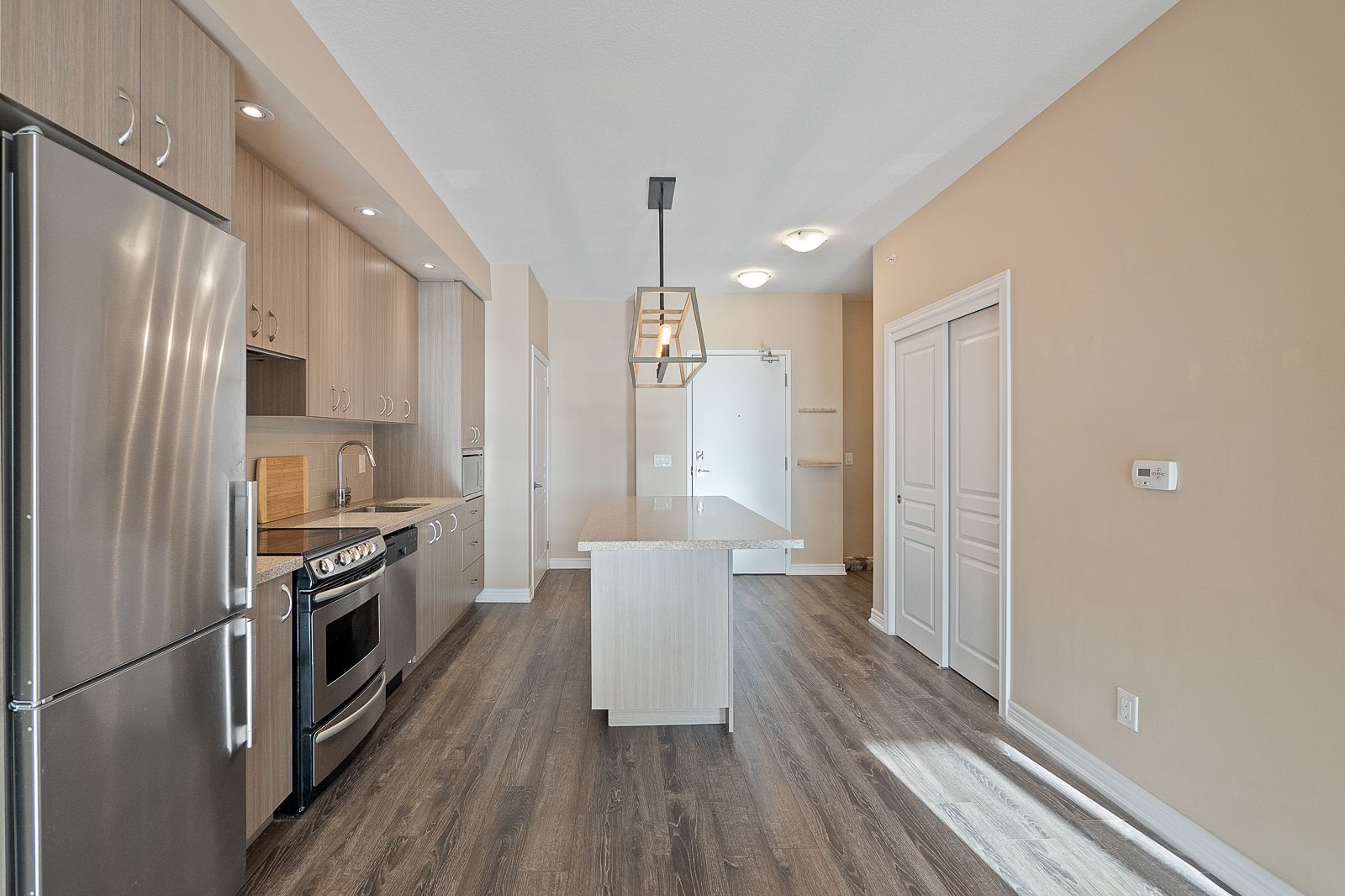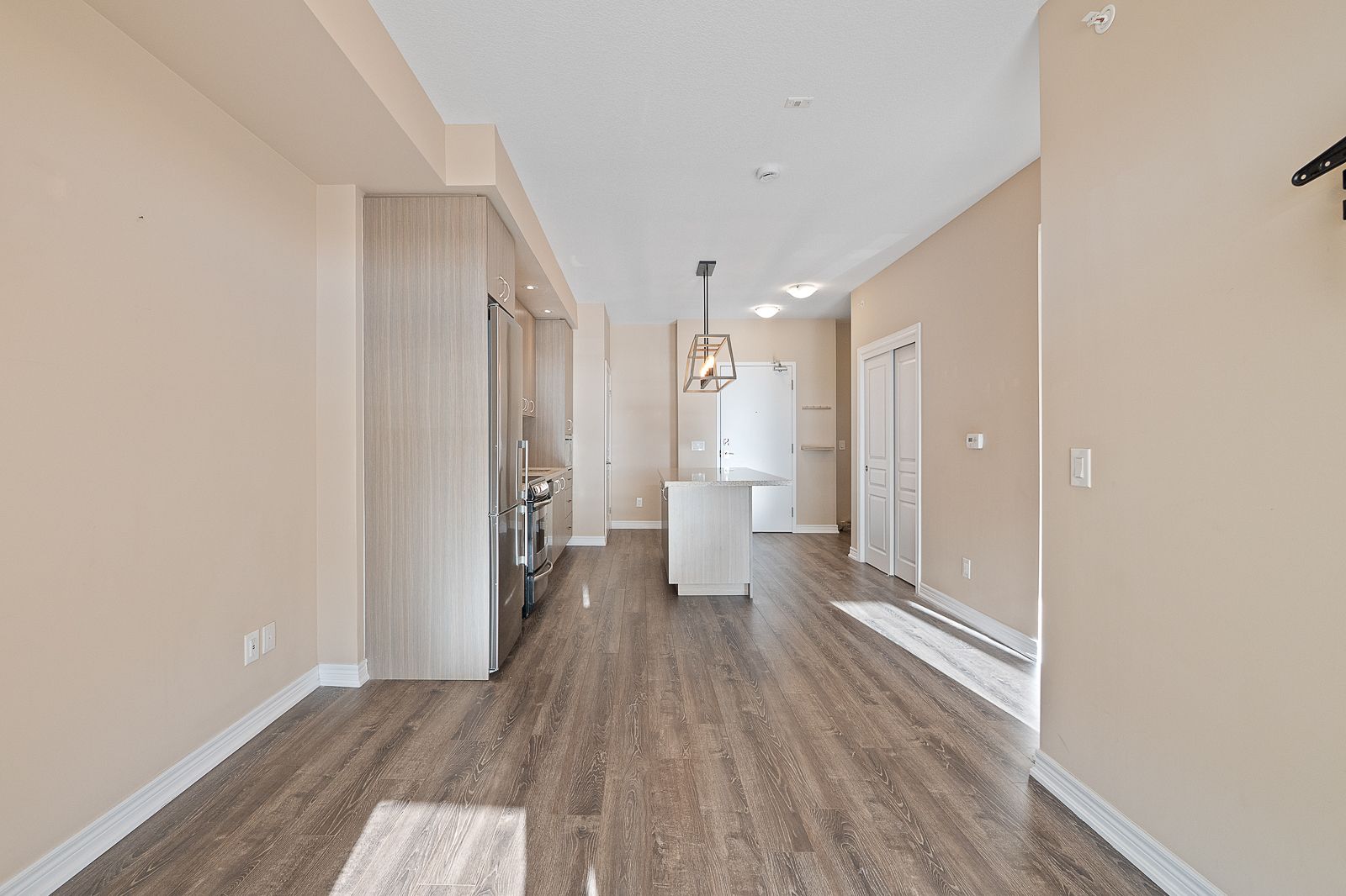 • Spacious open-concept layout with 9-ft ceilings and large windows.