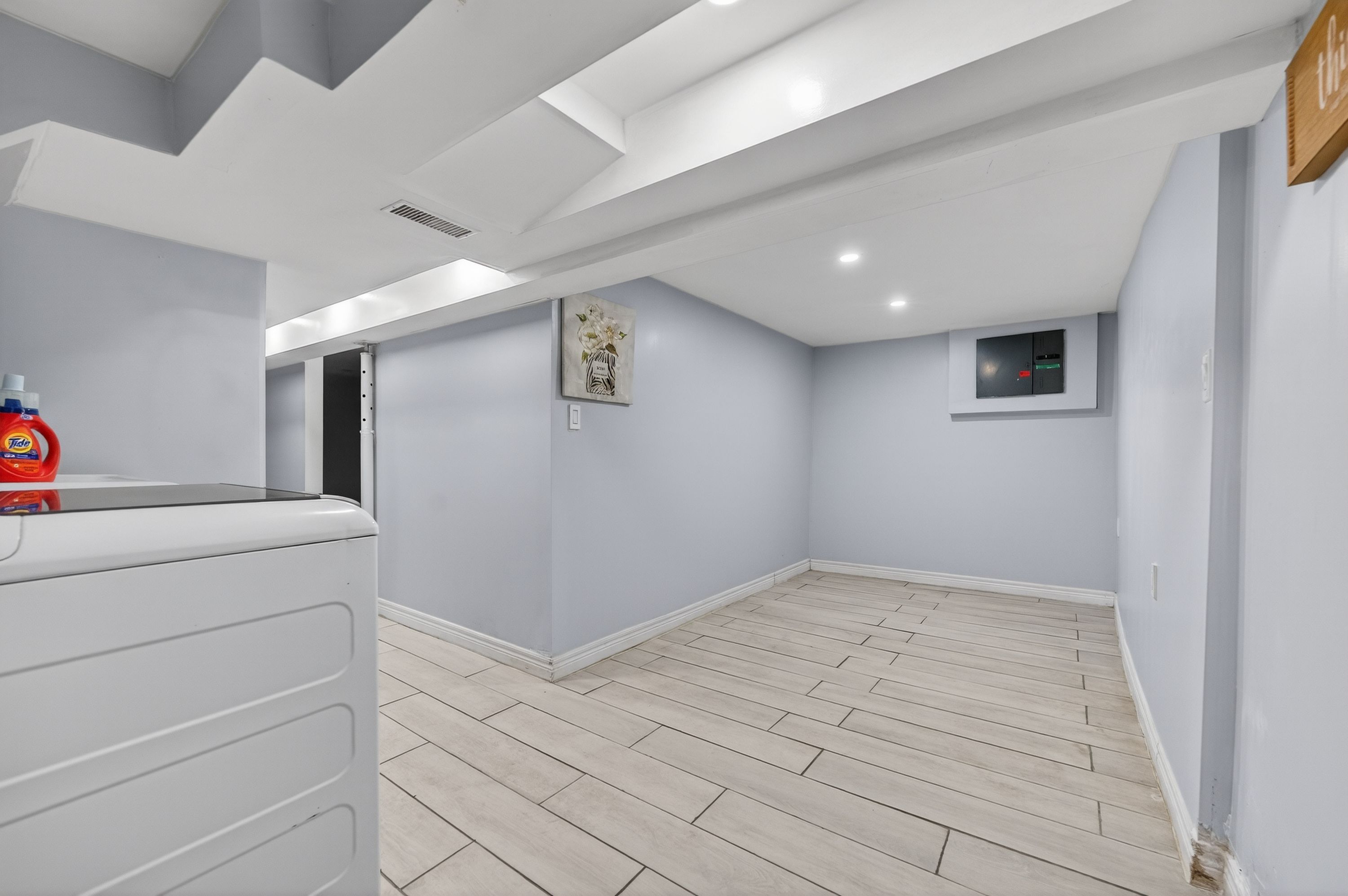 • Finished basement with additional bedroom and office space.