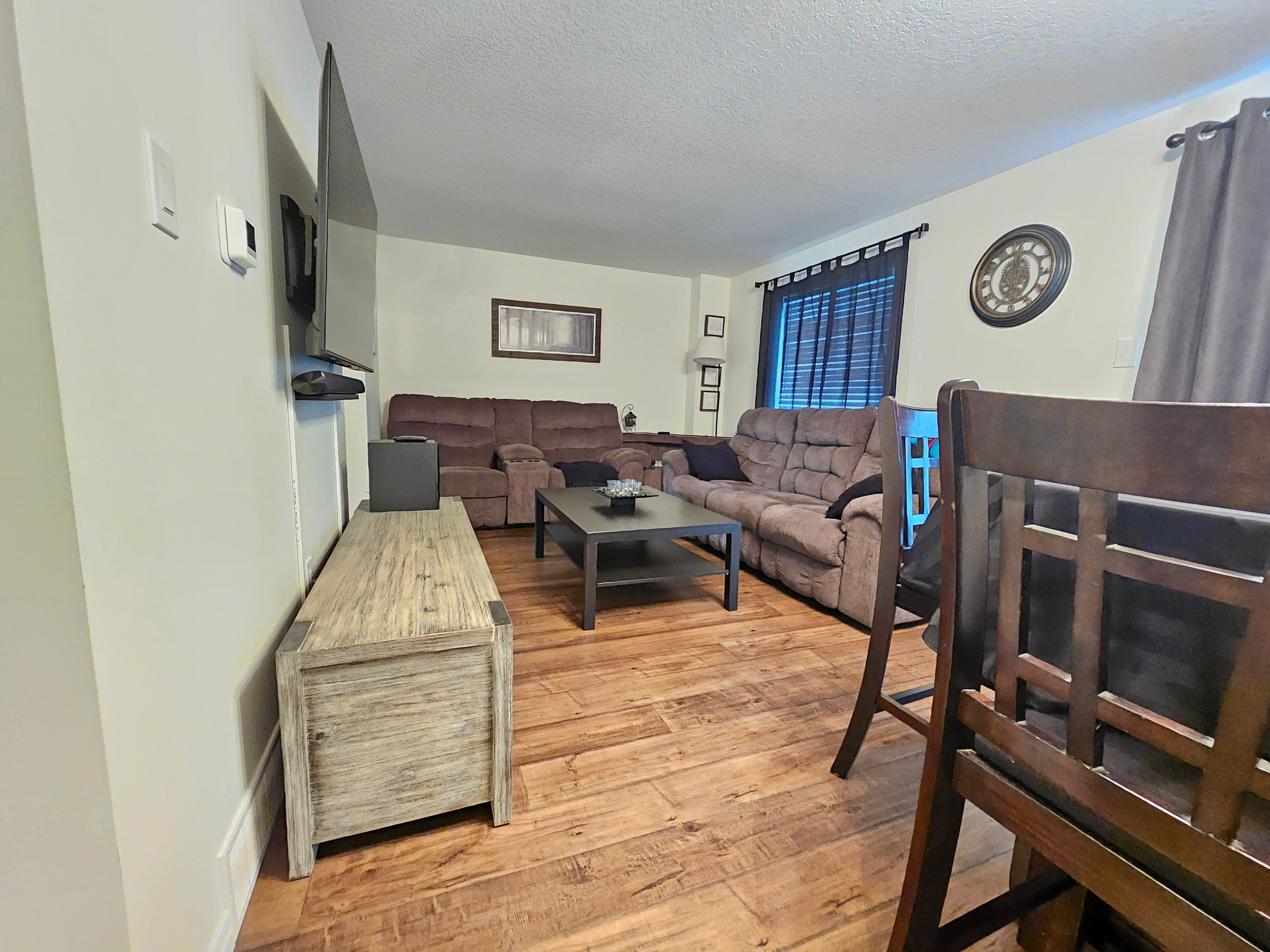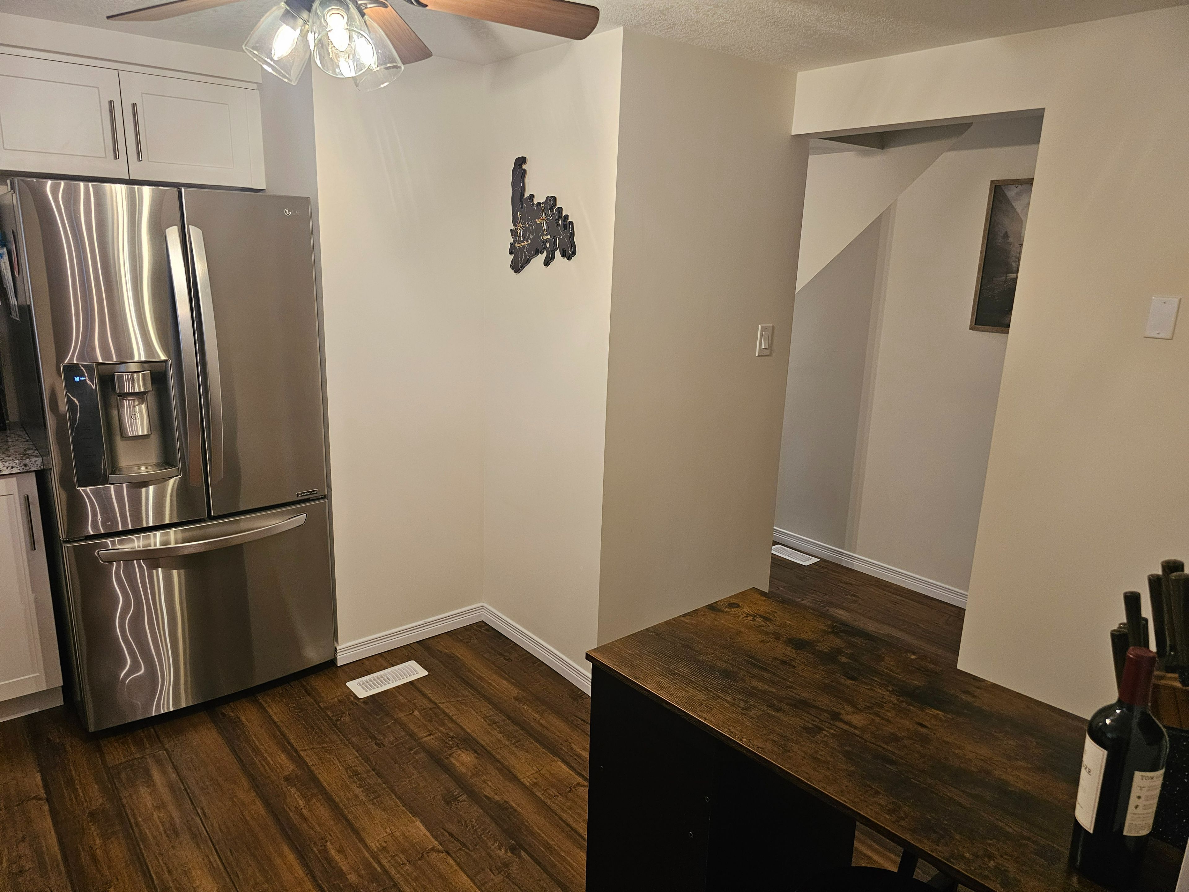 Welcome to this charming and budget friendly home located in the sought-after grand river north neighbourhood. Perfect for first time buyers. This well maintained property is ready for you to move in and enjoy. The exterior features a spacious double driveway and a cozy front porch, offering a great spot to unwind. Inside the kitchen is designated for funcationality with generous counter space, ample cabinetry, a stylish backsplash and all essential appliances included. Natural light fills the inviting living area, highlighted by a large window overlooking the private, fenced backyard ideal for families and pet owners. The open concept layout connects the living and dining spaces with easy access to a multi-level deck thats perfect for hosting and gatherings. On the main floor, you'll also find a convenient powder room and direct entry to the garage. Upstairs, the primary bedroom offers plenty of space along with a wide closet , while two additional bedrooms provide flexibility for family, guests or a home office. The modernized full bathroom has been updated with a practical and easy to maintain design. The finished lower level addes extra living space, perfect for recreation or relaxation, along with a large laundry and storage area. Washer and dryer are included for your convenience and great value. Don't miss out on this excellent opportunity.