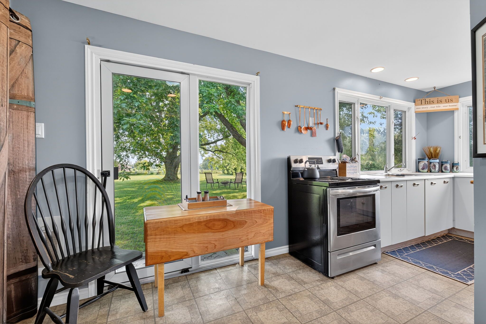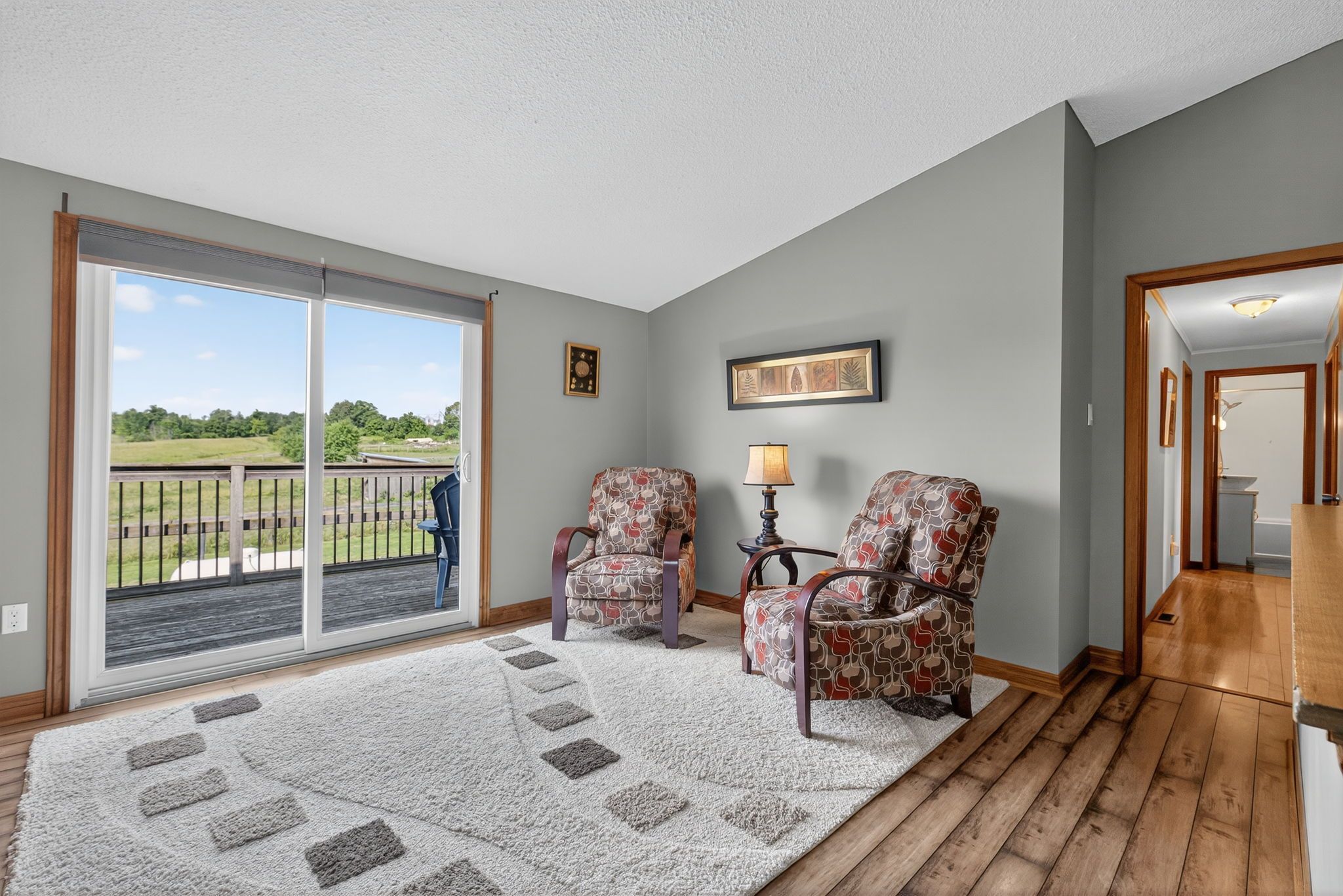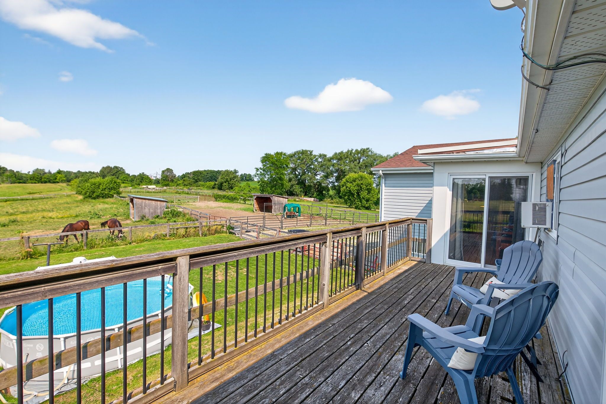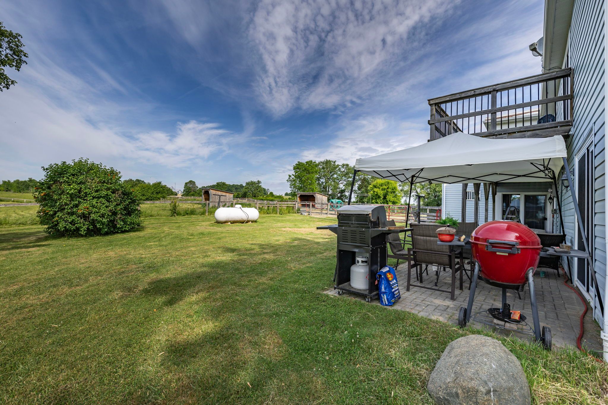 • Outdoor patio and private deck offer stunning countryside views.