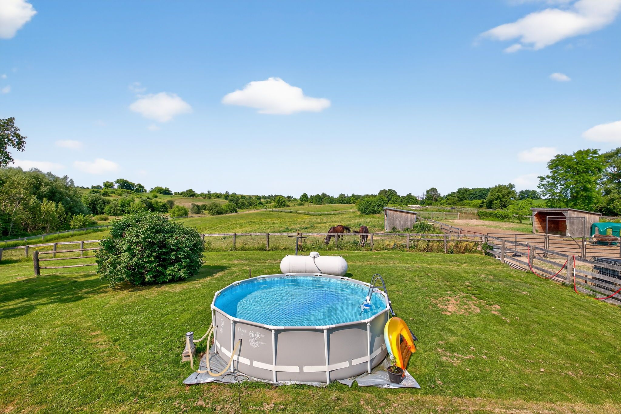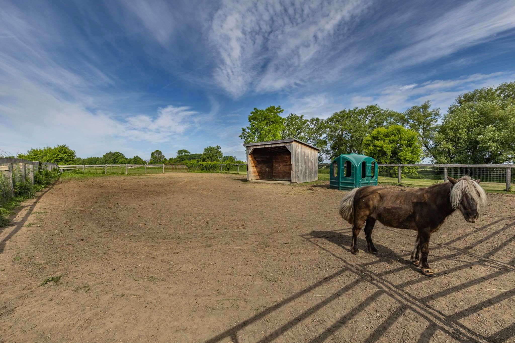 • Almost 20 acres of scenic land with fenced paddocks and trails.