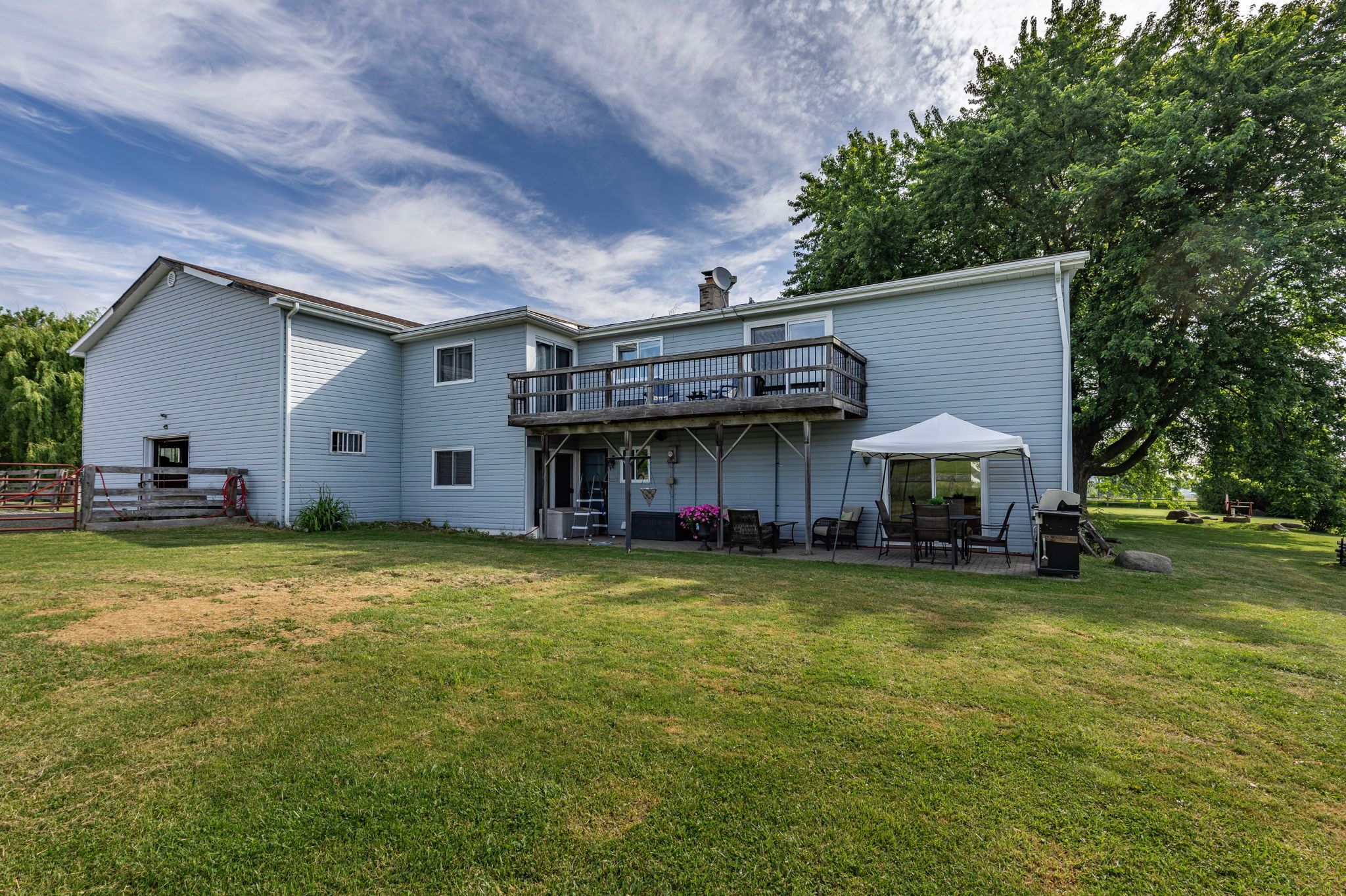 This beautifully updated equestrian hobby farm blends privacy, space and country charm just 7 mins from alliston. Set on almost 20 scenic acres w/ 4 fenced paddocks, groomed trails, and a 64x180 outdoor riding ring, its a dream property for horse lovers and outdoor enthusiasts alike. The 5-stall barn plus tack room has been completely redone on the interior, including premium system fencing stalls & custom insulated dutch doors. Lovingly maintained and upgraded, this unique barn also has an untapped 30x50 1,500 sqft hayloft or left to your imagination, the perfect studio or recreation room the opportunity here is endless. The 4bed, 2bath home offers character and function, starting w/ a large foyer and laundry/utility room w/ access to the barn. The main floor includes a nanny suite or office with 3pc bath and bar area. The country kitchen takes advantage of the most magical outdoor views, while the cathedral ceilings offer brilliant natural light & character. Cozy up to your wood burning fireplace, step outside onto the patio to take in the rolling views of your countryside or curl up on the covered front porch with your morning coffee, set back off the quiet paved road. Upstairs, the spacious primary suite features a walkout to a private deck, plus a loft-style living room with second walkout. Outdoors, enjoy apple trees, forested acreage & additional acreage perfect for roaming, entertaining, or for your very own hay fields. Other additions & features to this property includes a mennonite-built shed for tools or equipment, regraded driveway, detached 2car garage, two movable mennonite-built horse shelters & is hydro run behind the barn, ideal for future expansion. So many thoughtful updates throughout reflect the care & vision behind this unique property. Just 15 mins from palgrave, 50 mins to pearson & steps from sheldon creek dairy this is rural living w/o compromise. Live, ride & grow in an unmatched setting this is the lifestyle you've been waiting for.