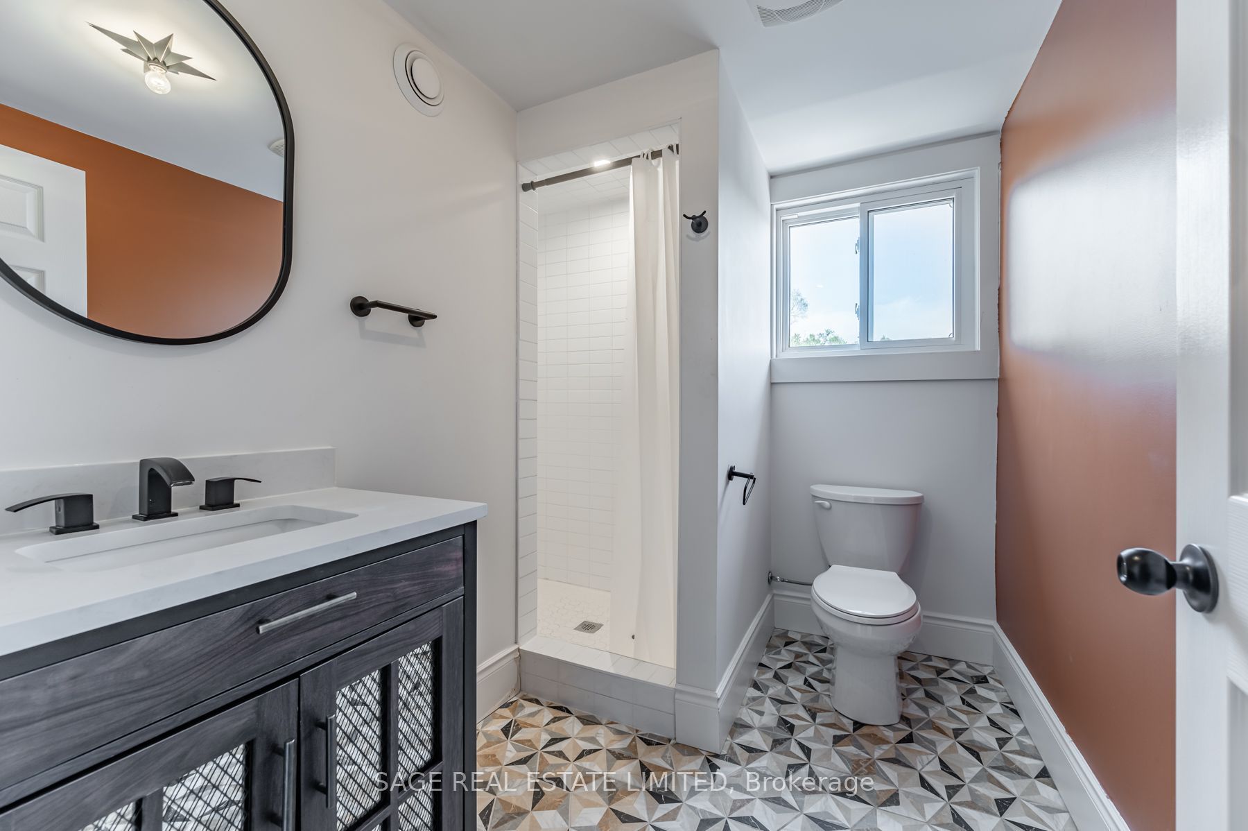 • Clean, updated bathroom with walk-in shower and vanity.