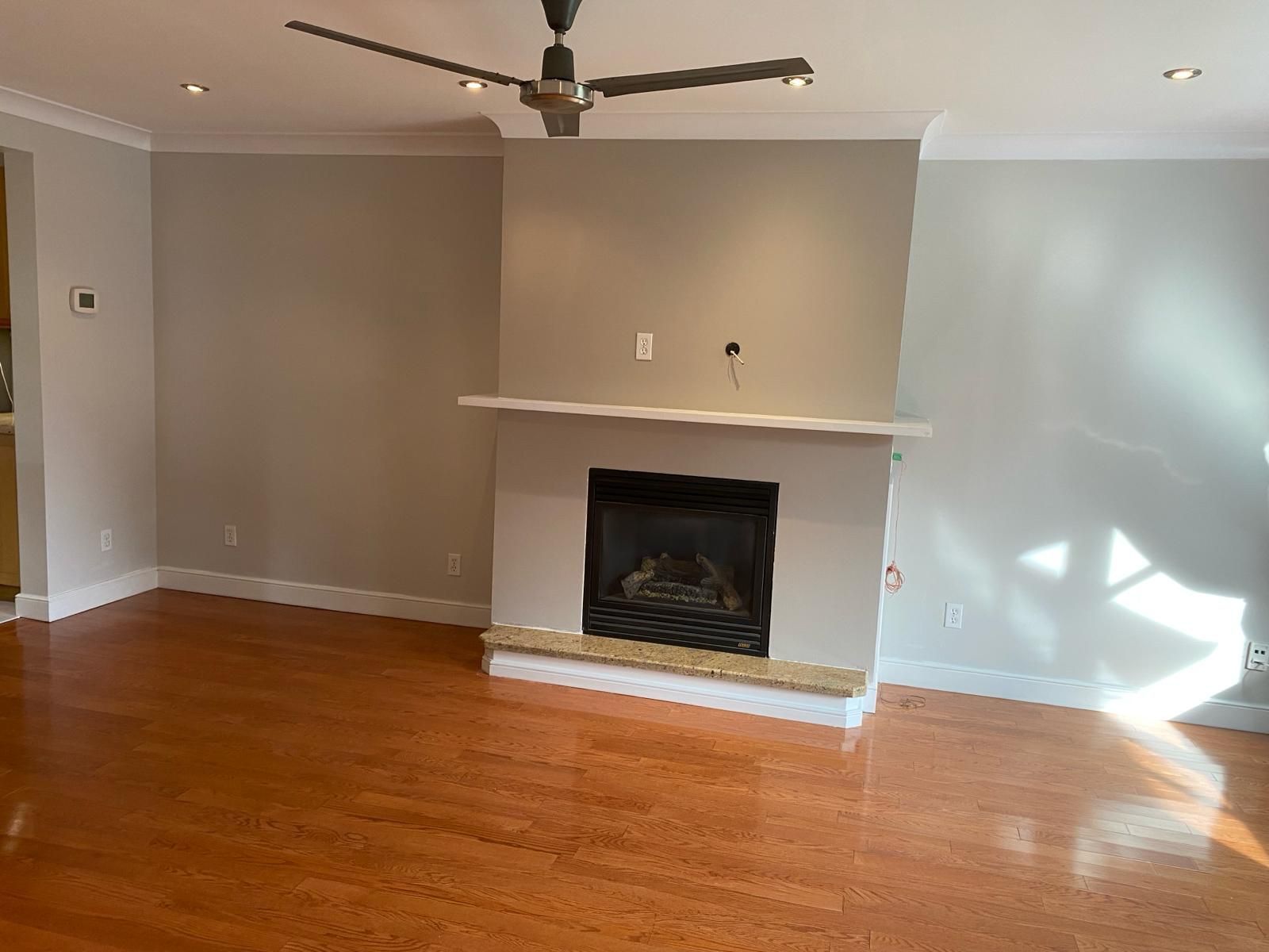 • Bright open-concept living and dining area with natural light and hardwood floors.