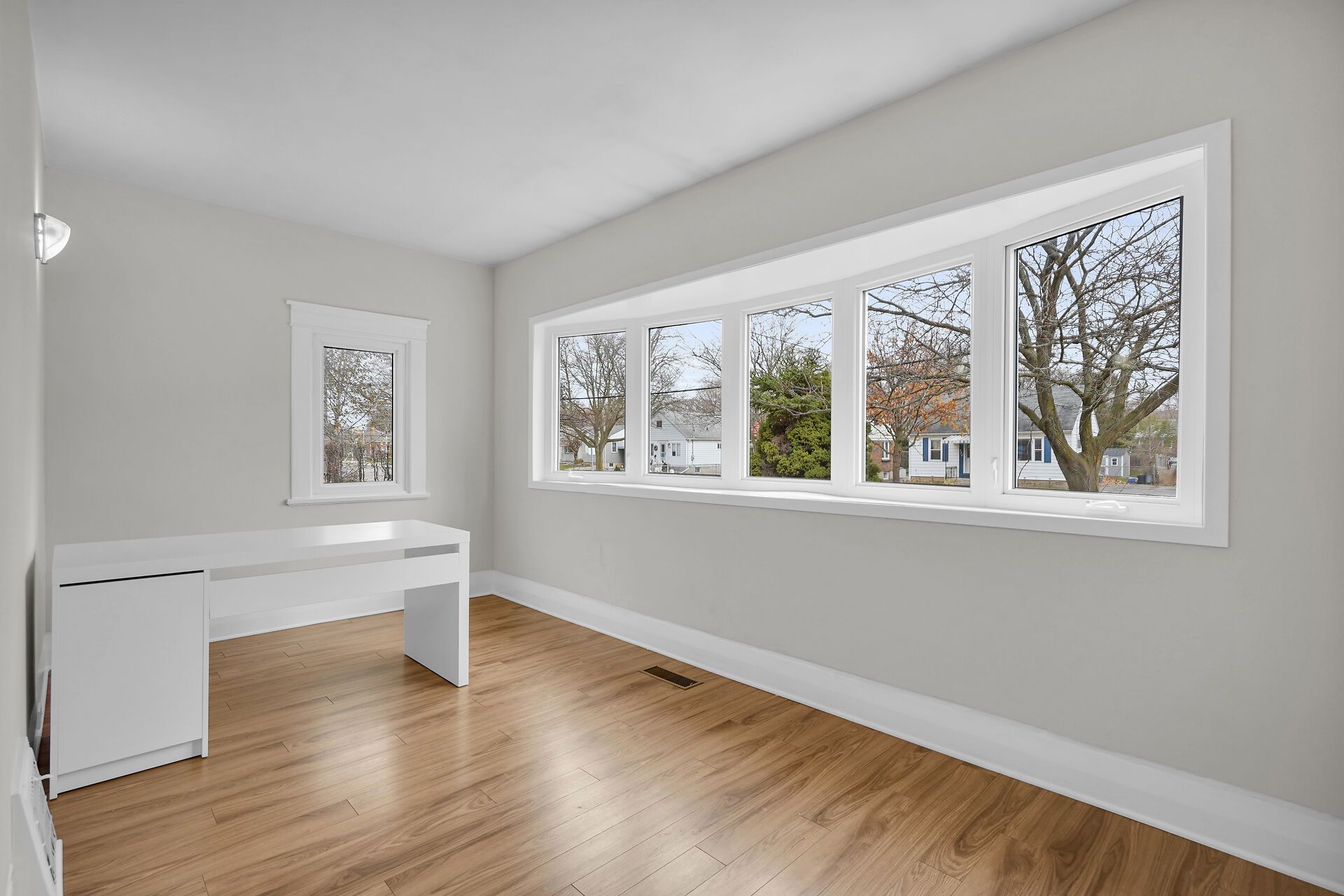 • Five bedrooms and two full bathrooms for ample room.