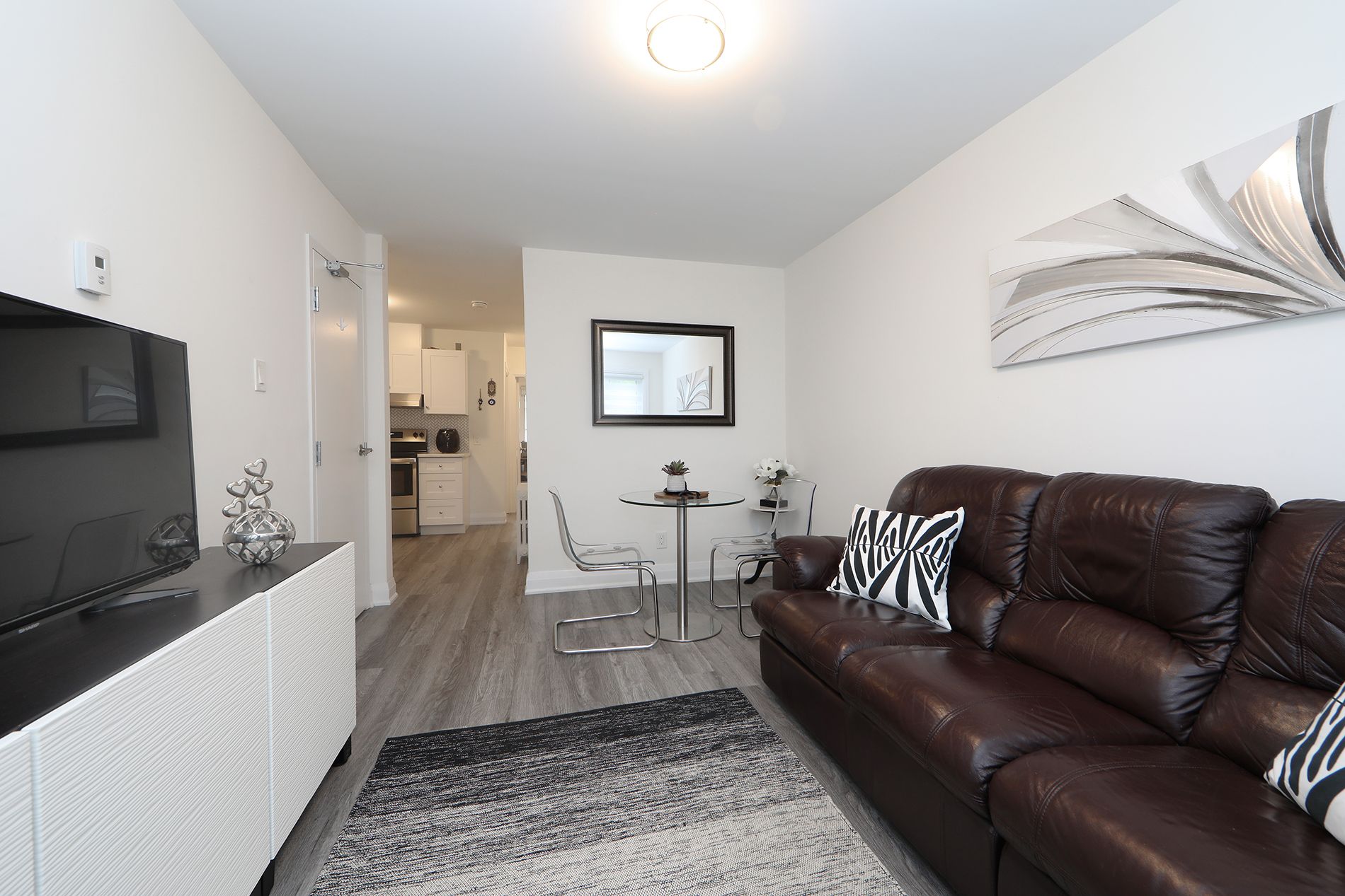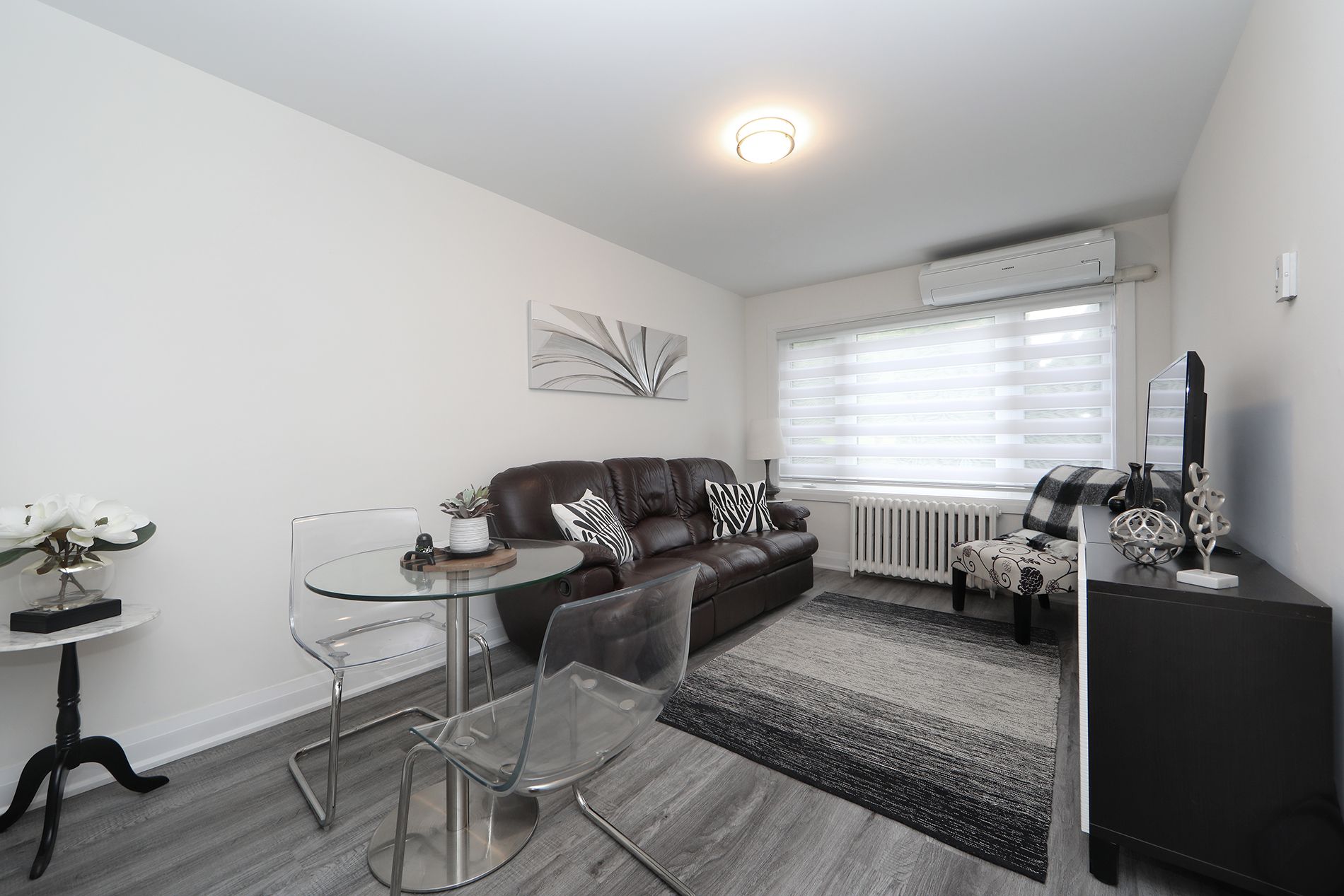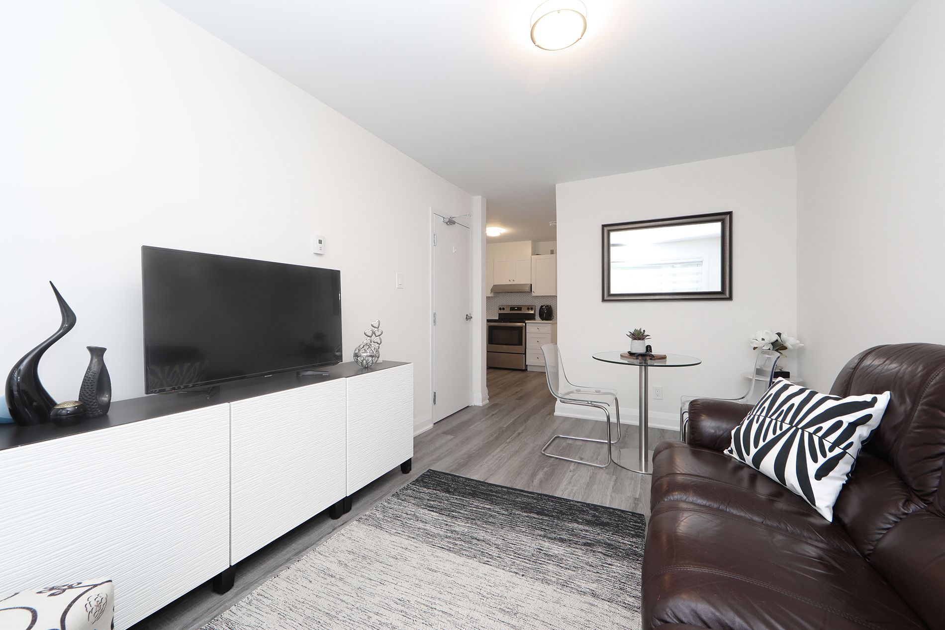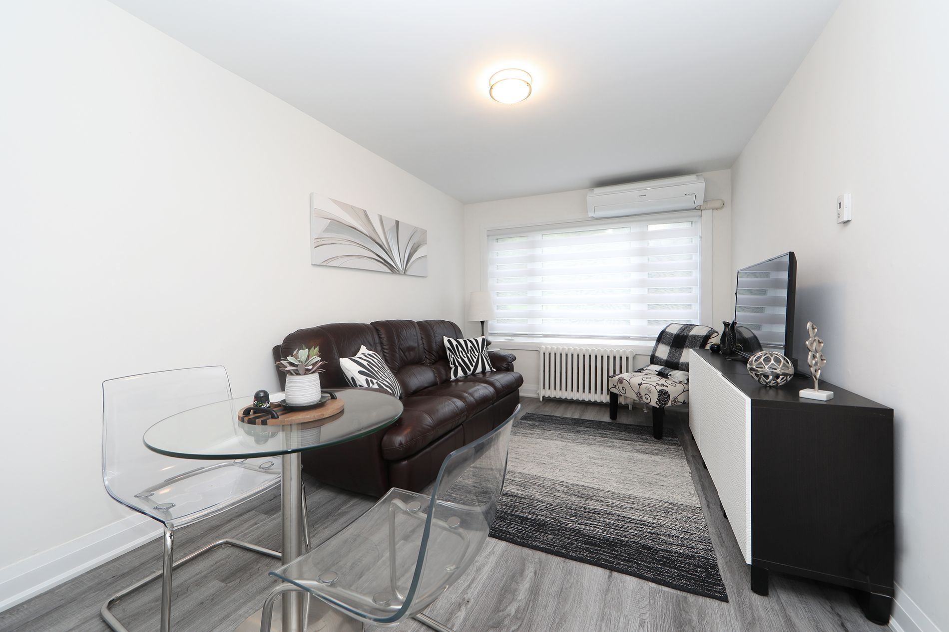 • Two bright bedrooms with contemporary closets and natural light.