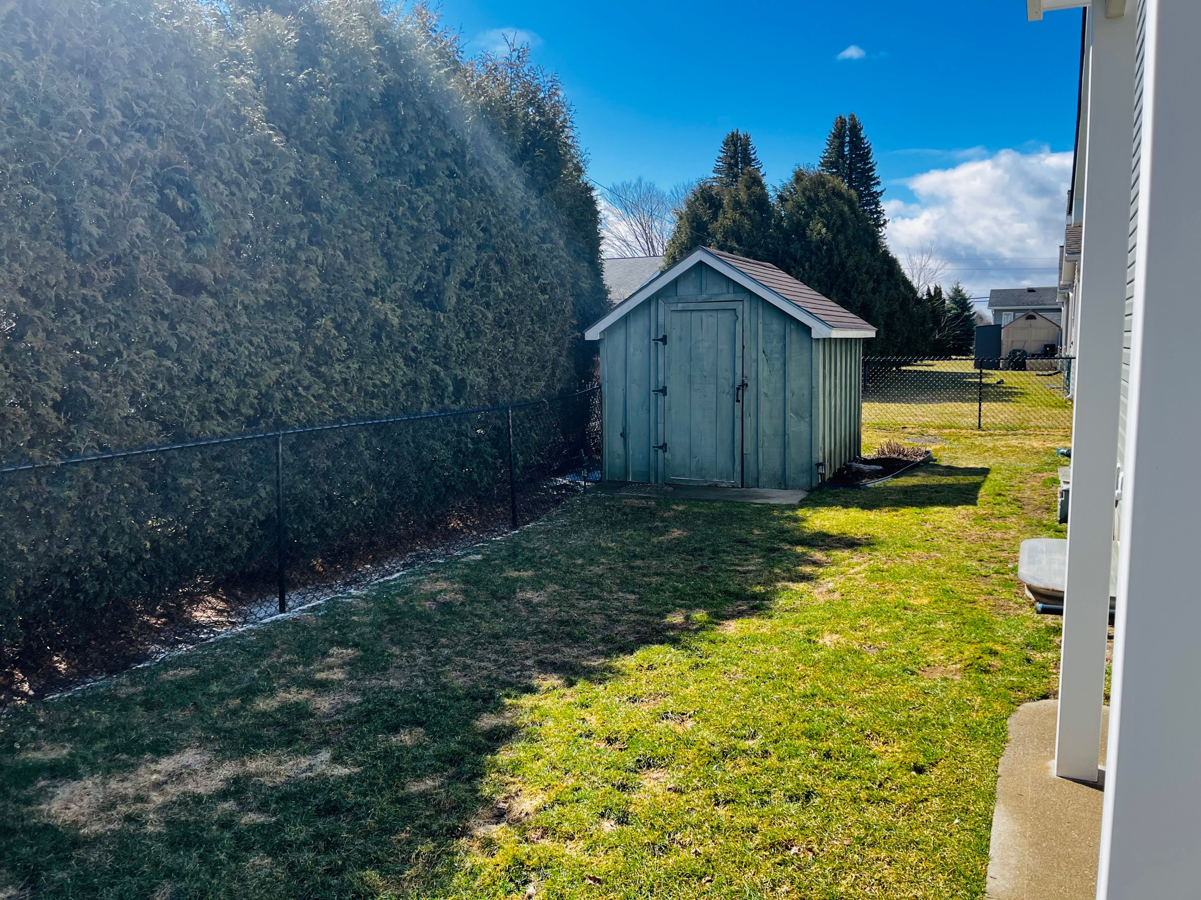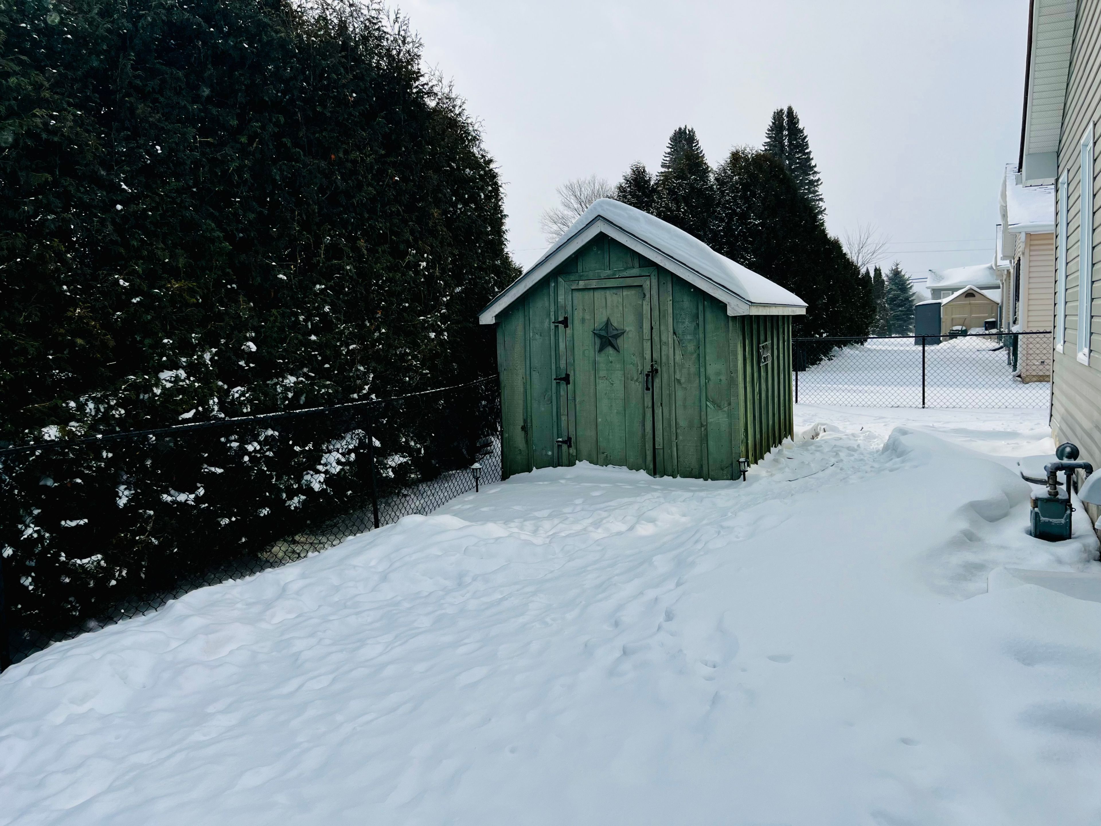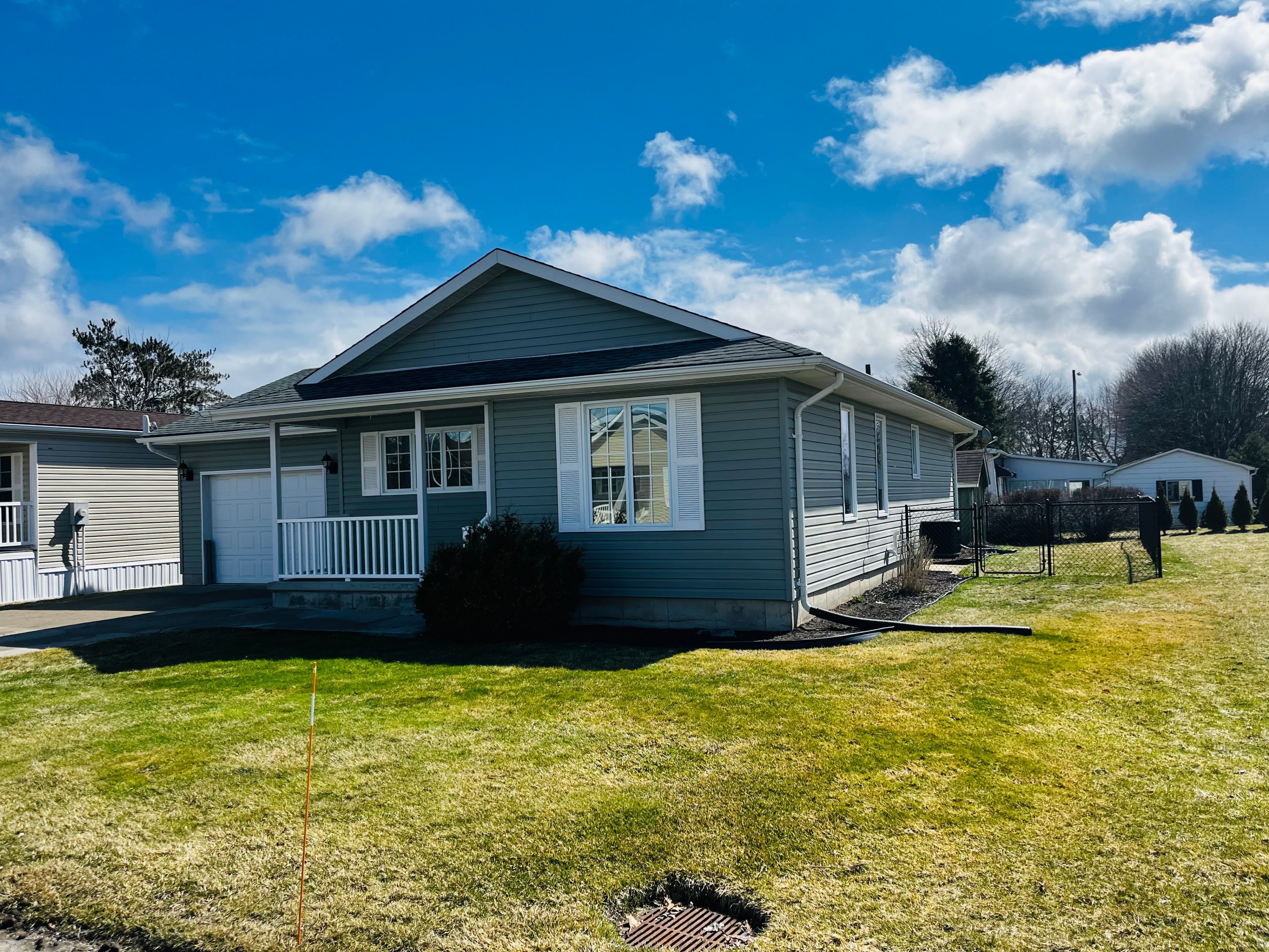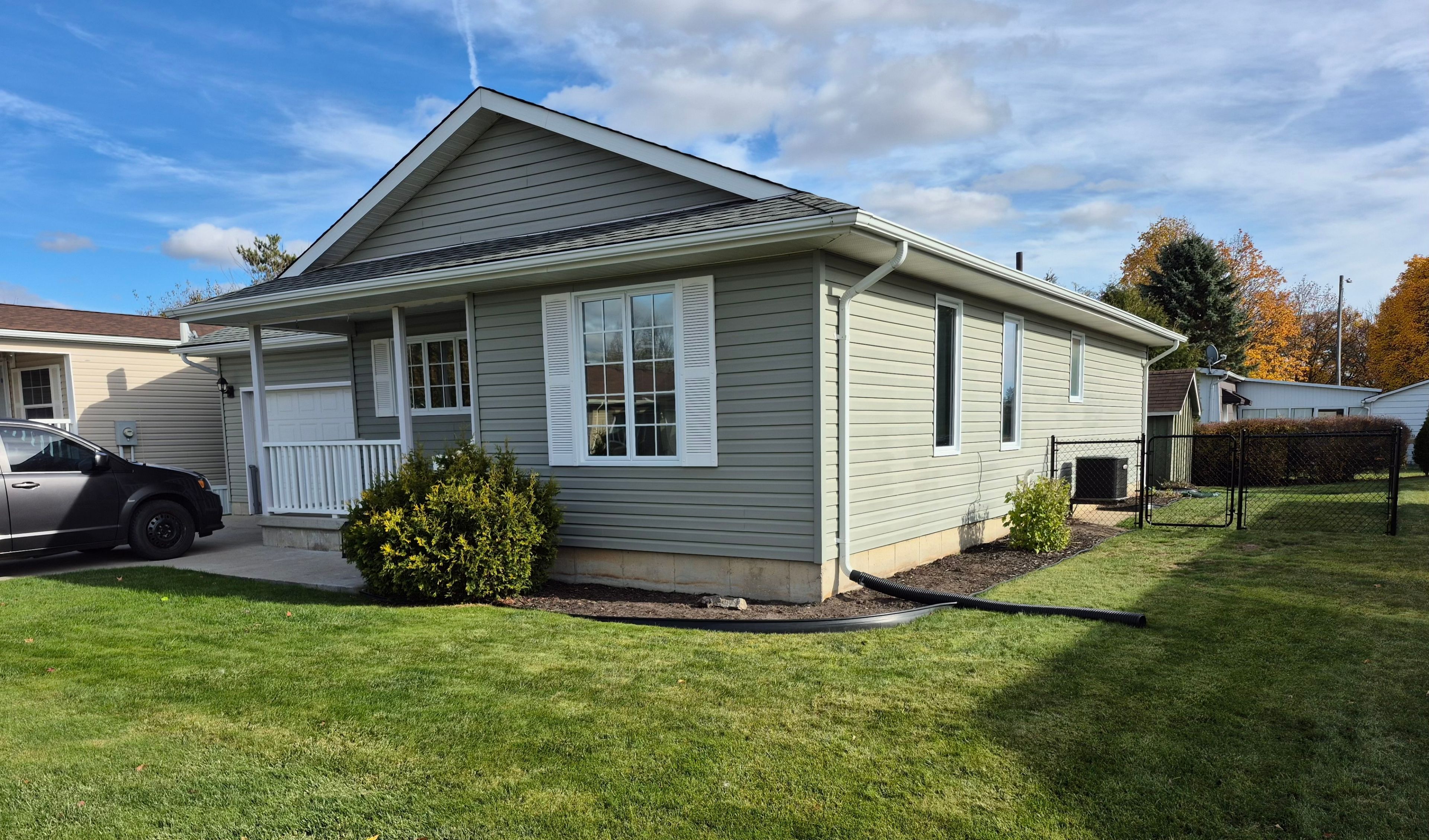 Wish you were here! This beautiful bungalow is located in the pristine adult lifestyle community of twin elm estates. Residents enjoy a vibrant clubhouse with numerous activities and the convenience of being within walking distance of local shops. This unique home features a finished basement and a fenced yard. The spotless, insulated garage includes 220-volt power and an insulated attic with lighting. The main level offers an open-concept layout with fresh paint, laminate flooring, and a covered front porch. The spacious kitchen includes ample cupboard space and pot lights on dimmers, while the bright living room features extra windows. The primary suite includes a walk-in closet and an ensuite bathroom. The second bedroom offers french doors leading to a covered patio and the backyard. The lower level provides a finished family room, an additional bedroom, and a large storage/workshop area. Additional features include gas bbq hookup, sand point for outdoor watering, tinted windows, roof shingles replaced in 2018, 9 x 9 shed and brand new sump pump. Land lease for new purchasers is $800/month, taxes $194. 62/month.