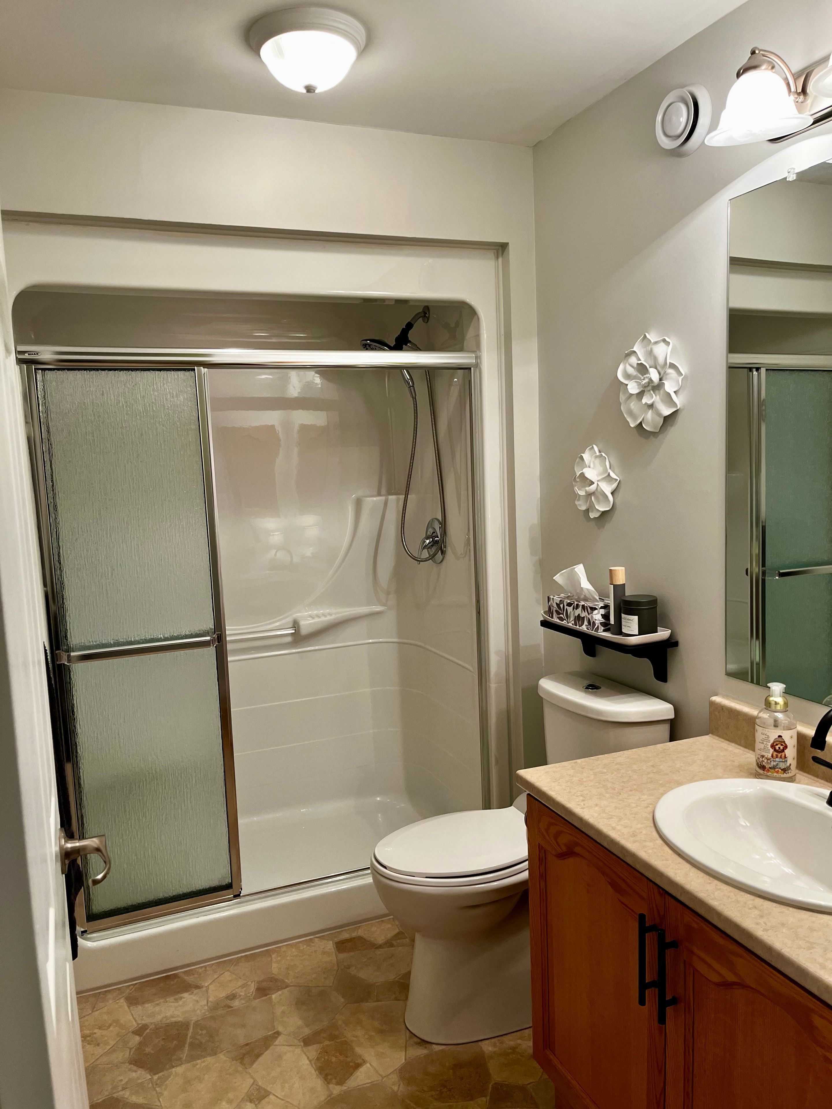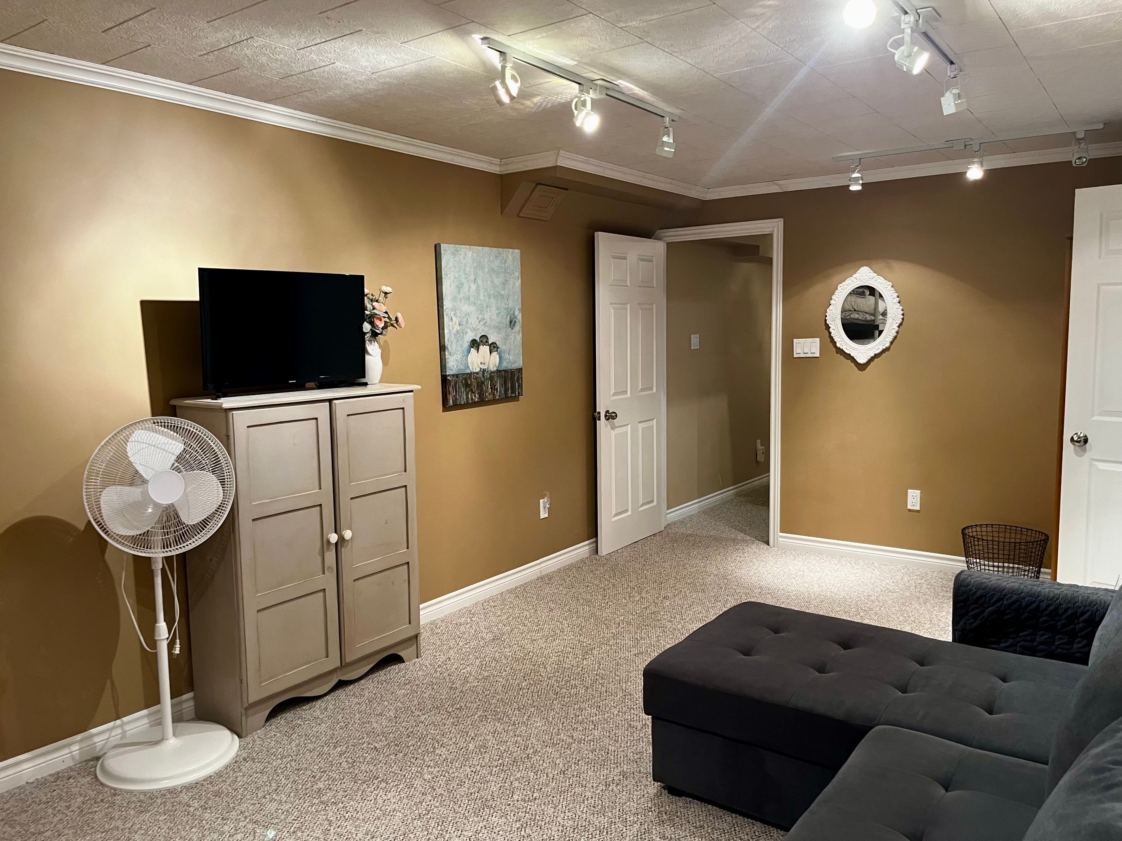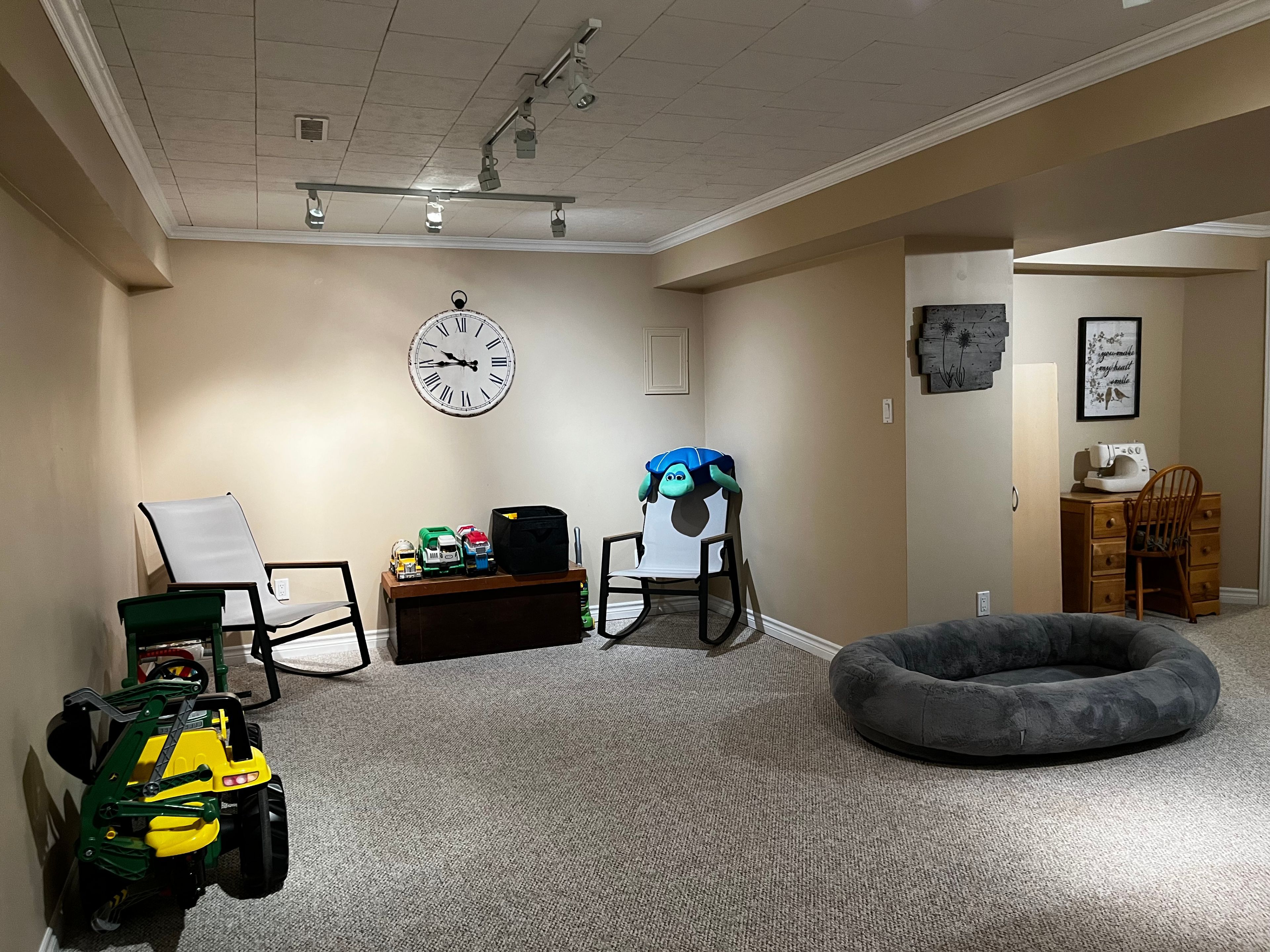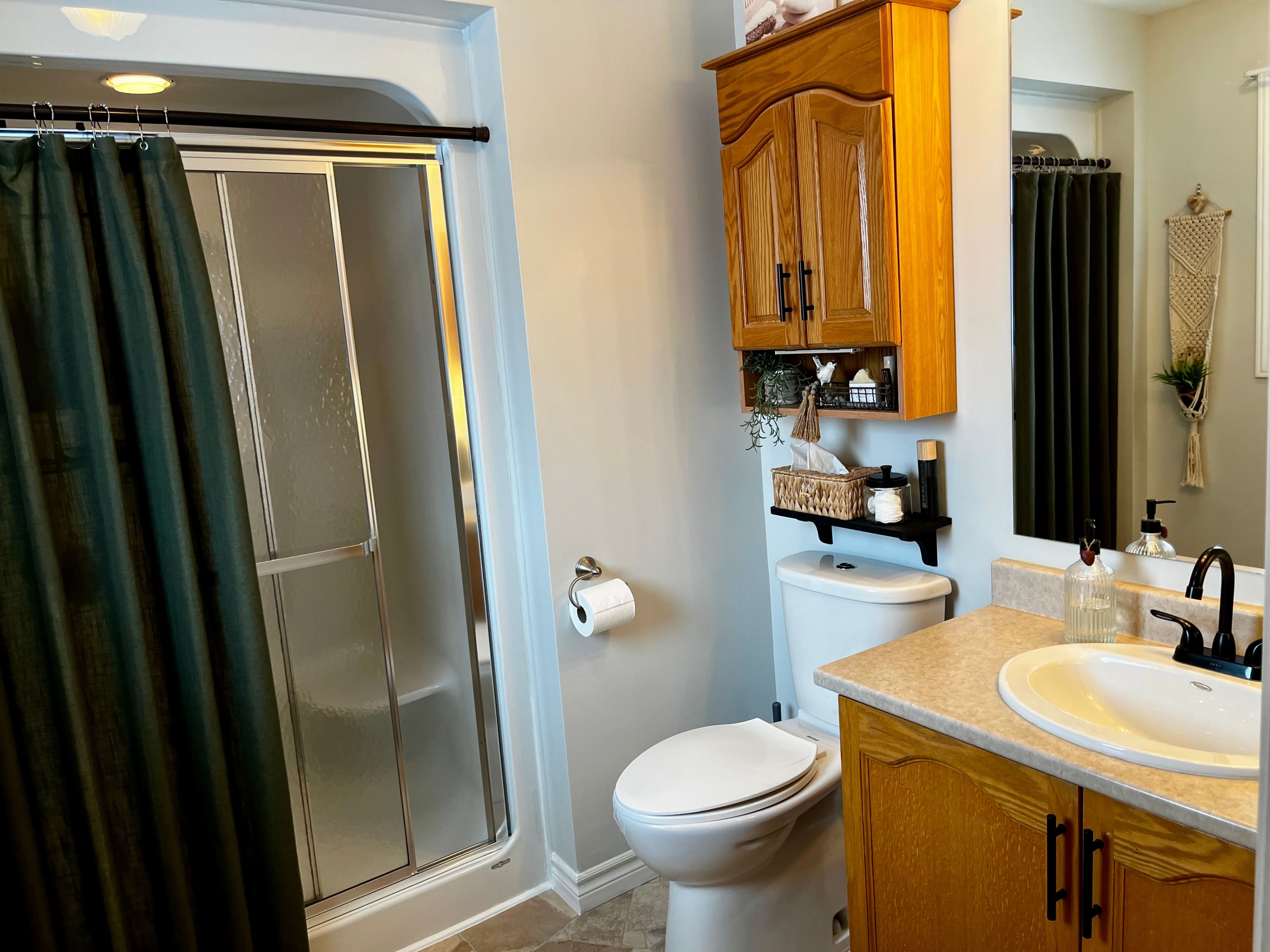Wish you were here! This beautiful bungalow is located in the pristine adult lifestyle community of twin elm estates. Residents enjoy a vibrant clubhouse with numerous activities and the convenience of being within walking distance of local shops. This unique home features a finished basement and a fenced yard. The spotless, insulated garage includes 220-volt power and an insulated attic with lighting. The main level offers an open-concept layout with fresh paint, laminate flooring, and a covered front porch. The spacious kitchen includes ample cupboard space and pot lights on dimmers, while the bright living room features extra windows. The primary suite includes a walk-in closet and an ensuite bathroom. The second bedroom offers french doors leading to a covered patio and the backyard. The lower level provides a finished family room, an additional bedroom, and a large storage/workshop area. Additional features include gas bbq hookup, sand point for outdoor watering, tinted windows, roof shingles replaced in 2018, 9 x 9 shed and brand new sump pump. Land lease for new purchasers is $800/month, taxes $194. 62/month.