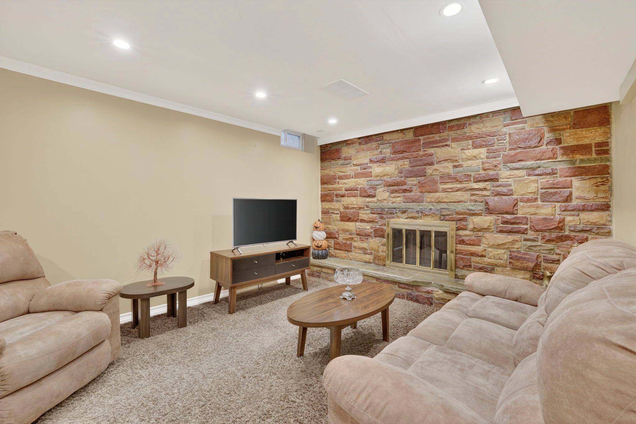 • Finished basement with cozy family room and extra bedroom for guests.