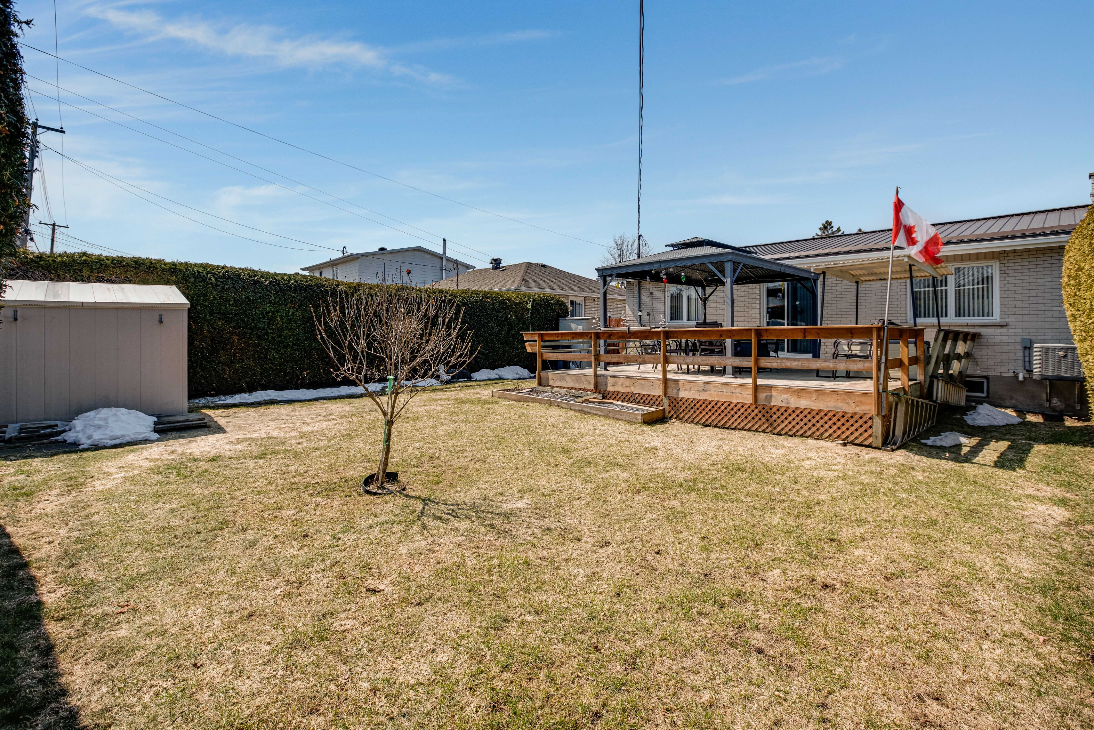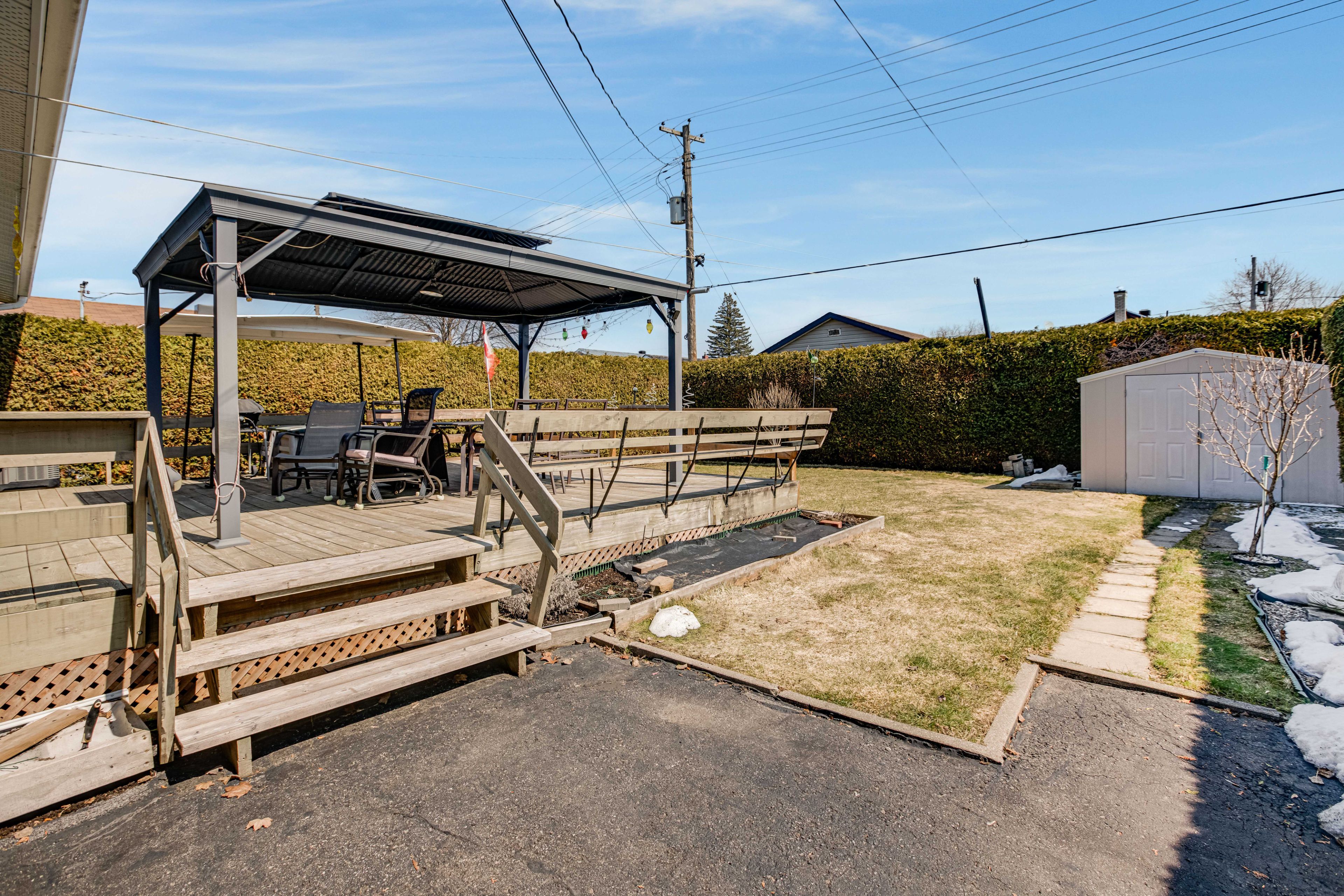 • Private fenced backyard with gazebo for outdoor enjoyment.
