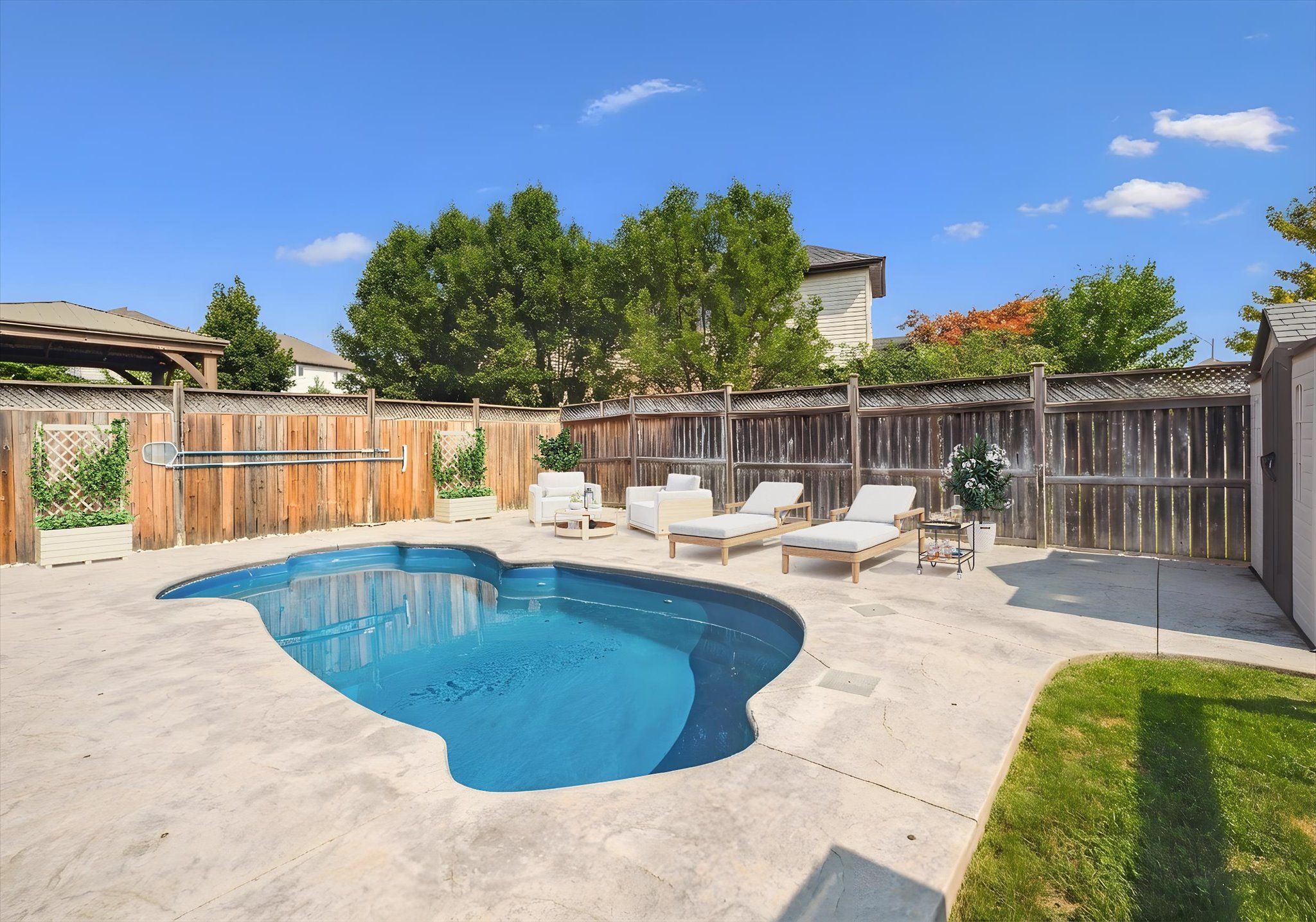 • Private backyard with in-ground pool and generous deck for entertaining.