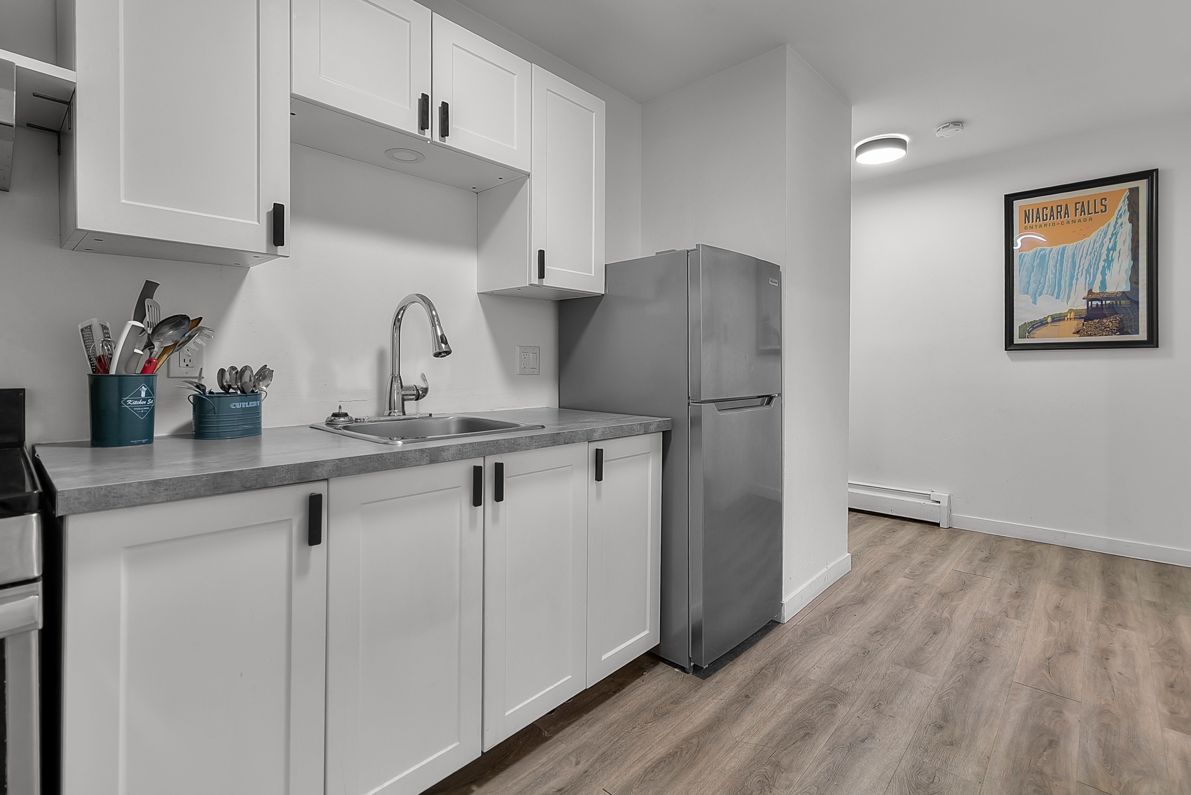 All utilities are included, making your monthly expenses simple and predictable. Recently updated 1 bedroom, 1 bathroom suite located in a quiet mixed residential and commercial building. This unit features a brand new kitchen with stainless steel appliances, an updated 4 piece bathroom, modern laminate flooring throughout, and designer blinds. On site coin laundry is available for added convenience. Prime location close to the new downtown university, within walking distance to the train and bus station, and just minutes to doctors, pharmacy, hospital, and everyday shopping. Non smoking unit. Proof of tenant insurance is required. Requirements: first and last month's rent, full background screening including credit report, proof of income, employment letter, landlord references, proof of funds, and confirmation of renters insurance.
