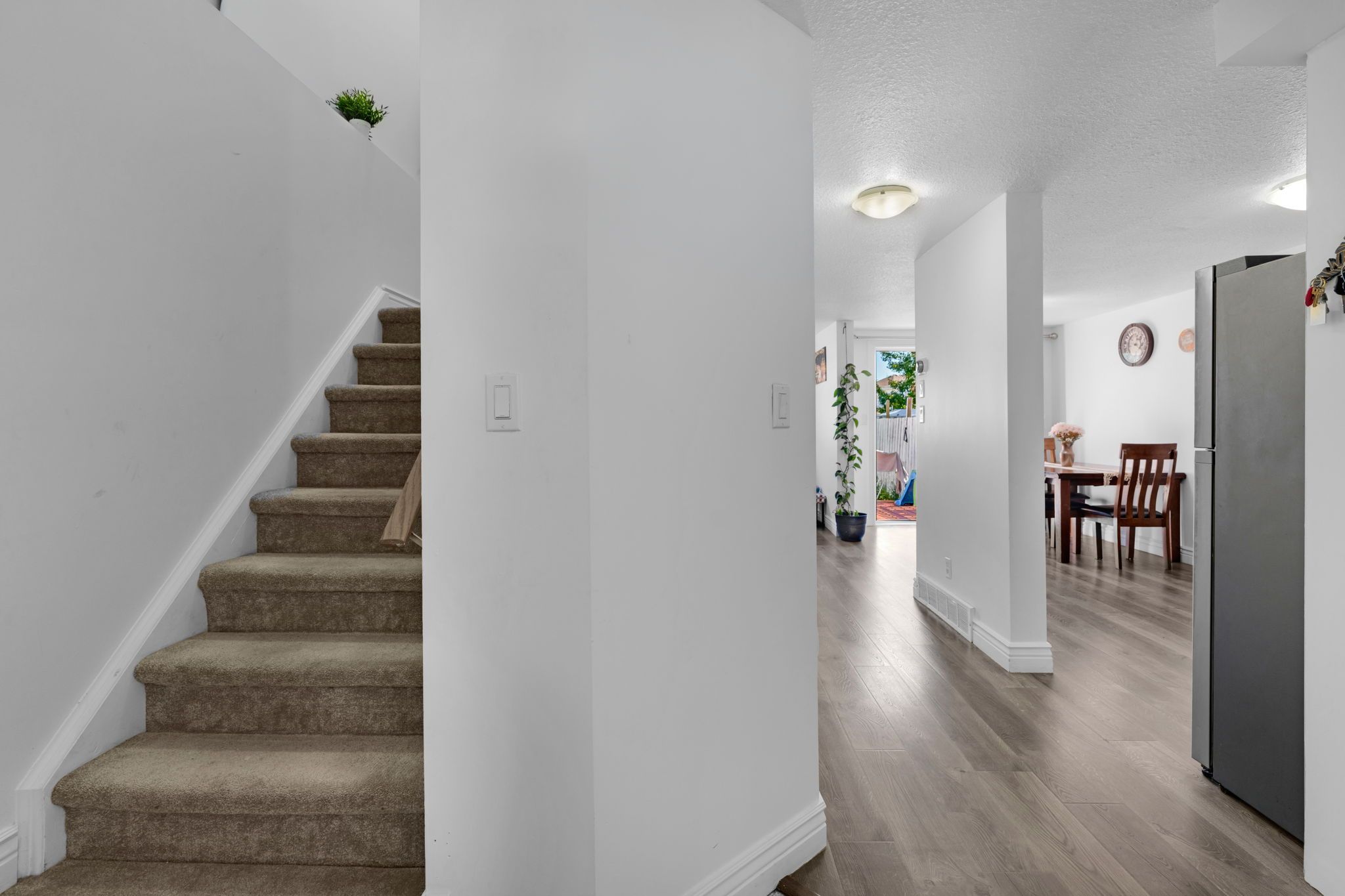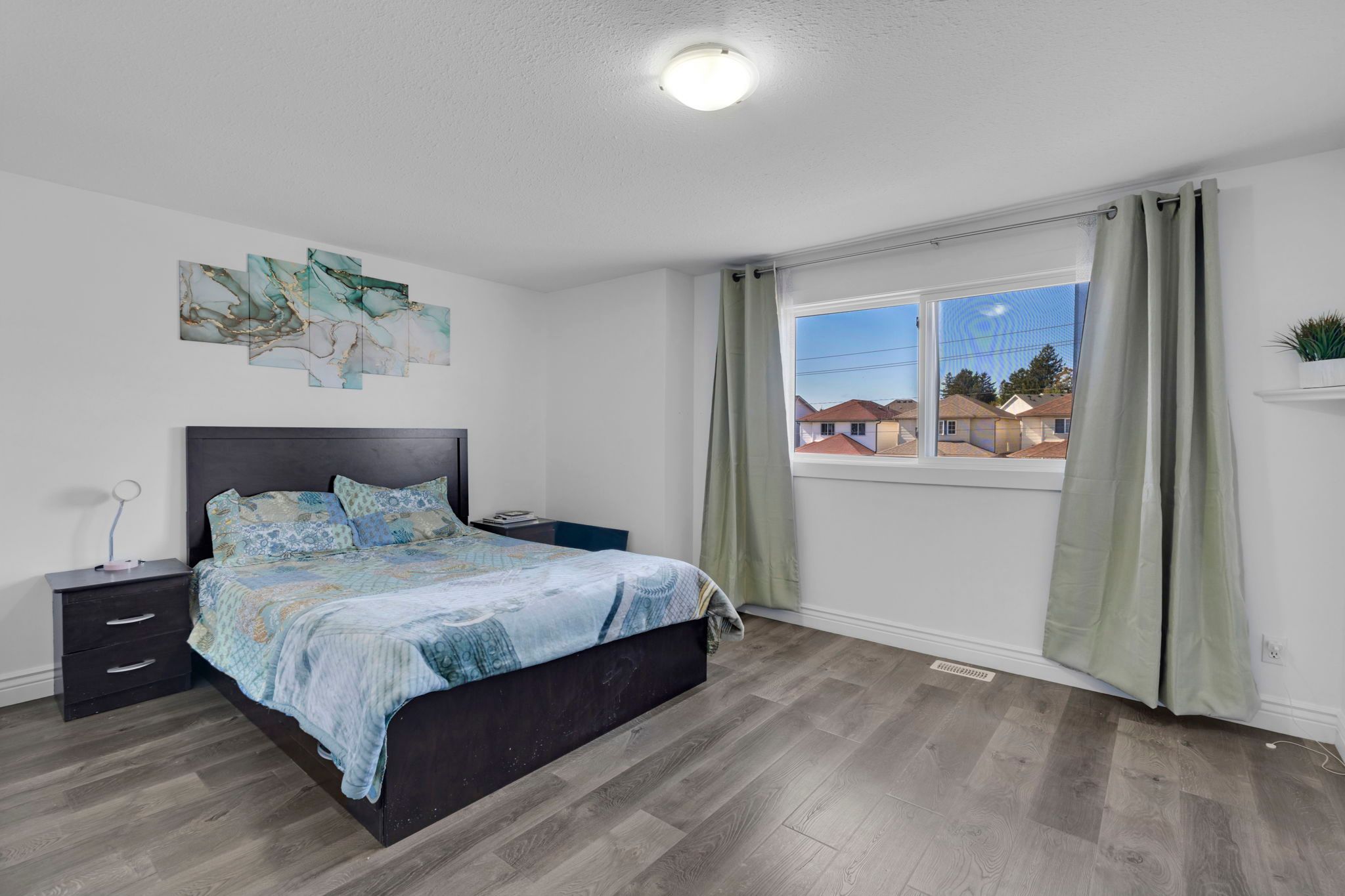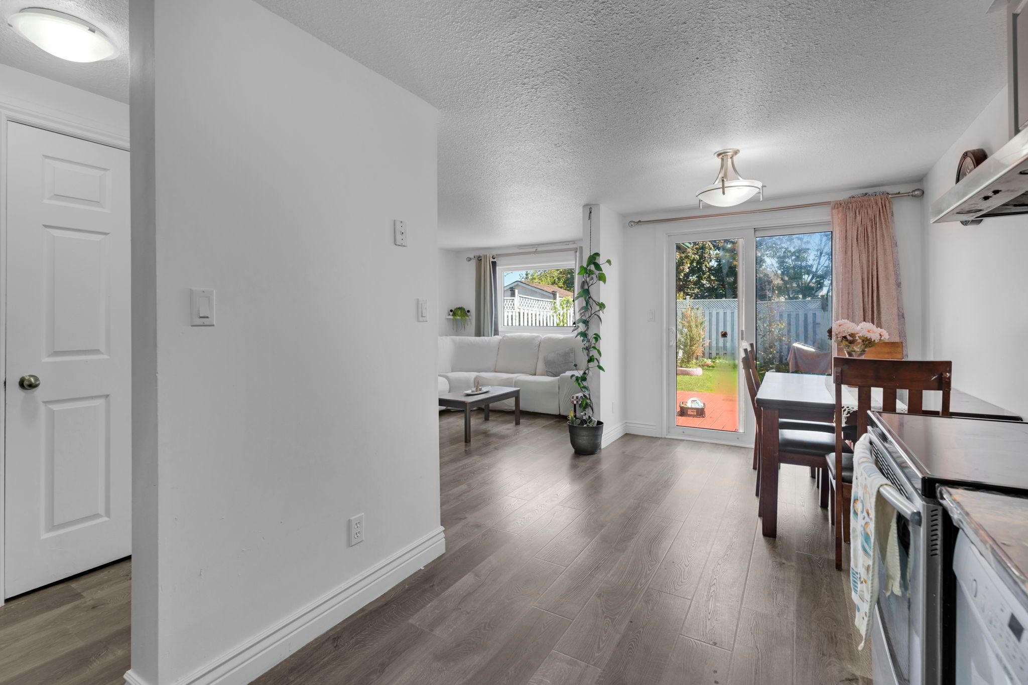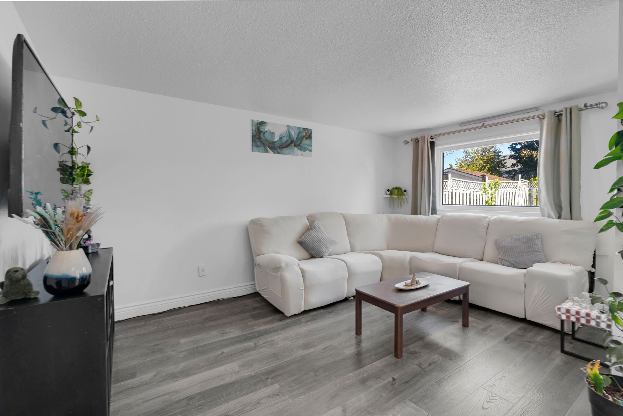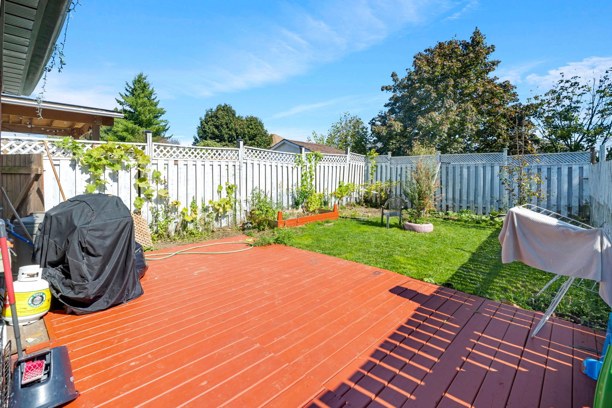 Welcome to your new home! This well-cared semi offers 3 bedrooms and 2 bathrooms, and plenty of space for the whole family. The spacious living room features a large window that fills the space with natural light, while the eat-in kitchen has a convenient walkout to the backyard. Fire up the bbq and get ready to enjoy some burgers in this outdoor space. Outside, you'll love the partially fenced yard with a private deck. The top level has 3 spacious bedrooms and a full4-piece family bathroom. Additional features include an attached garage. The home owners has recently changed all windows, roof 2019, heating and air conditioner service 2024, newly painted. You can move in with peace of mind. This home is close to schools, transit, trails, shopping, and major highways (hwy 7/8 & 401) making this property the perfect starter home in a family-friendly location. Come see it today!