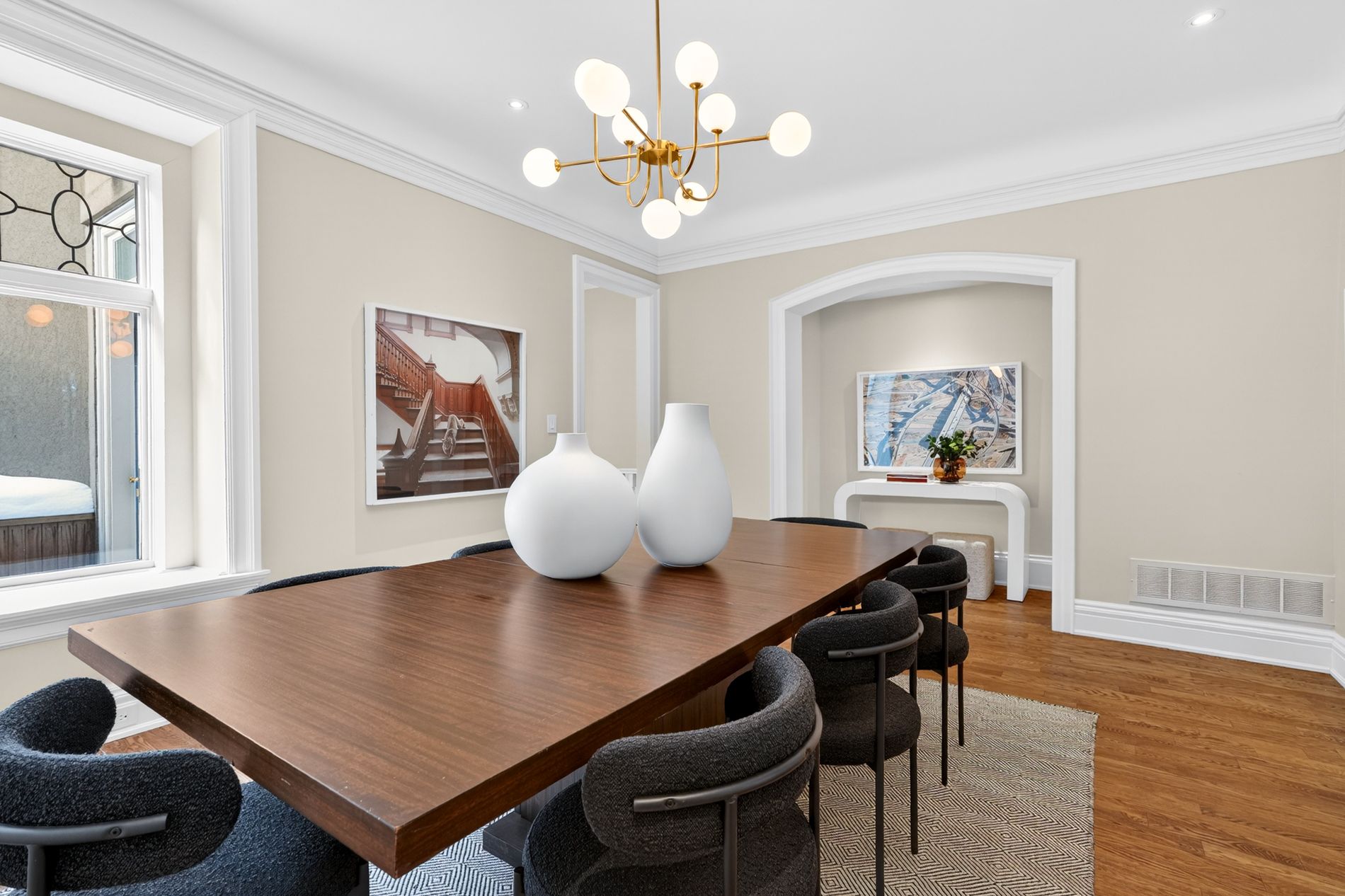 • Formal living and dining rooms plus an open concept kitchen.