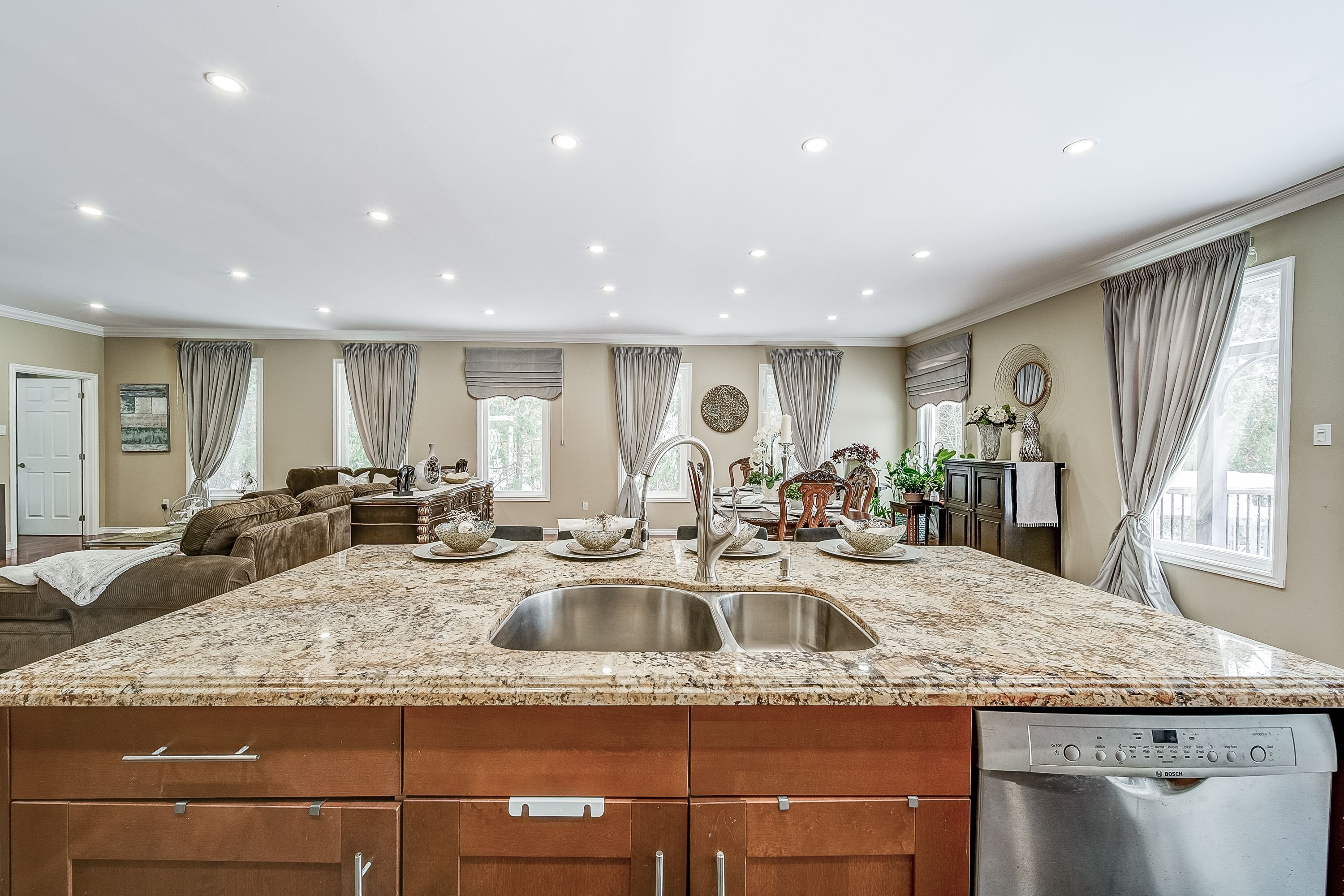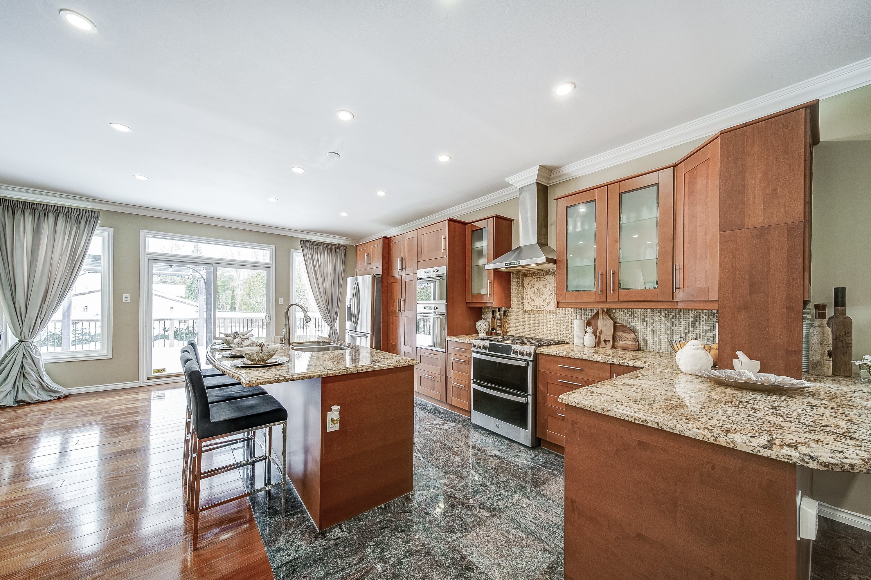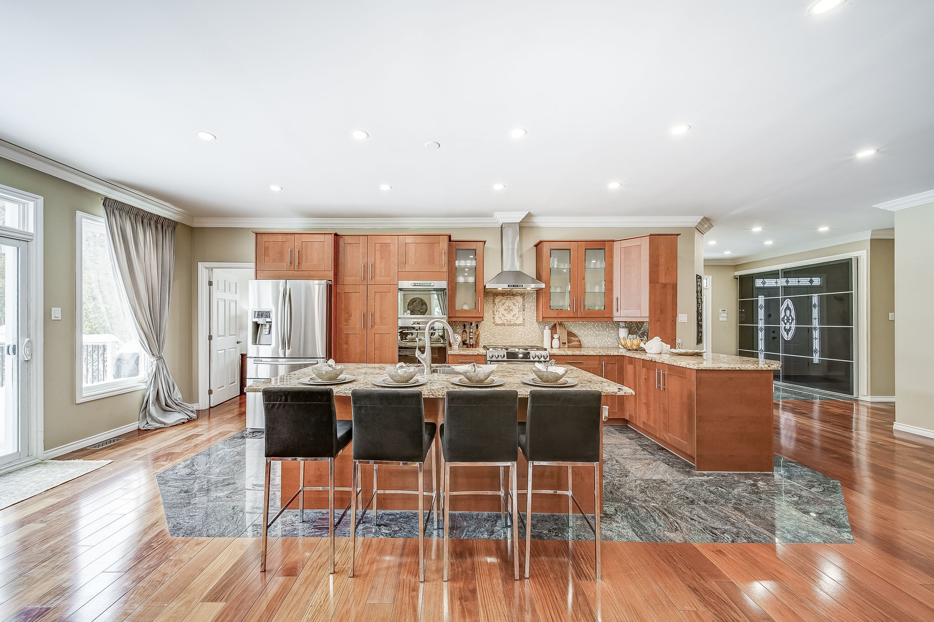 • Stunning chef's kitchen with large island and granite counters.