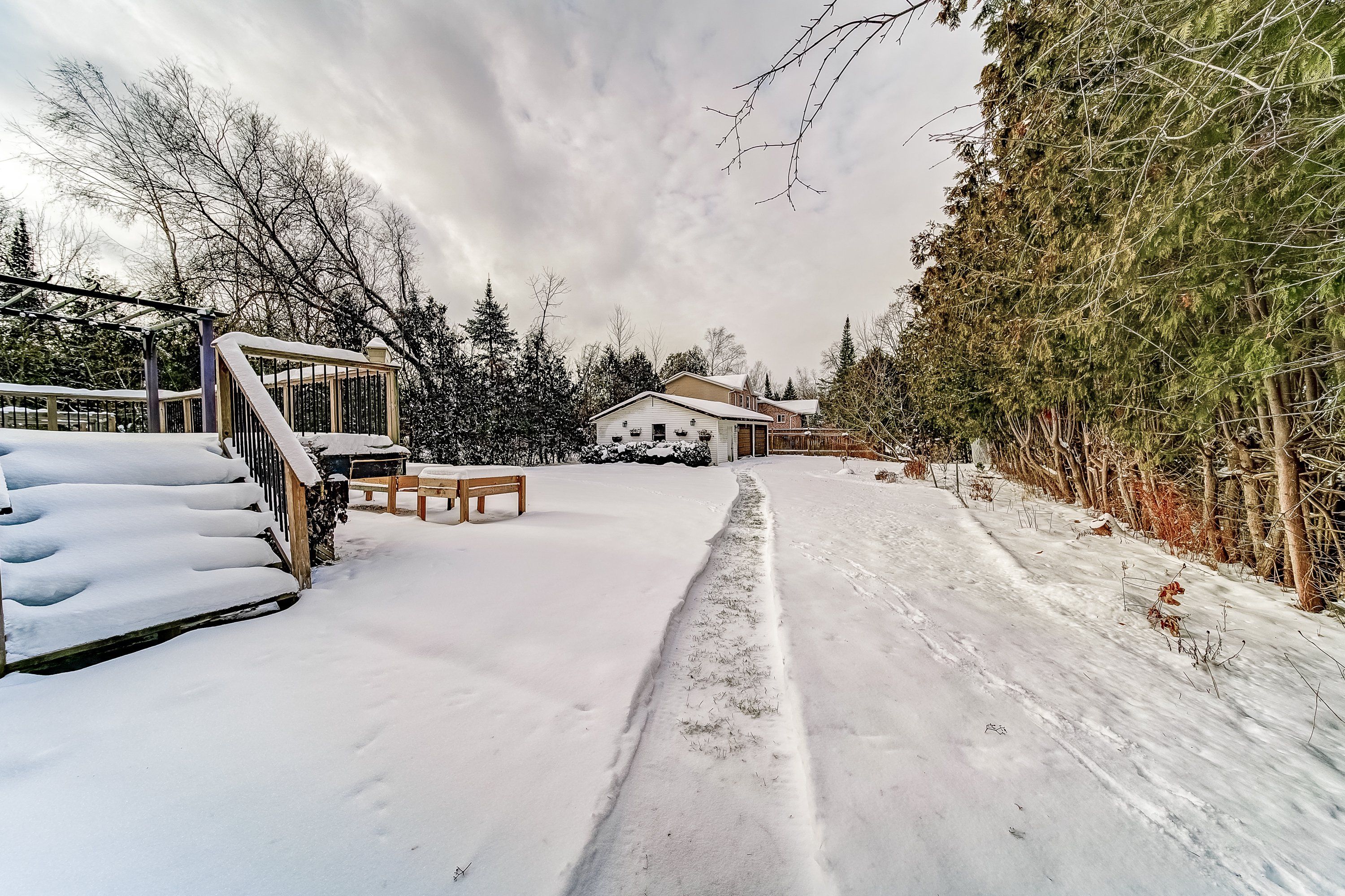 • Private lot with generous yard, deck, and ample garage space.