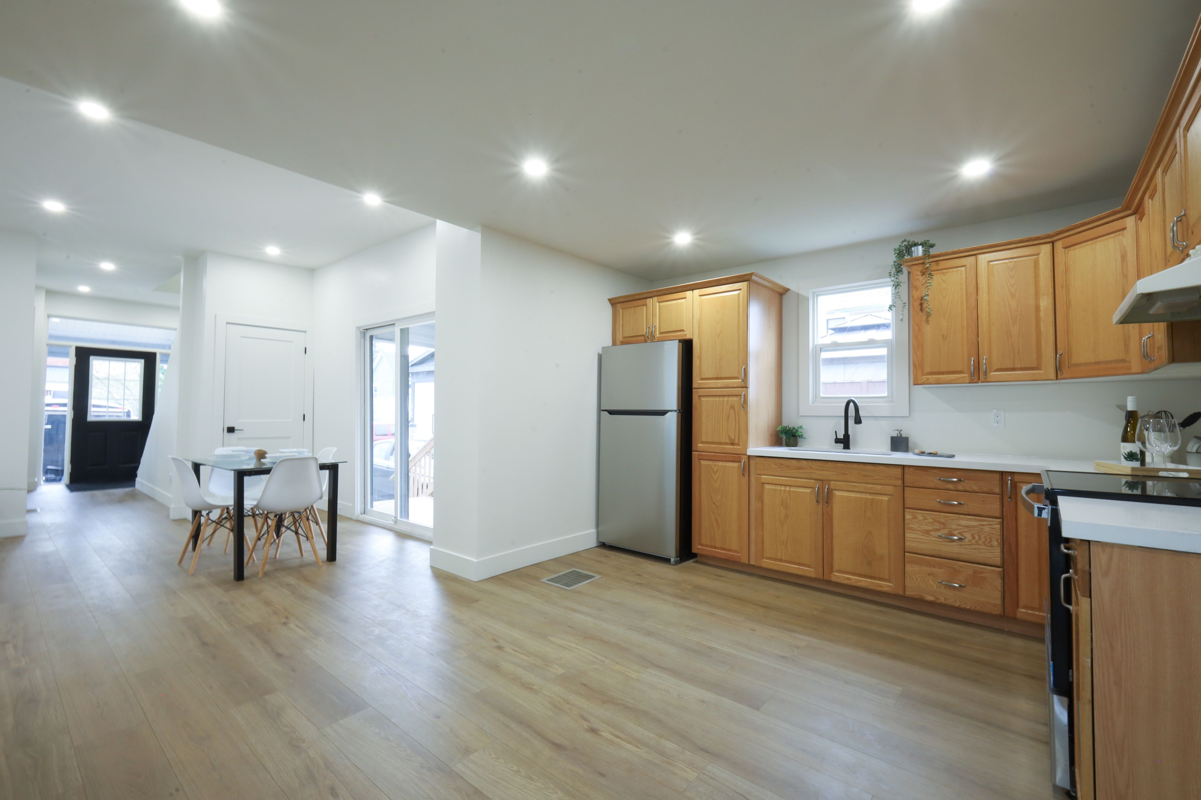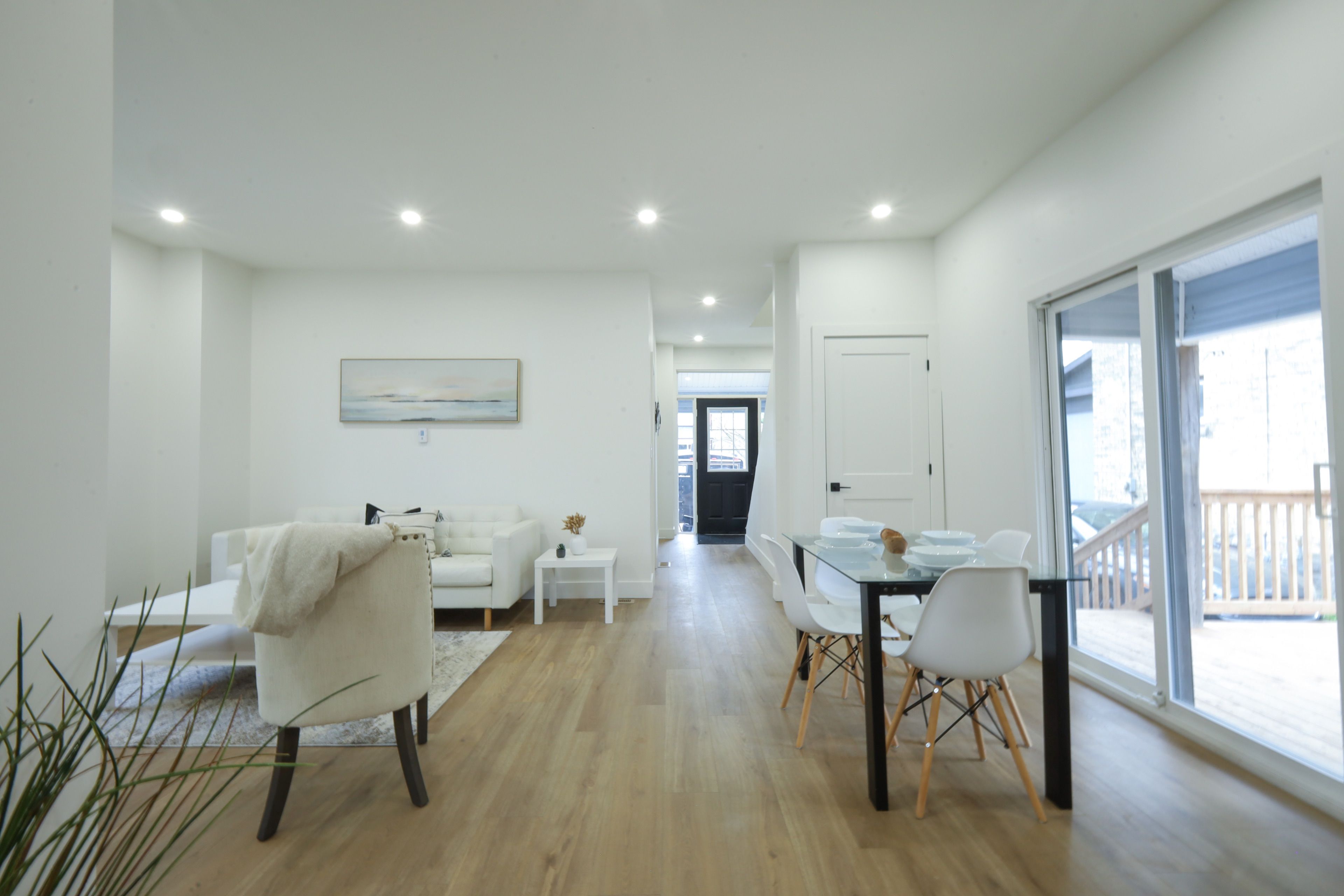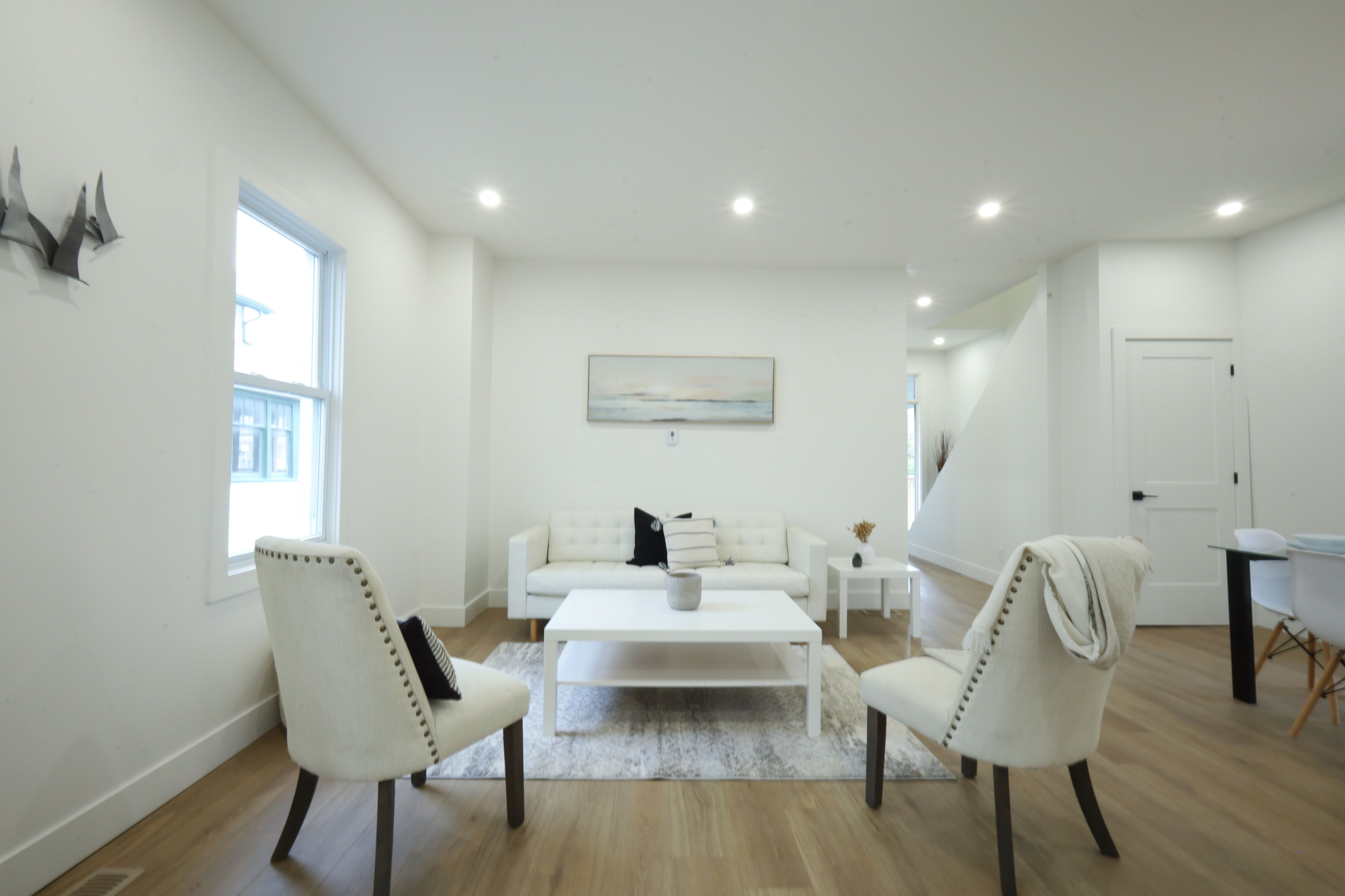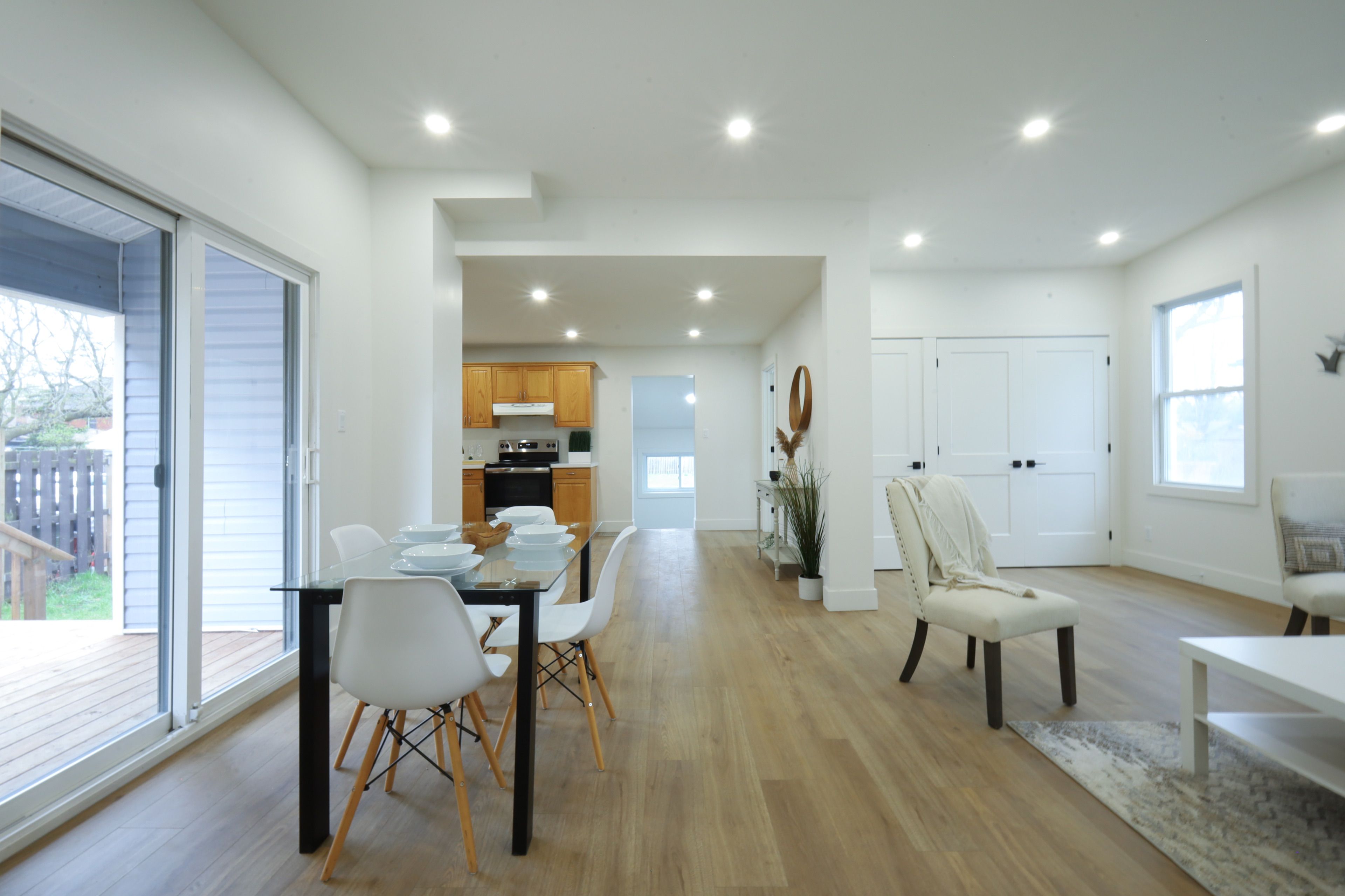 • Open-concept design with fresh paint and new flooring throughout.