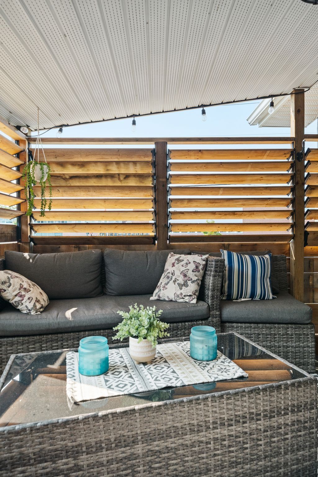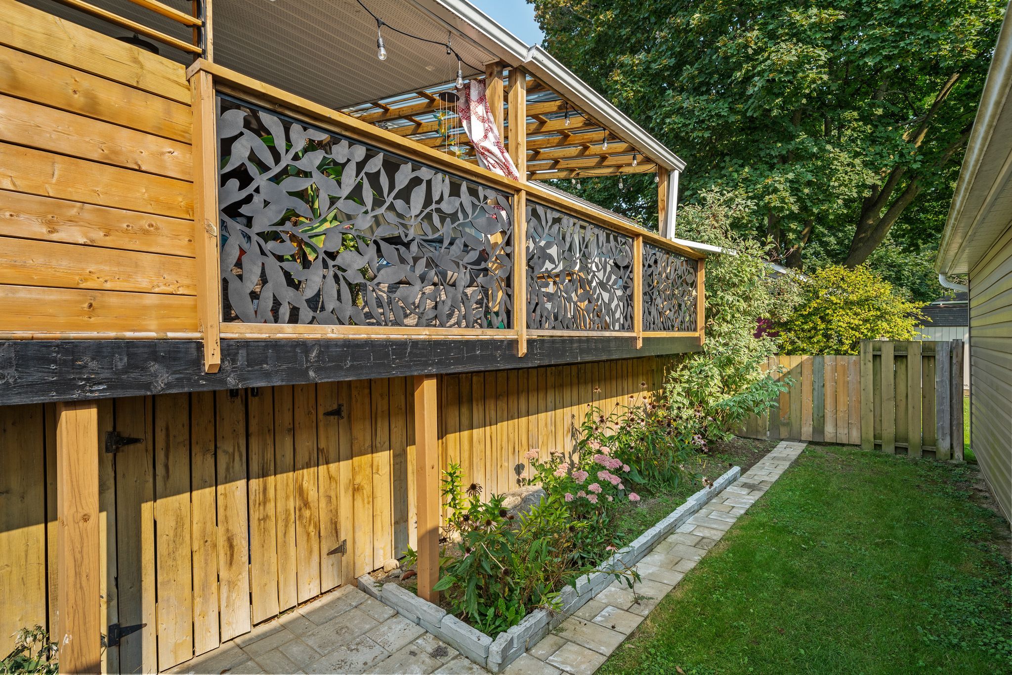 This home emphasizes the aesthetic, functional, and environmental benefits of a truly unique build, and offers over 2000 sq ft. Of living space across 2 levels! As you step through the foyer and enter the main floor, you'll feel the thoughtful layout and warm, inviting atmosphere that make this home truly special.. The open-concept kitchen, living, and dining areas seamlessly flow together, making this an ideal space for easy living and enjoyment. A patio door walkout from the dining room leads to a secluded covered deck recently enhanced with privacy screening, providing an ideal sanctuary for relaxation at any time of day: enjoying a quiet morning coffee, dining al fresco or relaxing in a hot tub. Continuing through the main floor, you'll find two bedrooms, a full 5-piece bath, and a large laundry room (formerly a 3rd bedroom). Downstairs, the fully finished lower level offers incredible flexibility with a cozy rec room featuring a gas fireplace, an office nook (perfect for a future bedroom), a guest bedroom, another full bath, and plenty of storage. With the potential for up to six bedrooms, this home is ready to adapt to your needs! Step outside and you'll be charmed by the evenings spent on the deck or patio, enjoying the backyard, or gathered around the firepit. Built with sustainability in mind, the main level's straw bale construction brings a unique warmth, curved natural lines, and exceptional energy efficiency. This rare build pairs modern comfort with timeless character and environmental mindfulness. A home that lives beautifully, functions effortlessly, and stands out in all the best ways - come experience its charm for yourself.