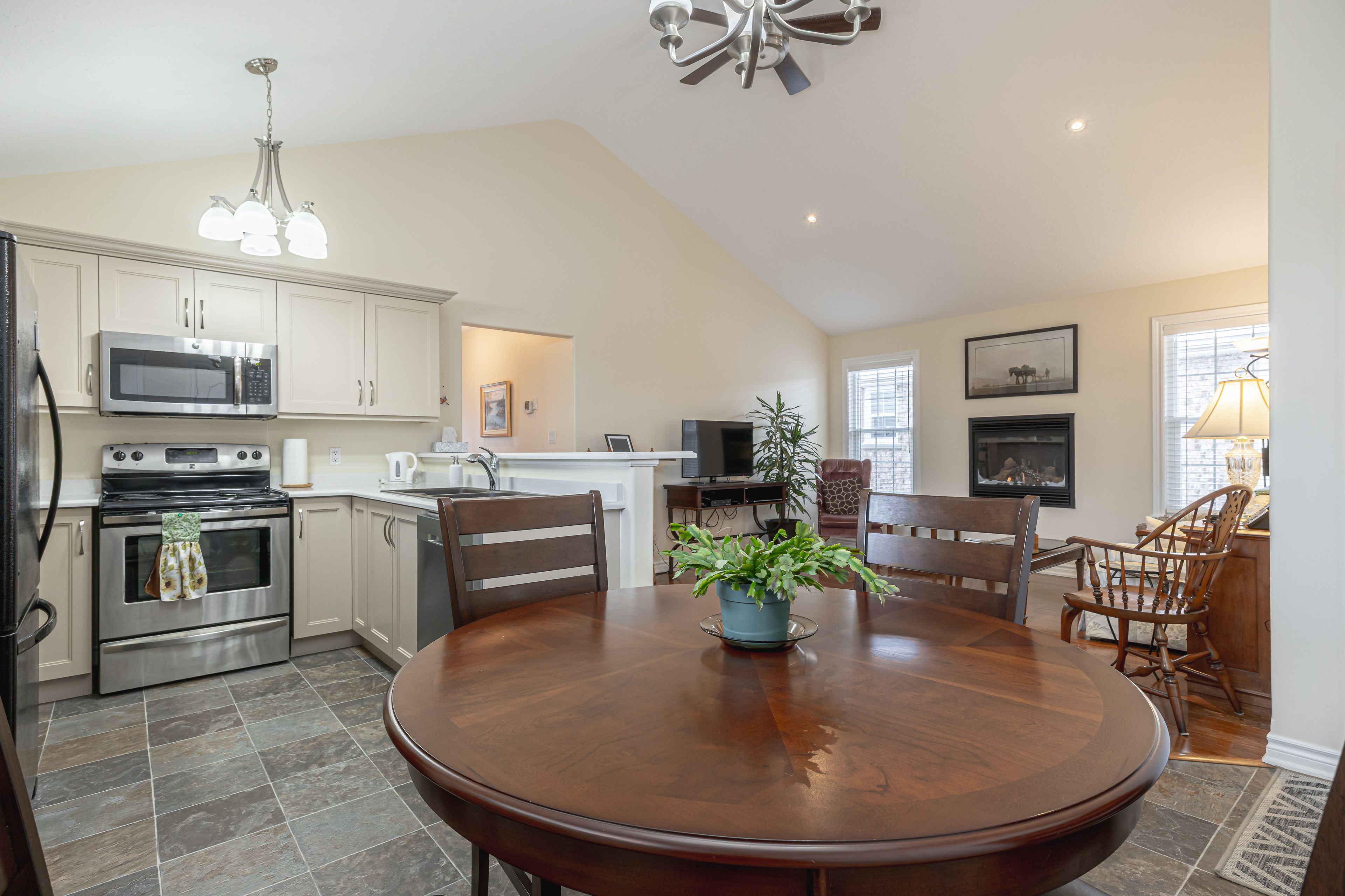 • Open concept great room features cathedral ceiling and fresh updates.